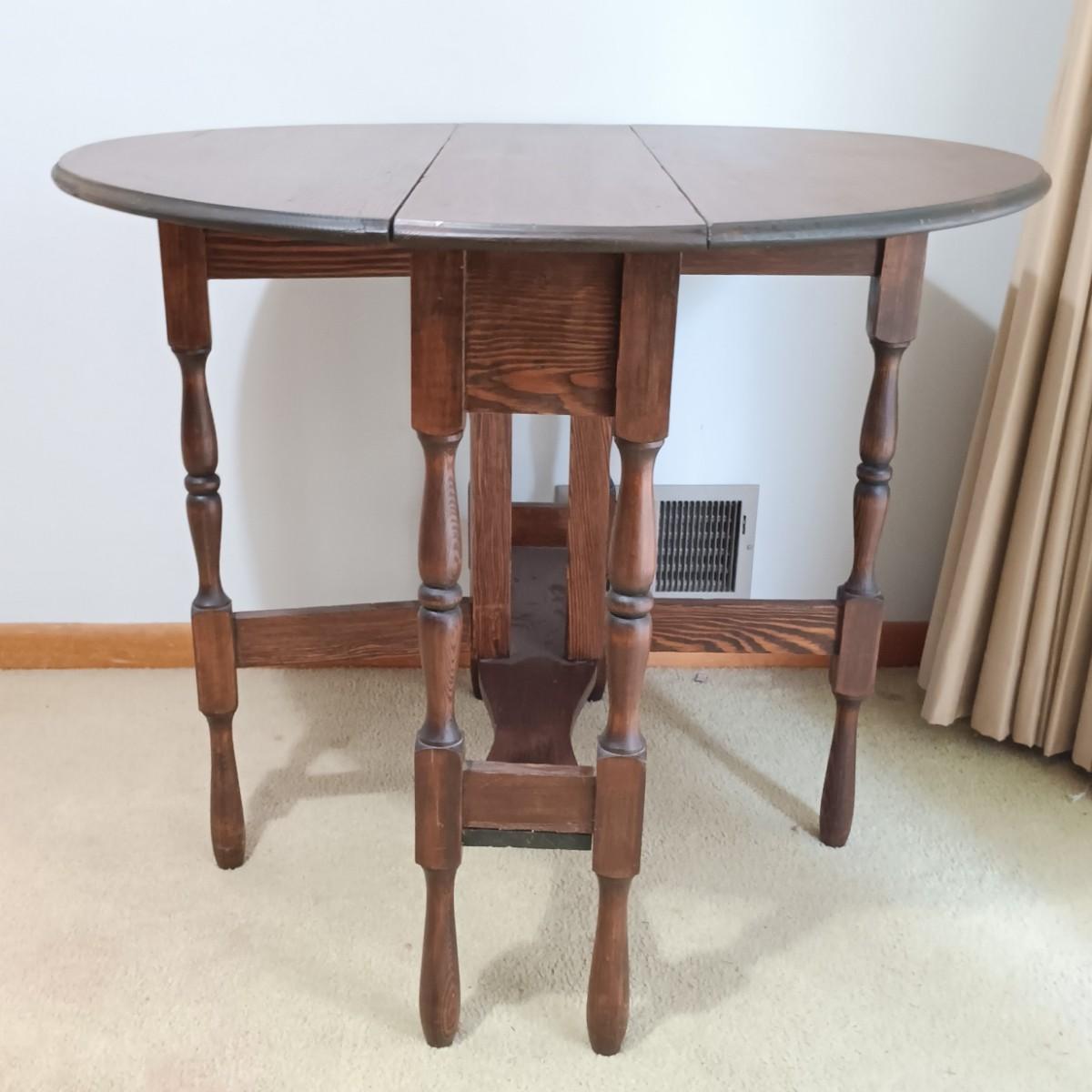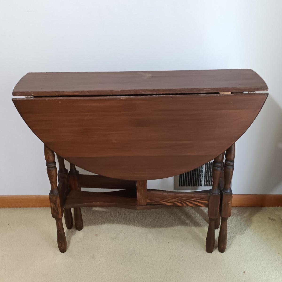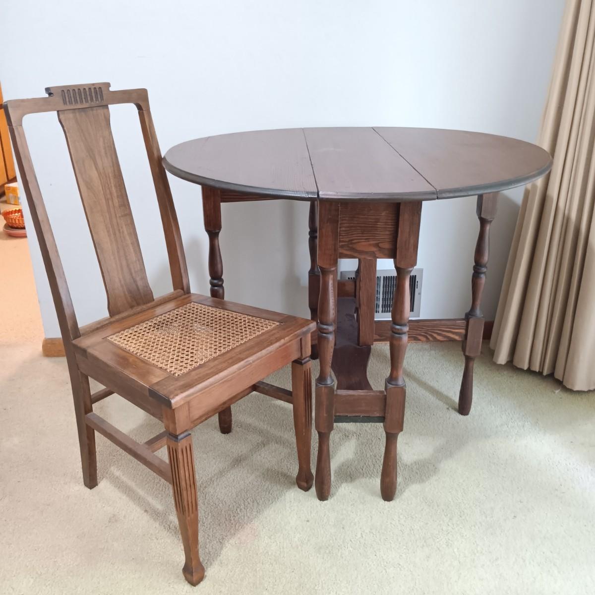 LOT 1: Vintage Drop-Leaf Round Table with Cane Seat Chair