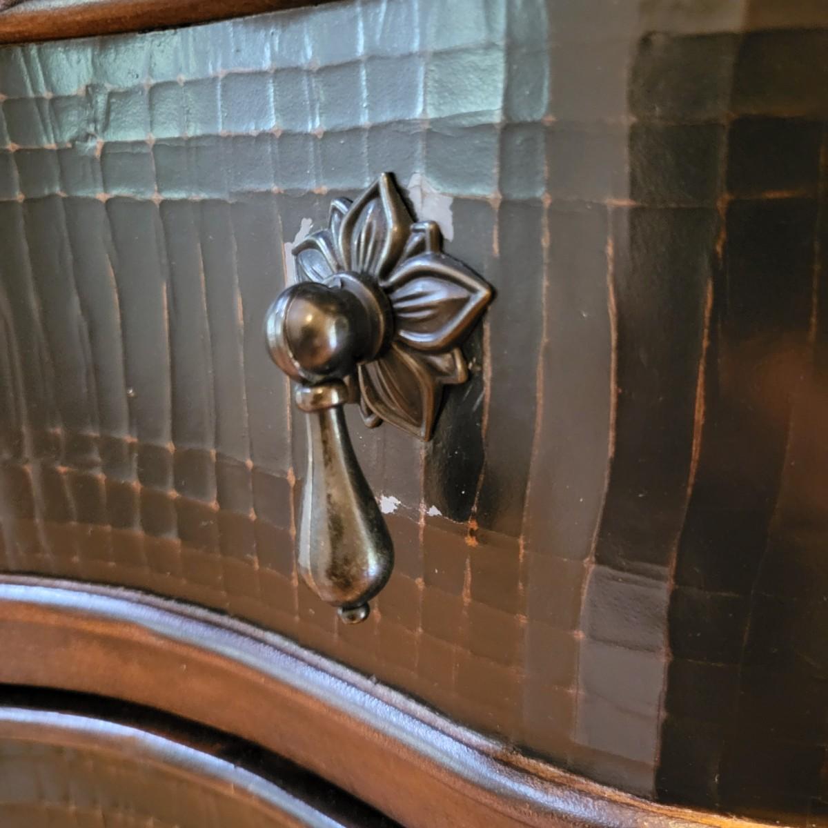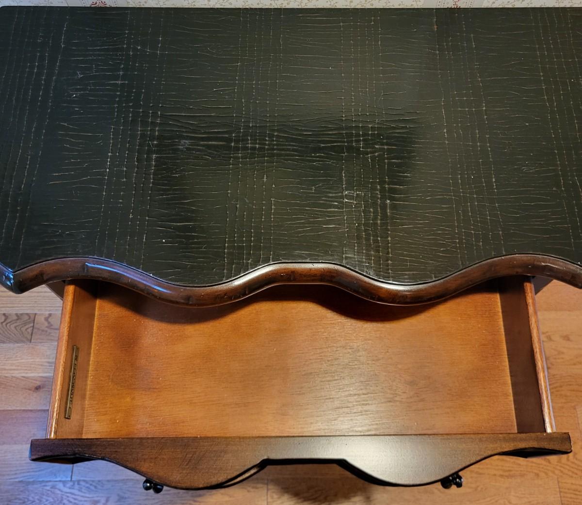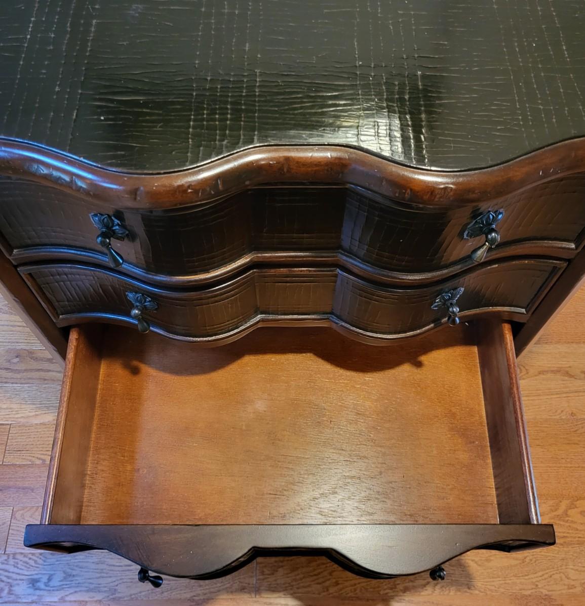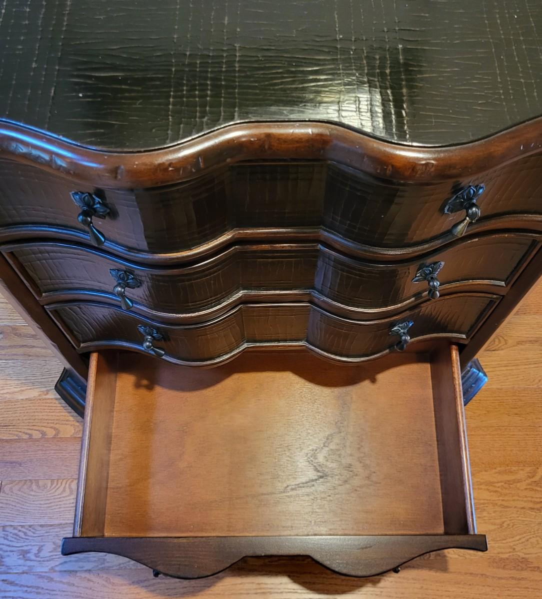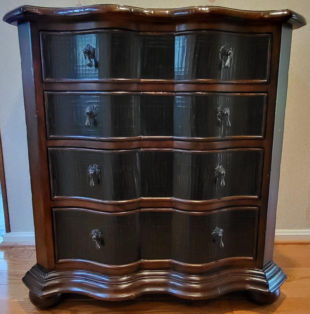 LOT 1H: Ethan Allen Four Drawer Serpentine Dark Wood Dresser