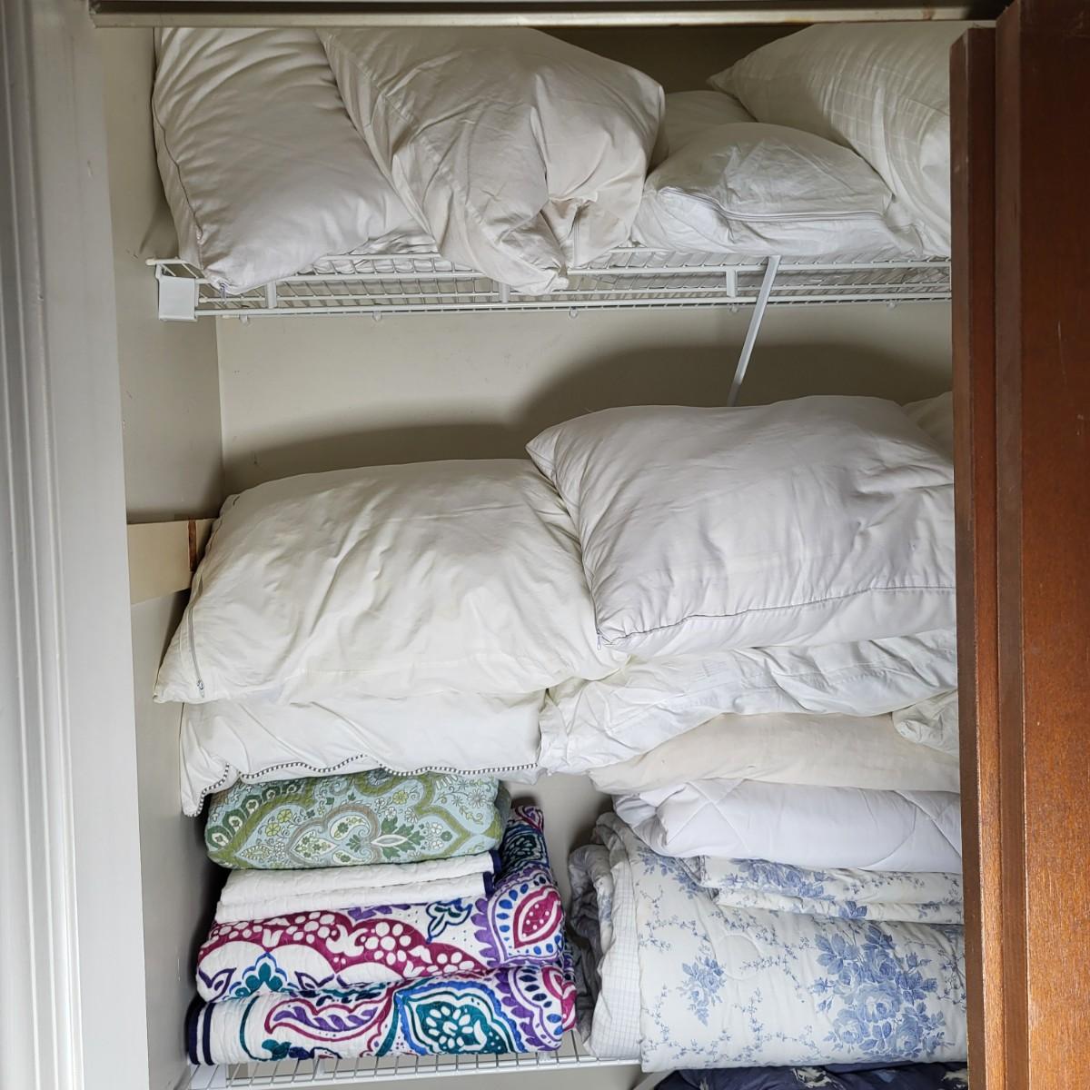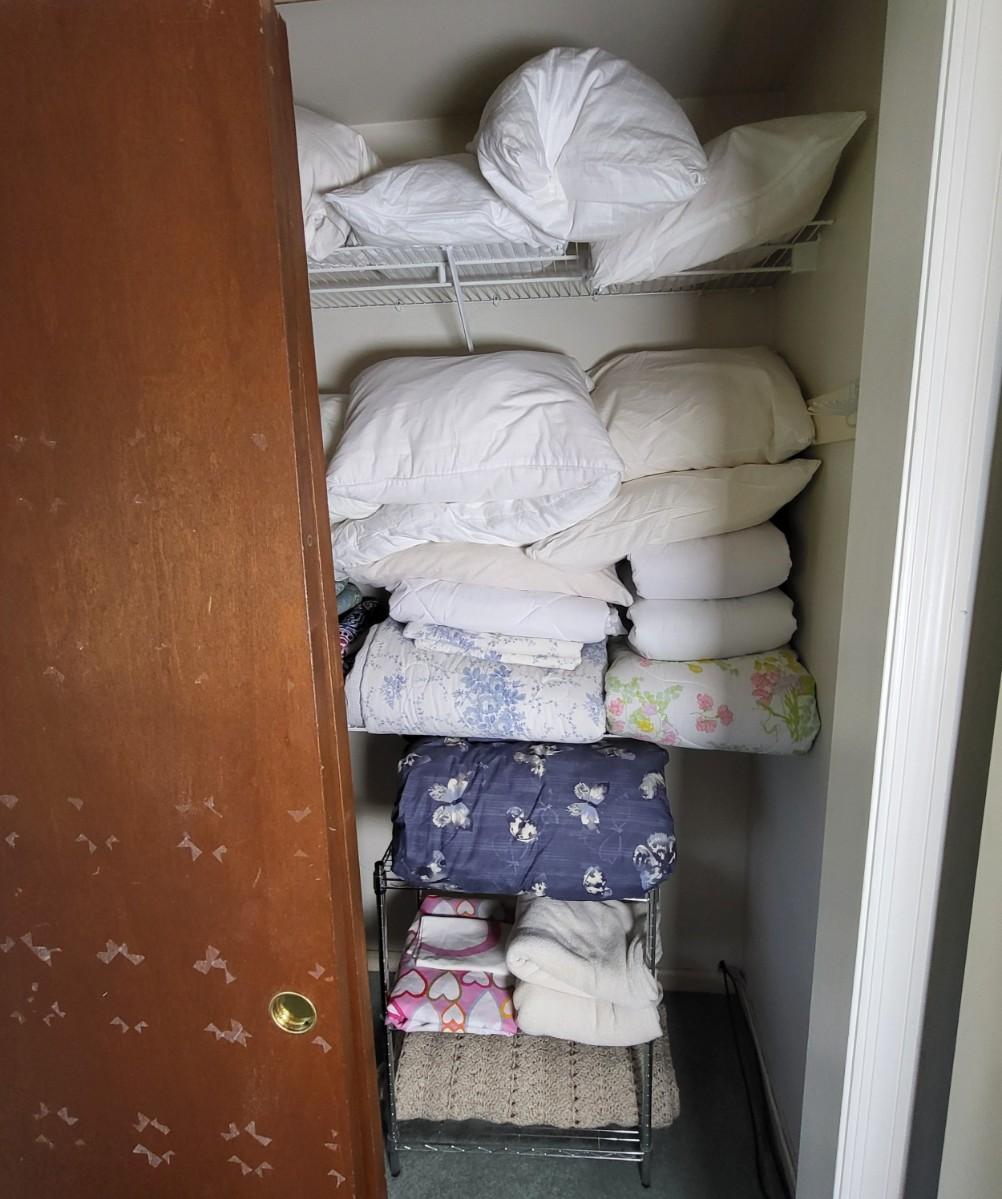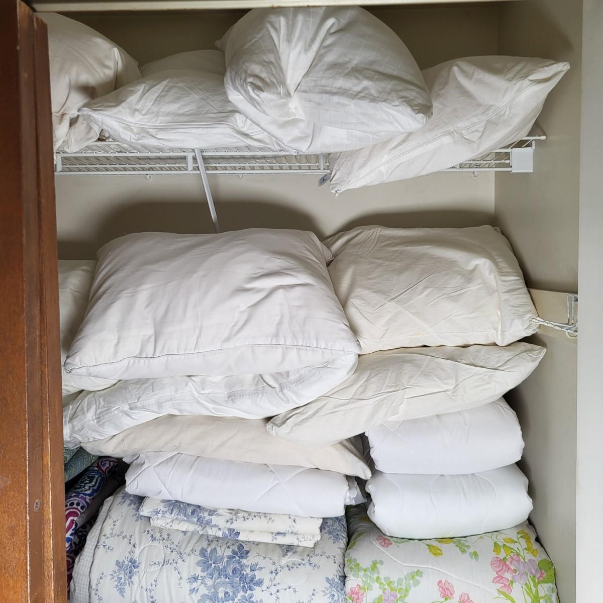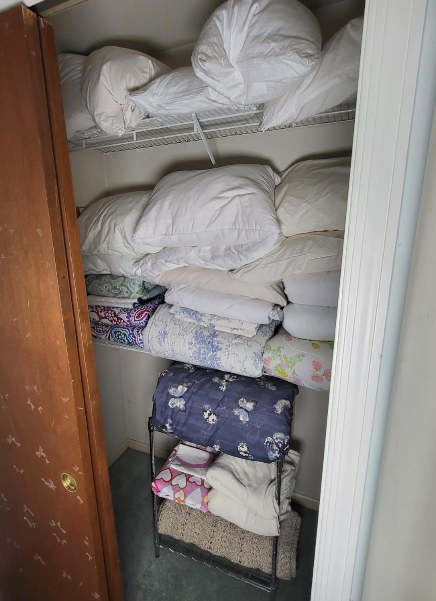 LOT 1B: Closet Full of Linens Including Pillows, Sheets, Blankets and More