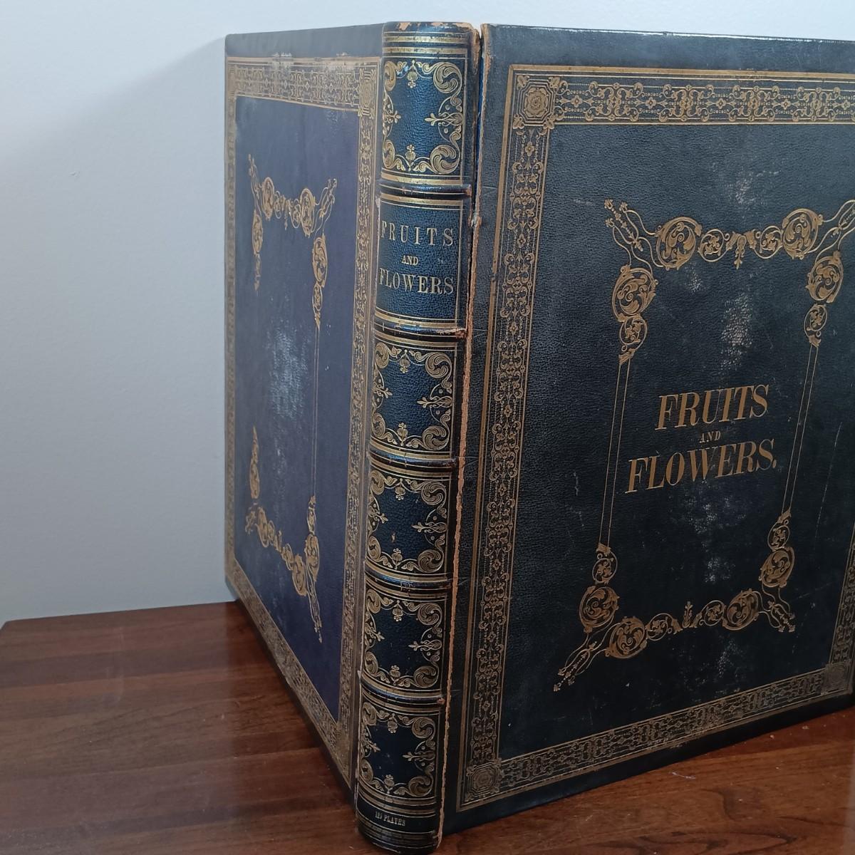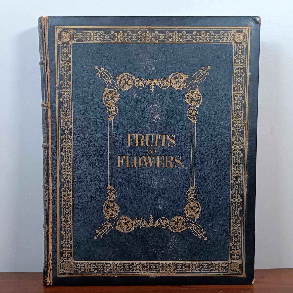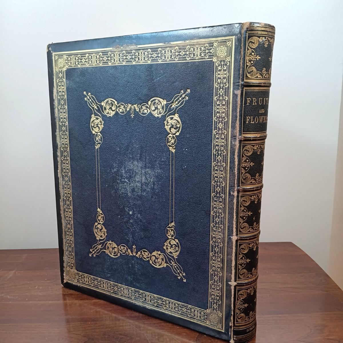 LOT 1: 19th Century Leather Bound Book of J. Prestele Lithographs 'Fruits and Flowers' Bound by F.H. Marshall of Rochester, NY