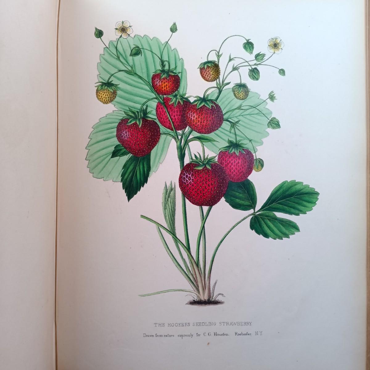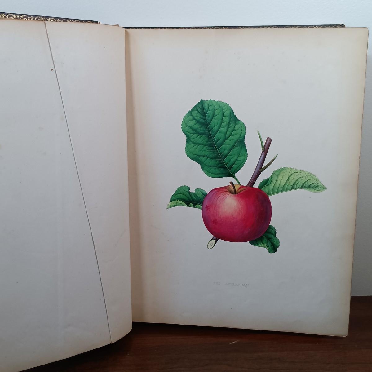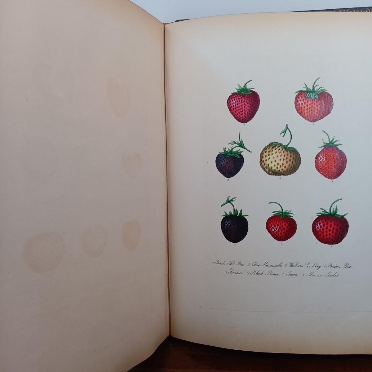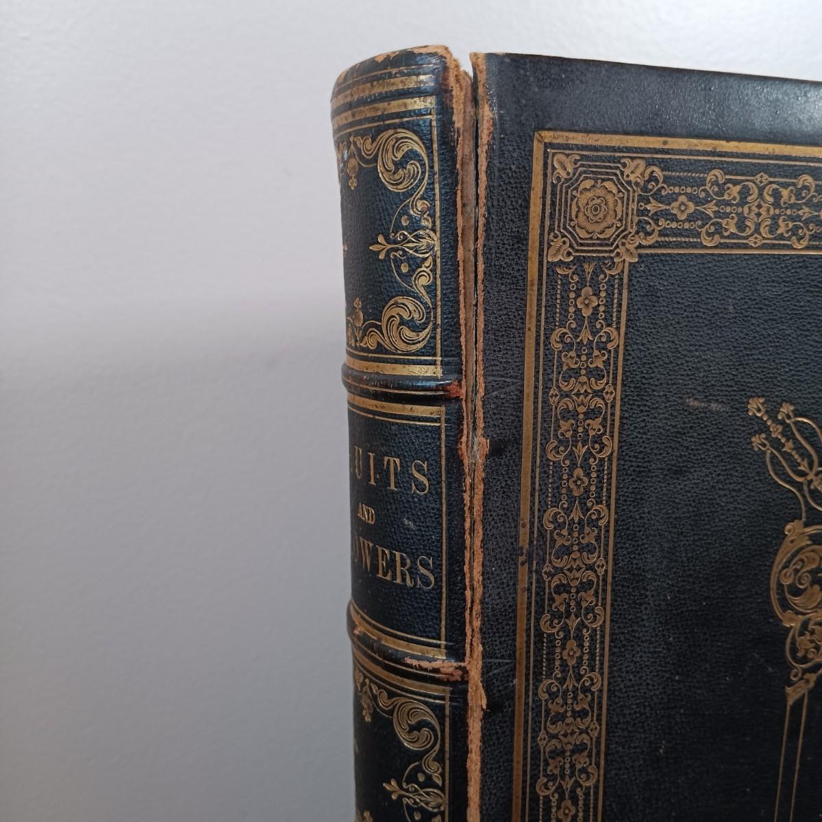 LOT 1: 19th Century Leather Bound Book of J. Prestele Lithographs 'Fruits and Flowers' Bound by F.H. Marshall of Rochester, NY