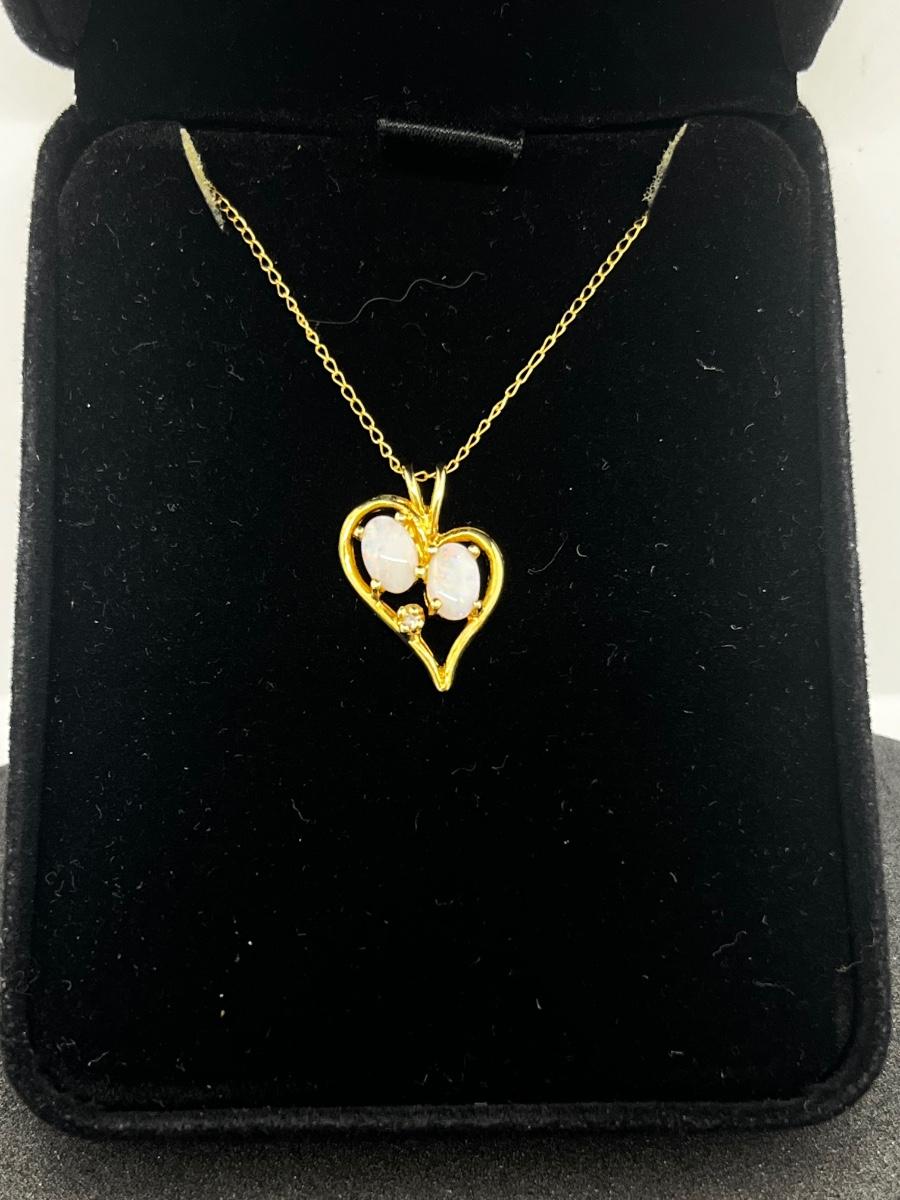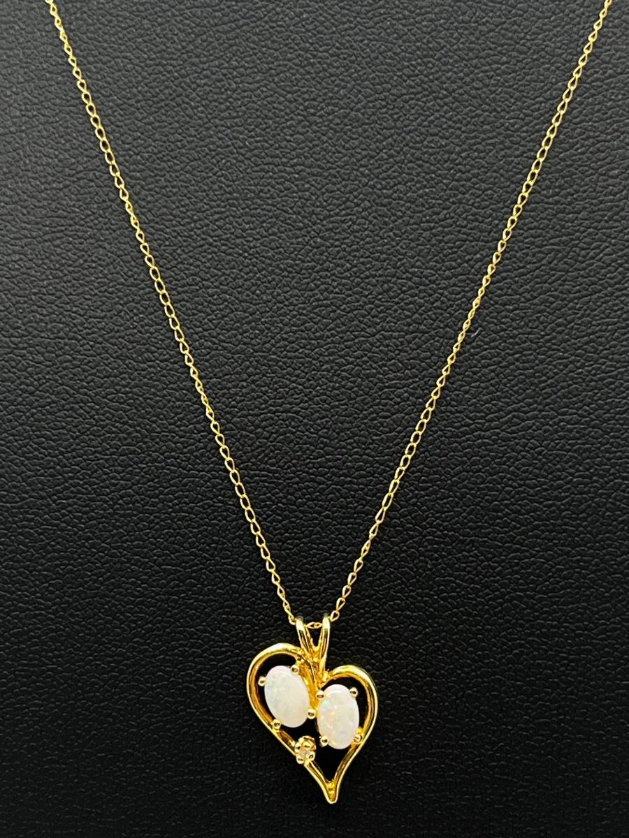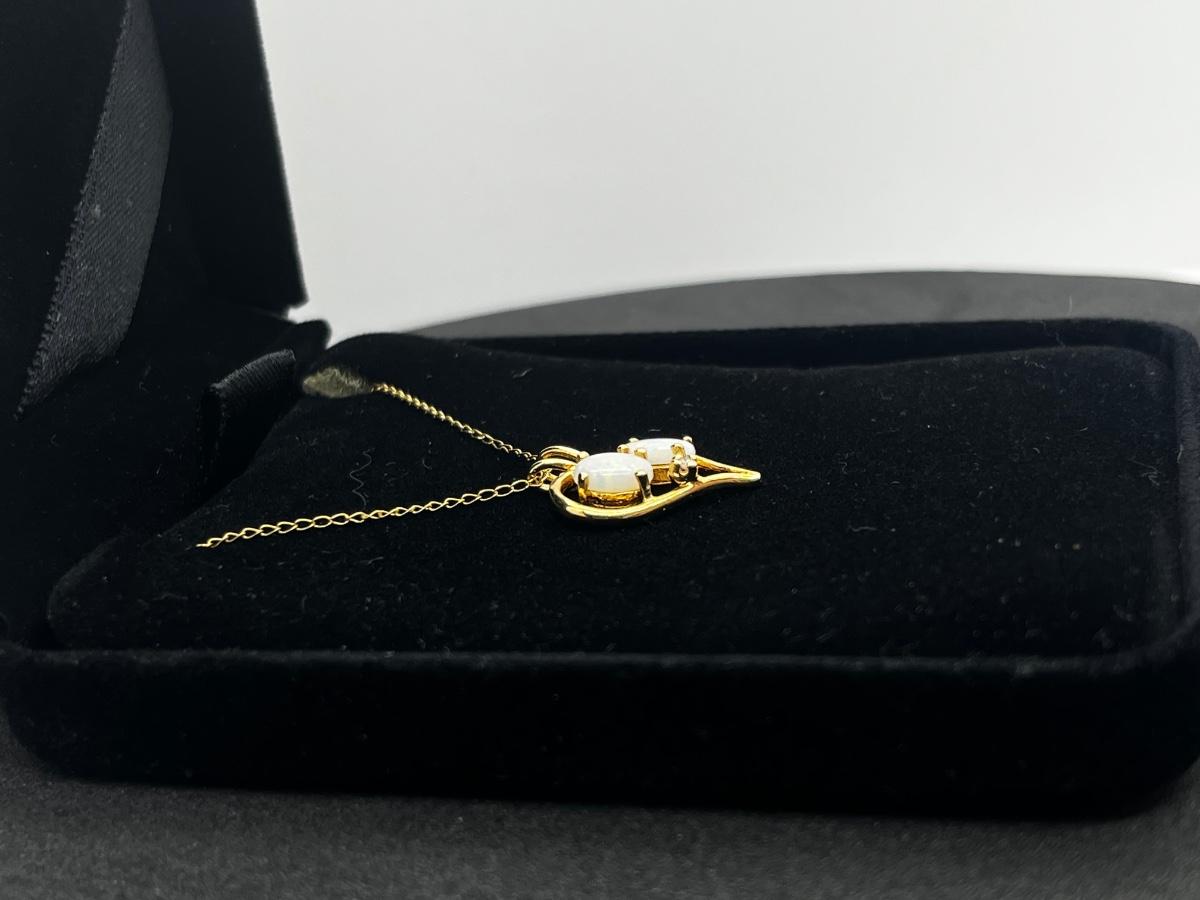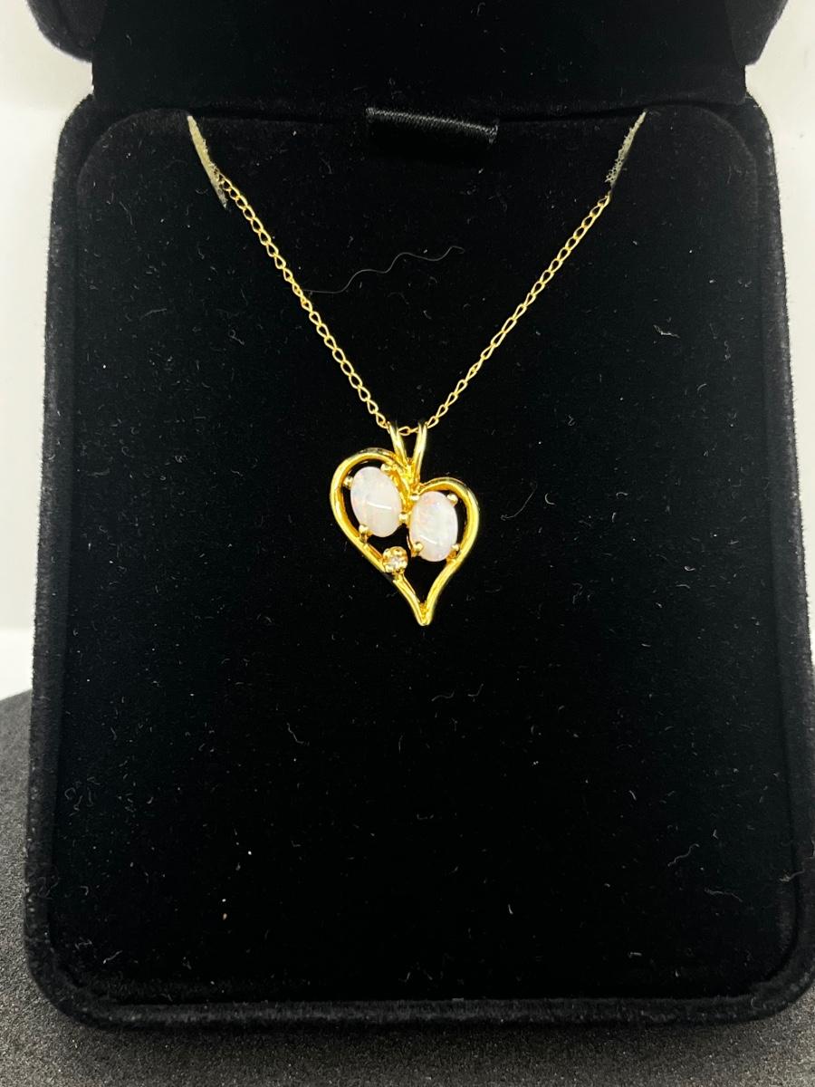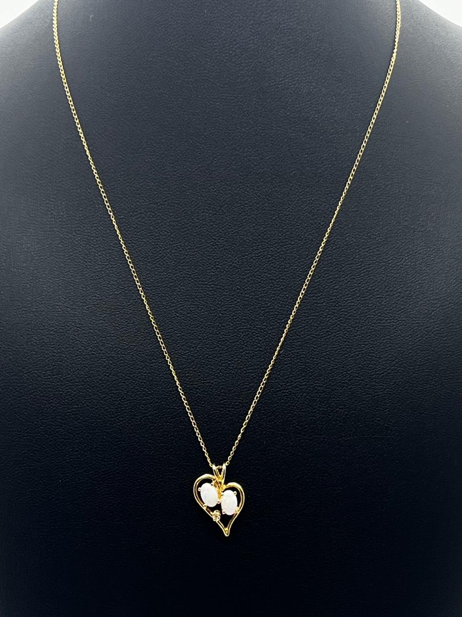 LOT 1: 14K Yellow Gold Chain and Double Opal Pendant - 2 grams total weight