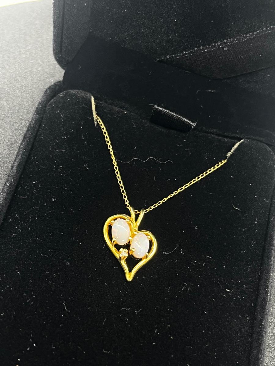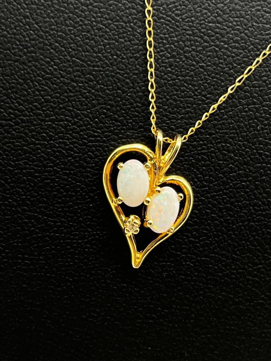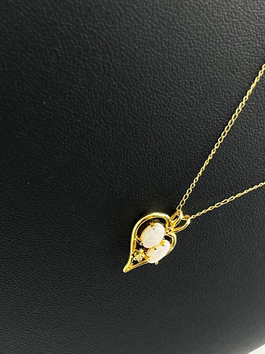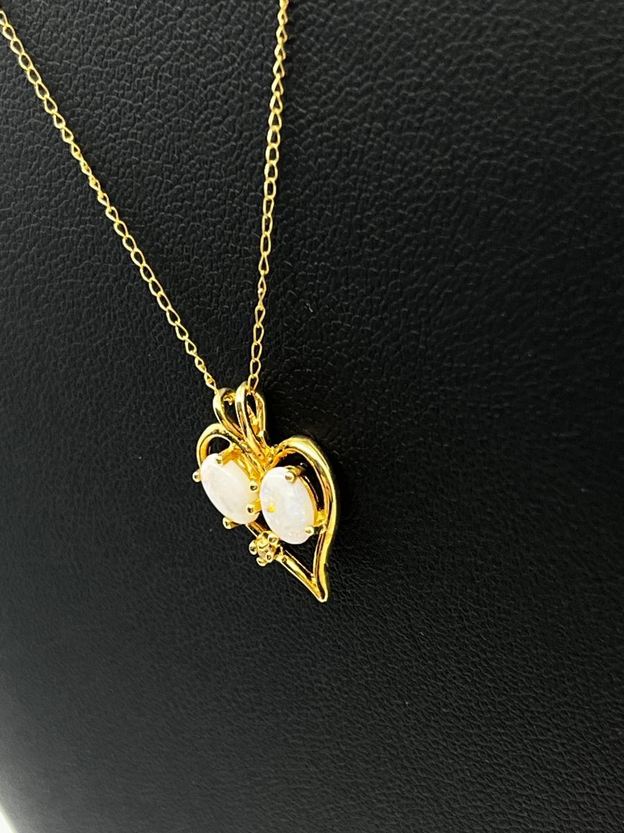 LOT 1: 14K Yellow Gold Chain and Double Opal Pendant - 2 grams total weight
