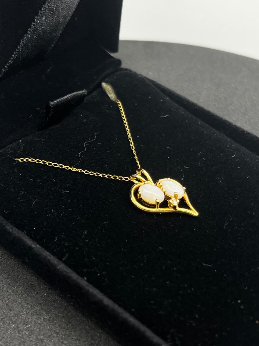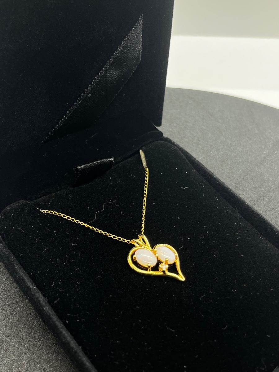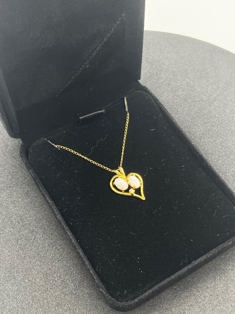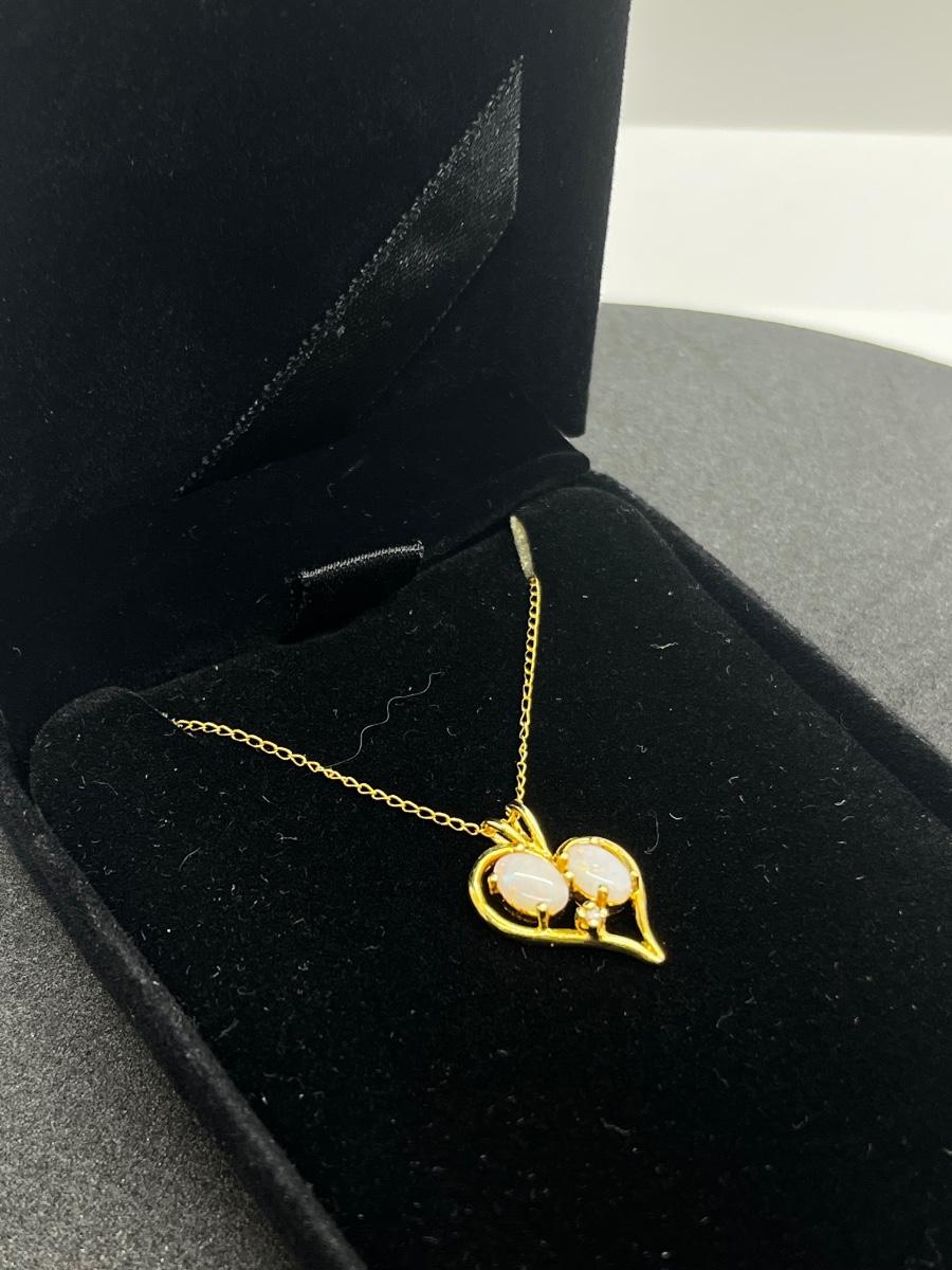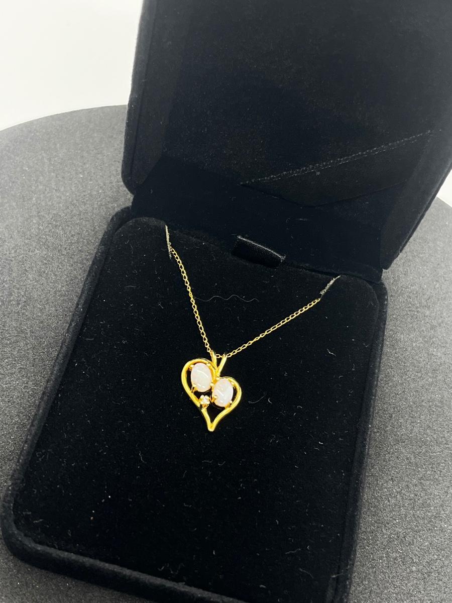 LOT 1: 14K Yellow Gold Chain and Double Opal Pendant - 2 grams total weight