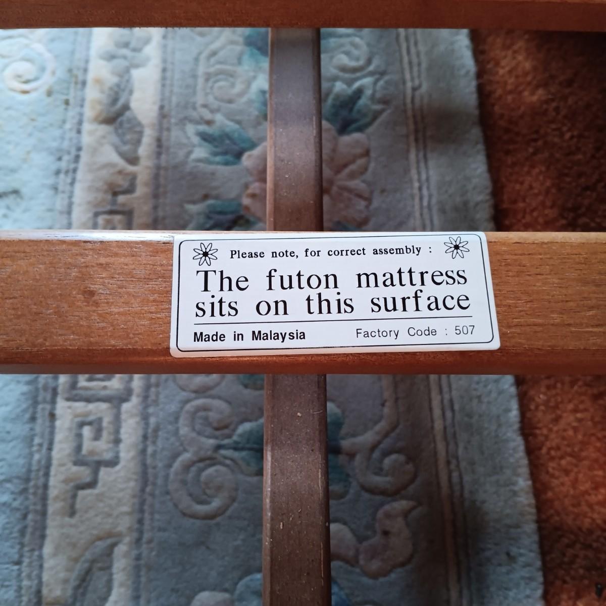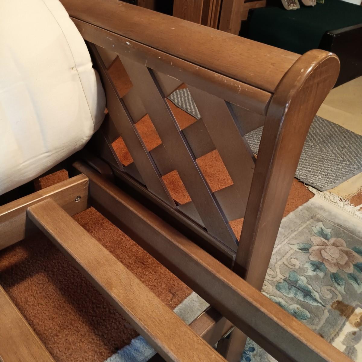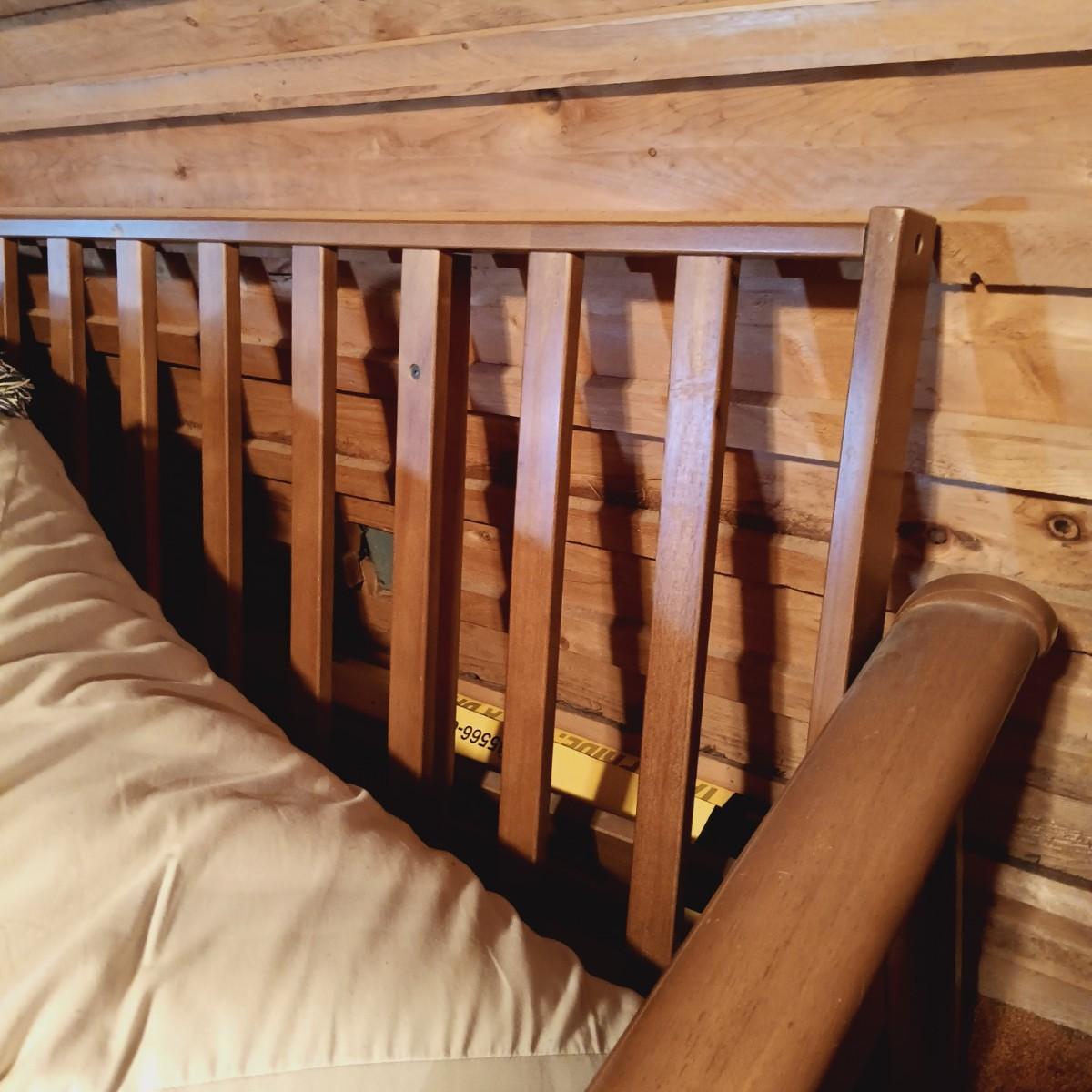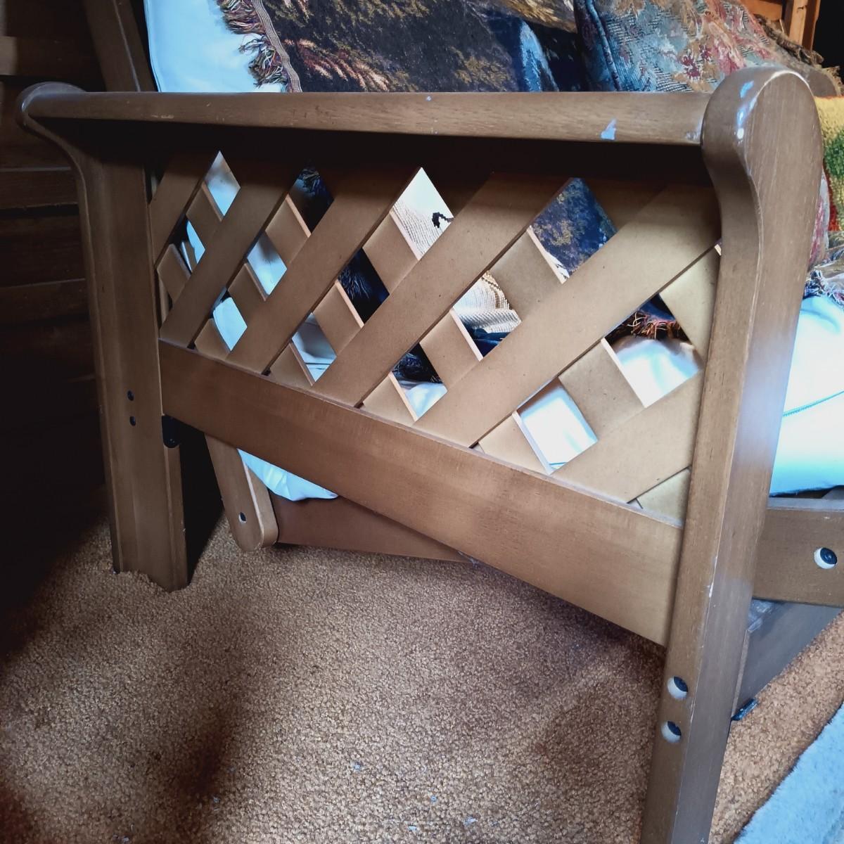 LOT 1: Wooden Futon with Lattice Arms and Outdoor Inspired Covering and Pillows