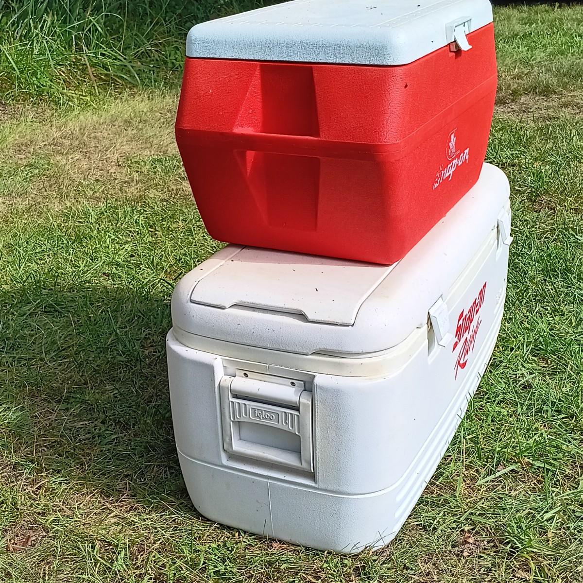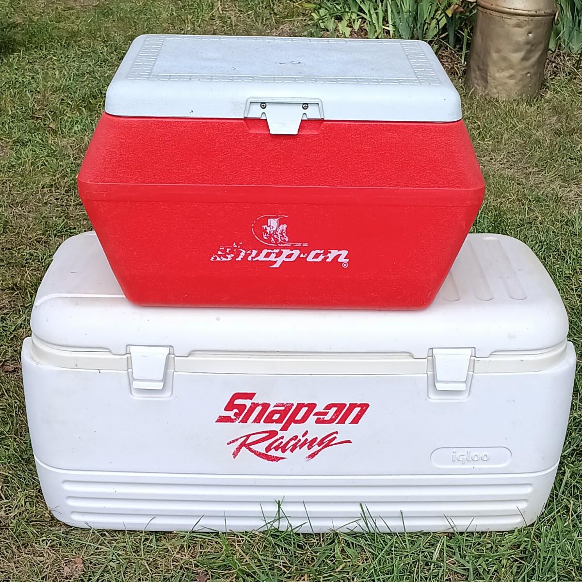 LOT 1: Vintage Snap-On Racing Igloo Cooler & Snap-On Red 50qt Cooler