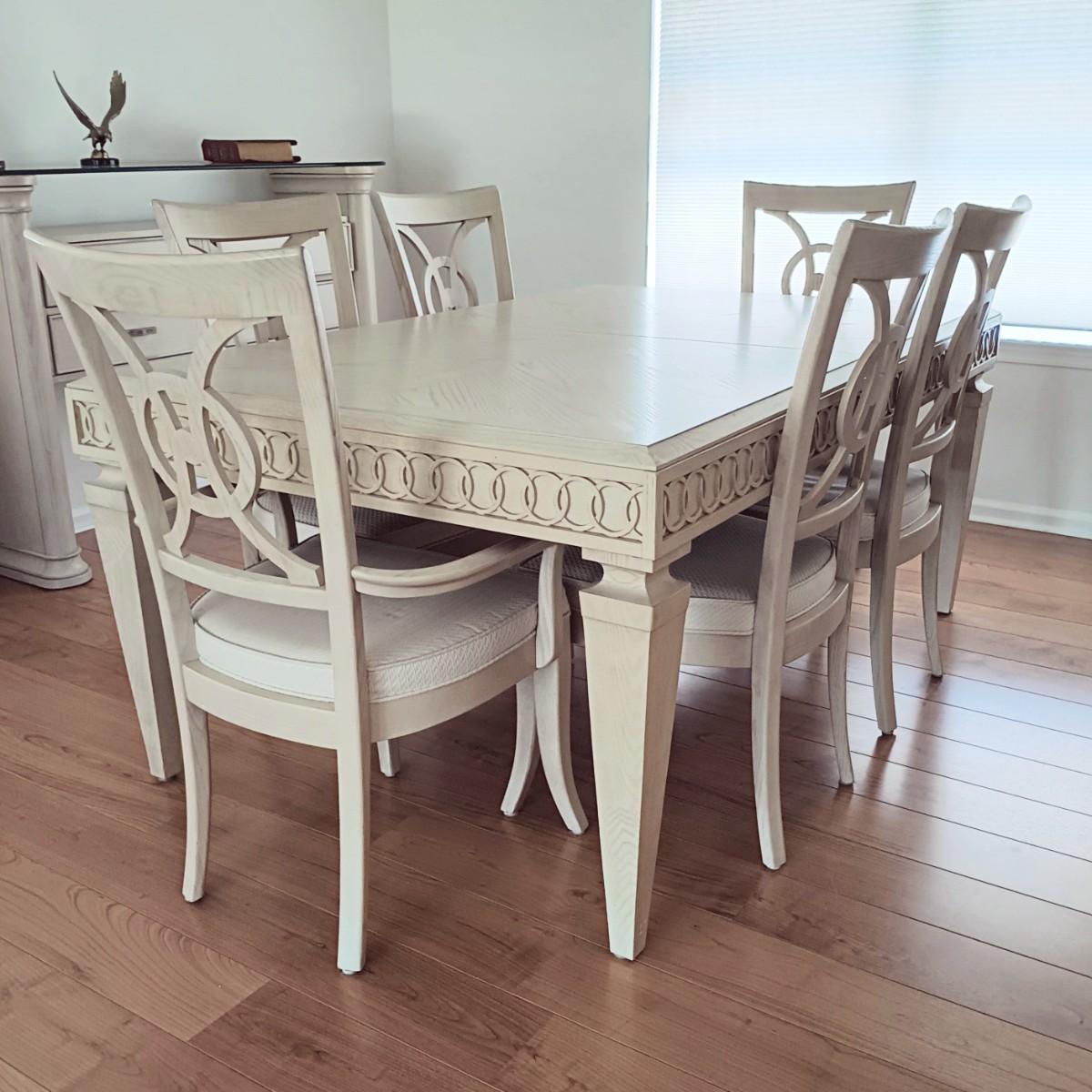 LOT 1: Stanley Furniture Co. Concentrics Collection White-Washed Dining Room Table with Chairs