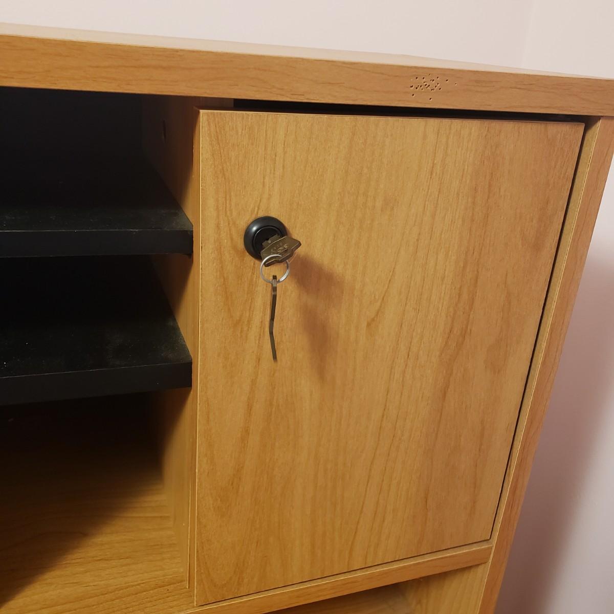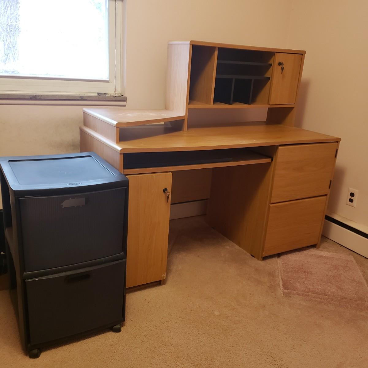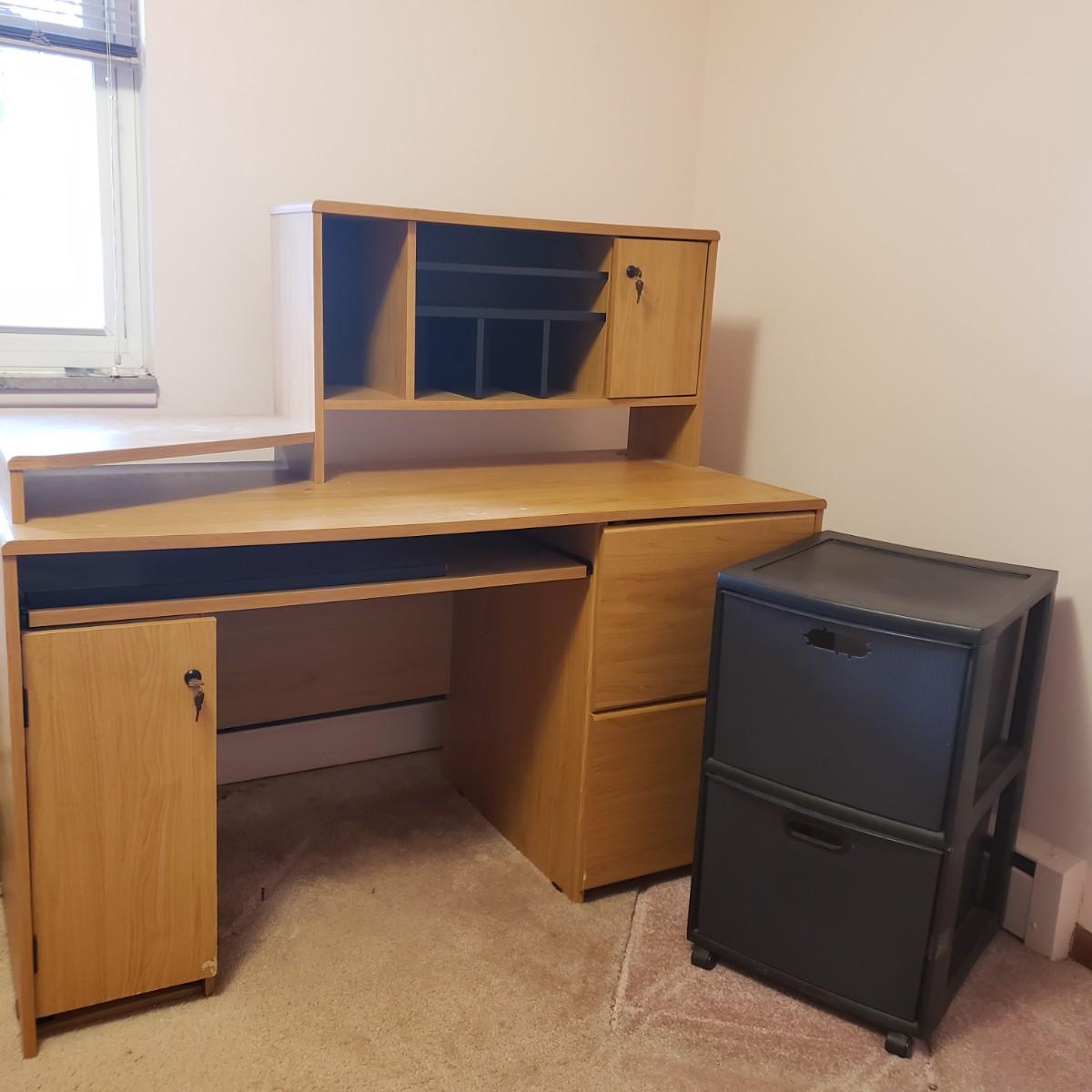 LOT 1X: Desk with Locking Storage System & Rolling 2 Drawer Storage Cart
