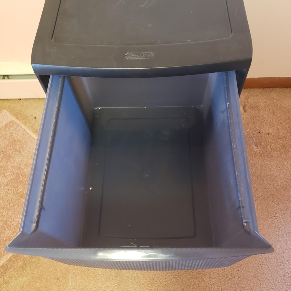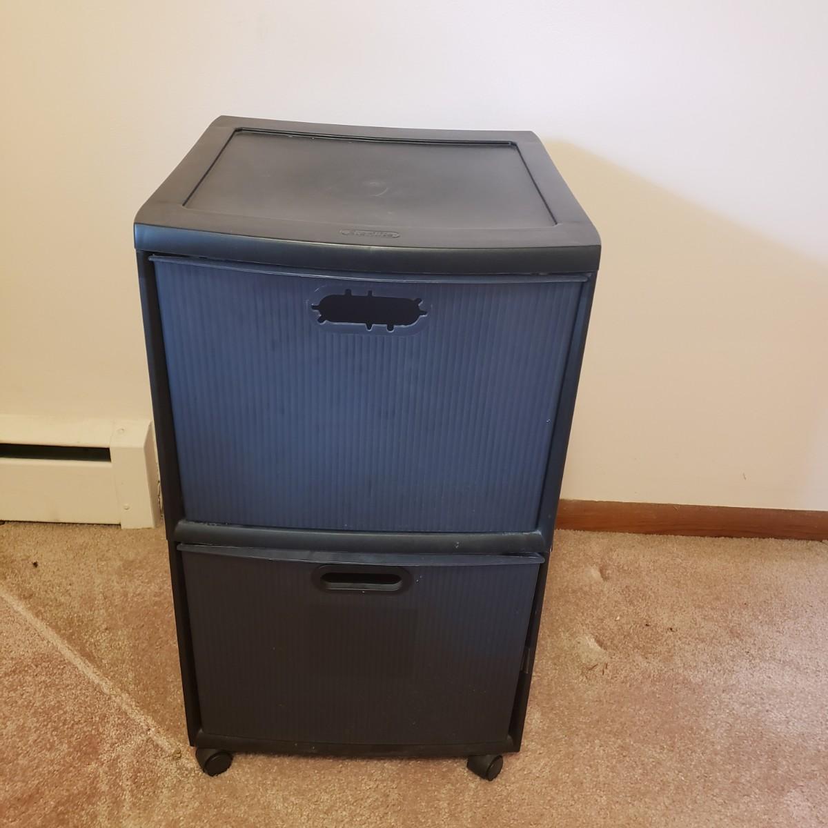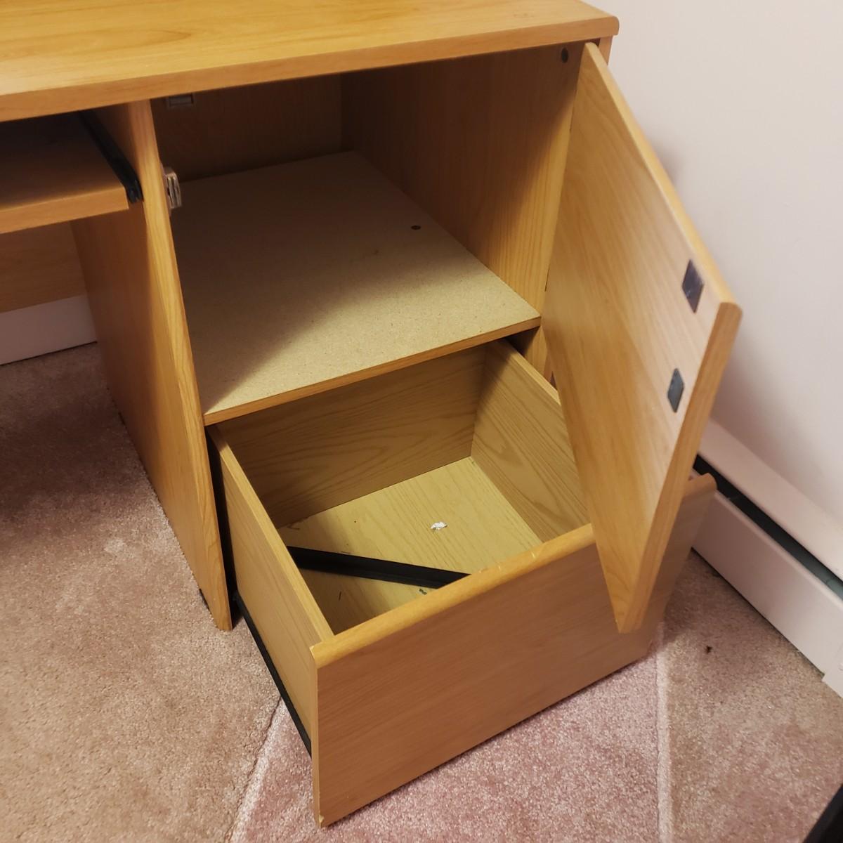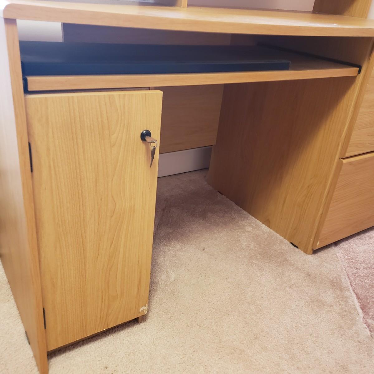 LOT 1X: Desk with Locking Storage System & Rolling 2 Drawer Storage Cart