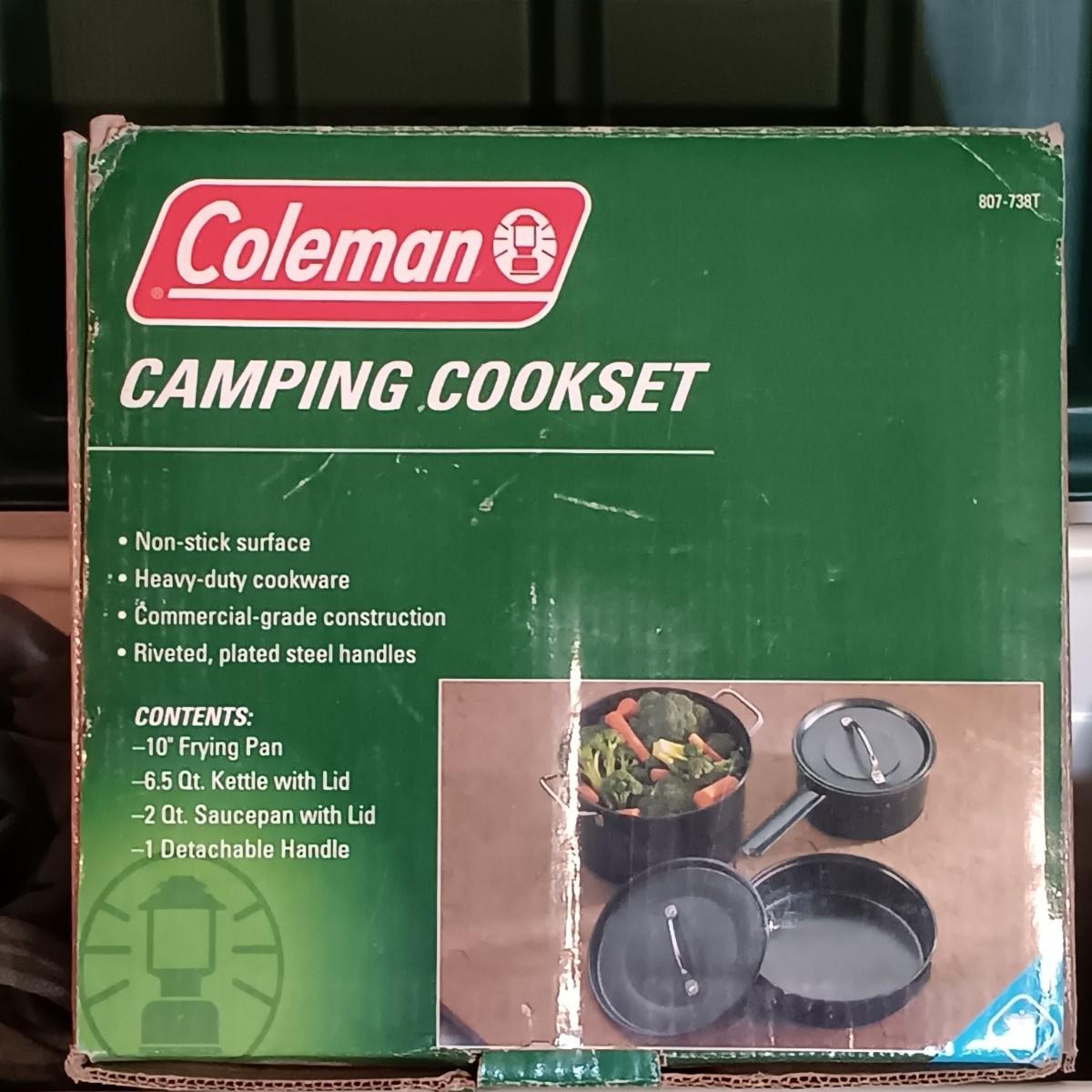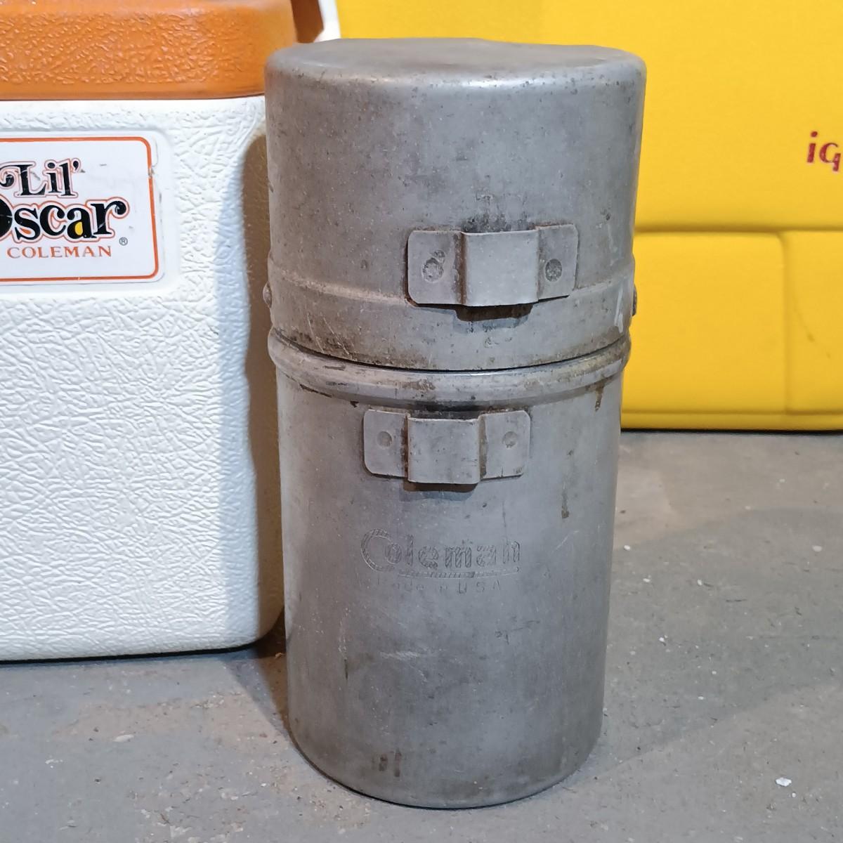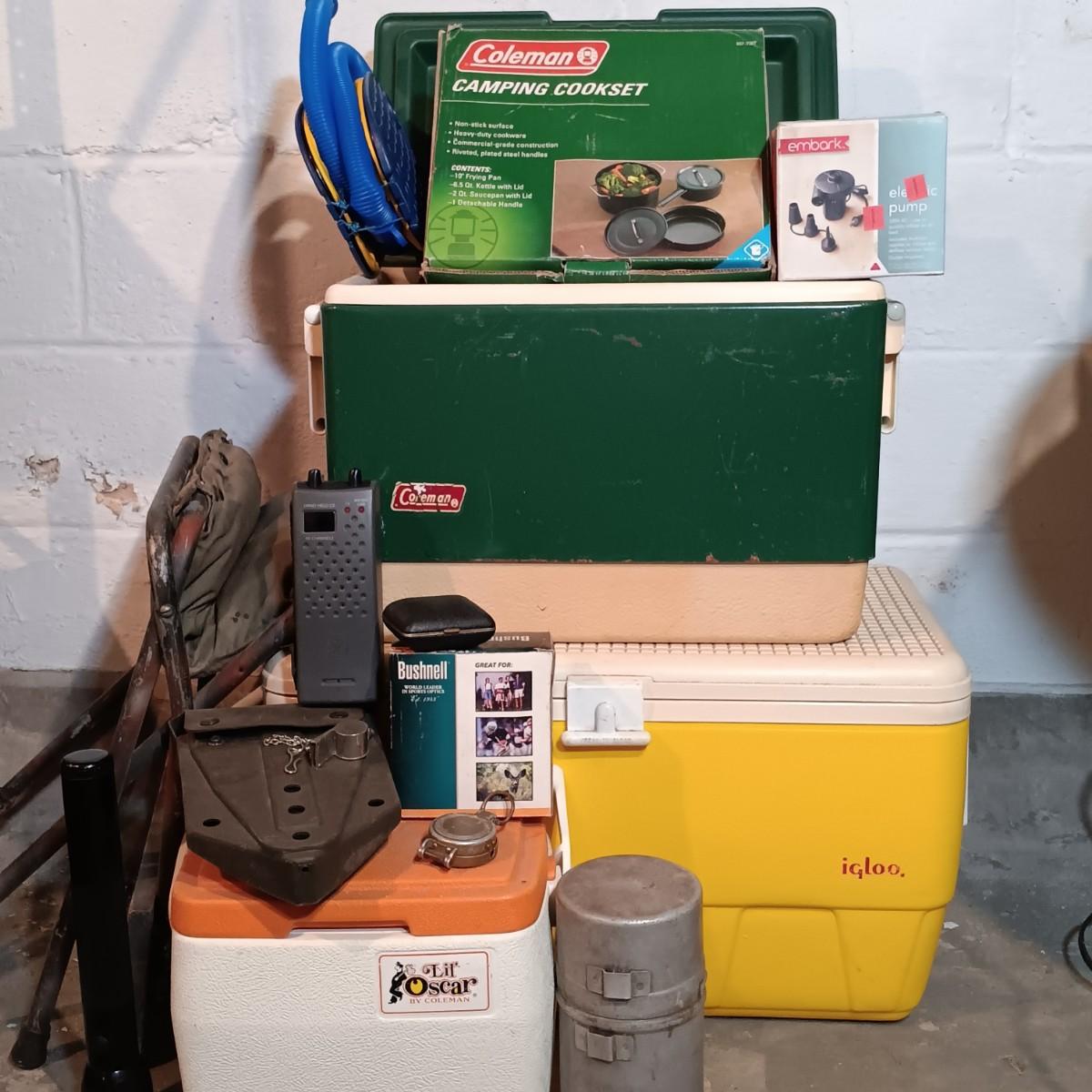 LOT 1: Vintage Coleman Coolers, Coleman Pocket Stove, Coleman Camping Cookset & More