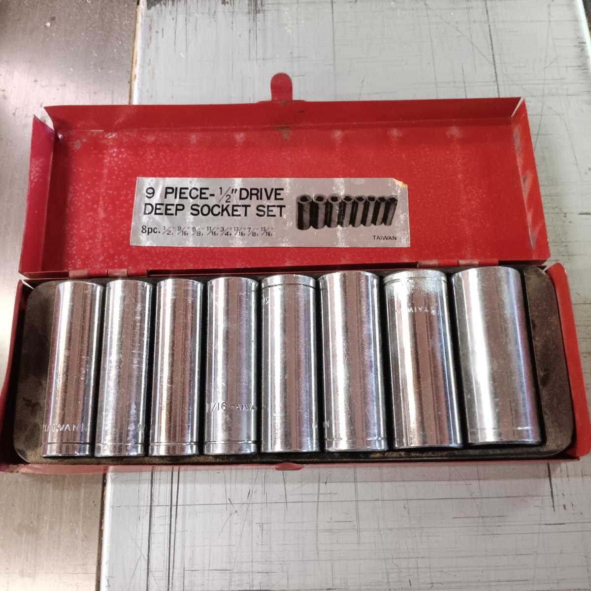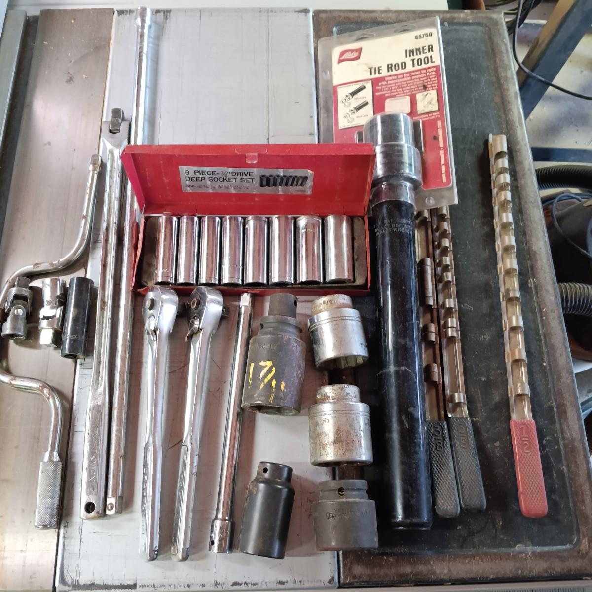 LOT 1: Lisle Inner Tie Rod Tool, 9 Pc 1/2" Deep Socket Set, Craftsman 1/2" Drive Ratchets & More