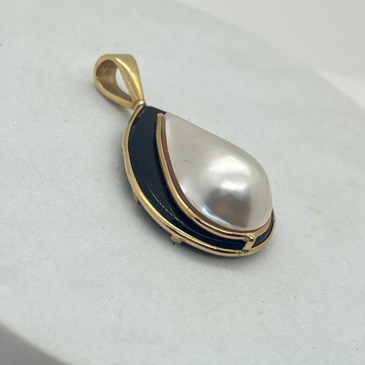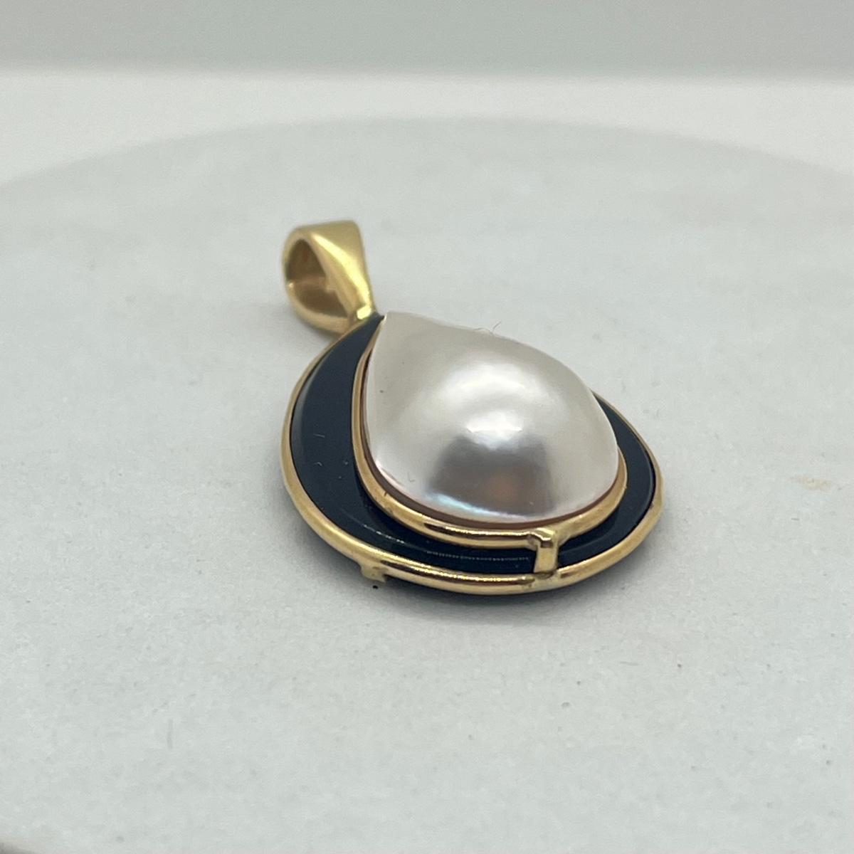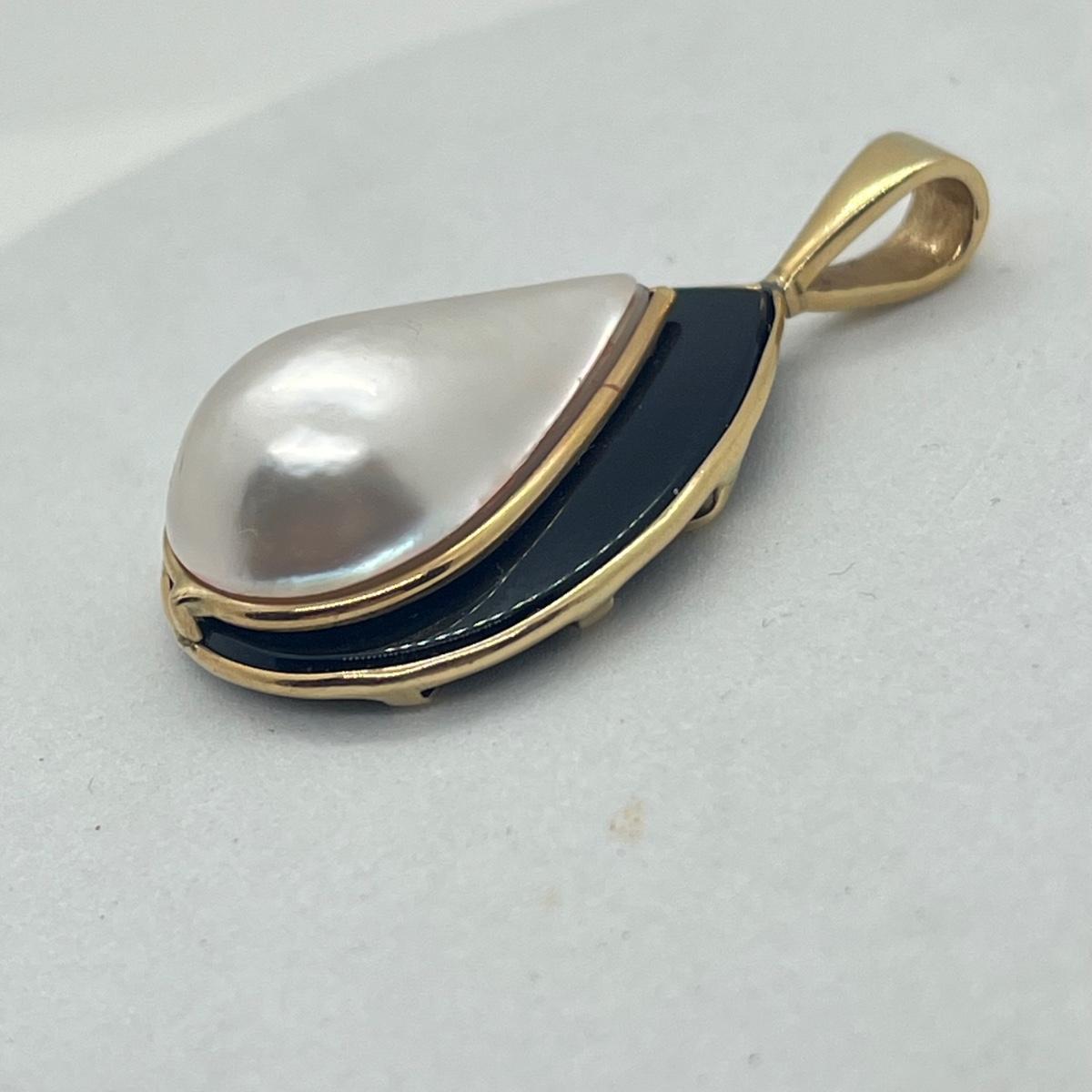 LOT 1: 14K Gold Mabe Pearl and Onyx Pendant - 8.9 gtw