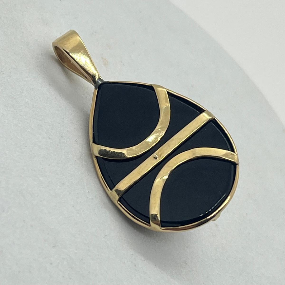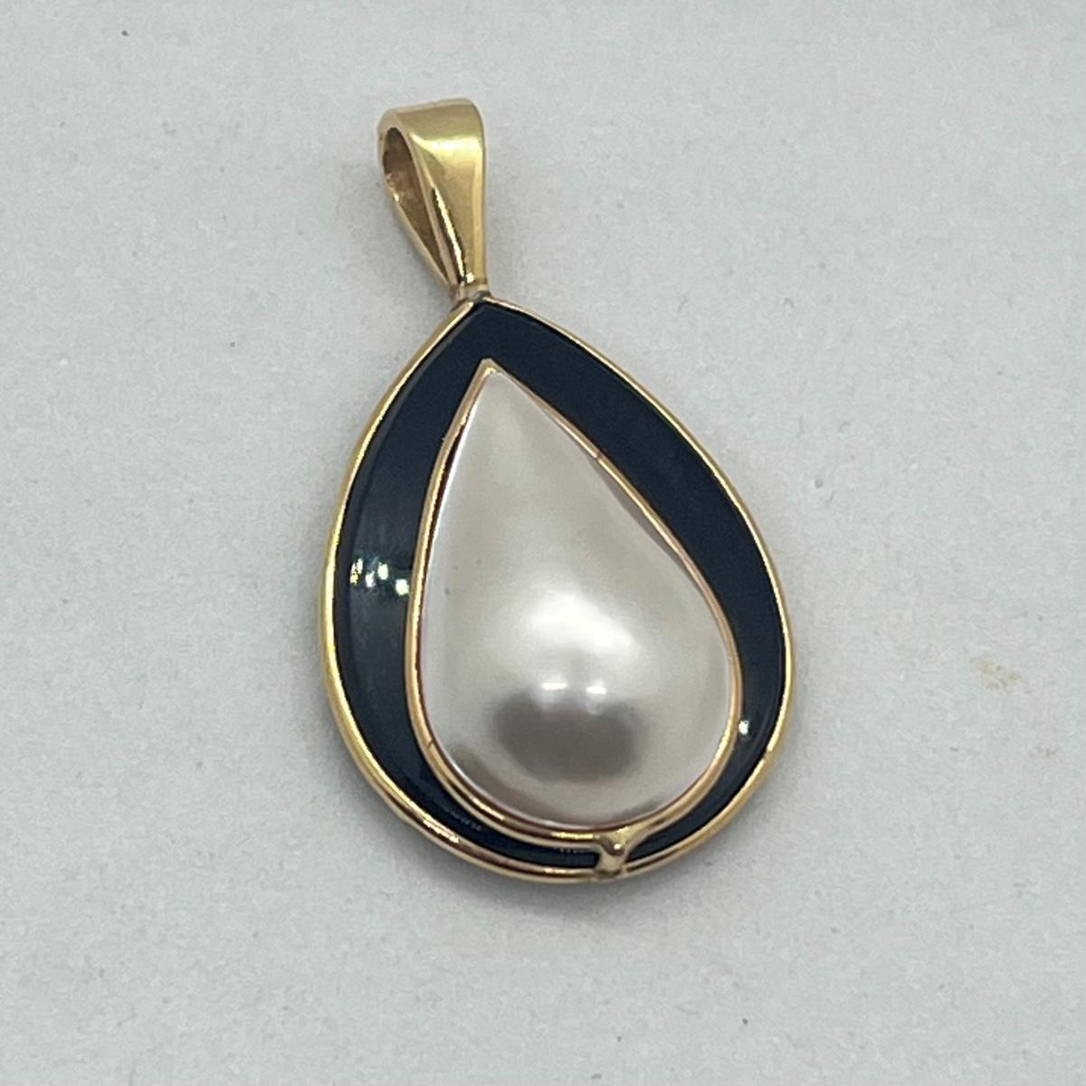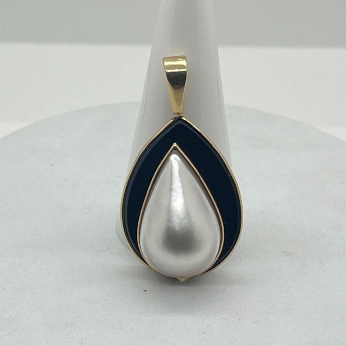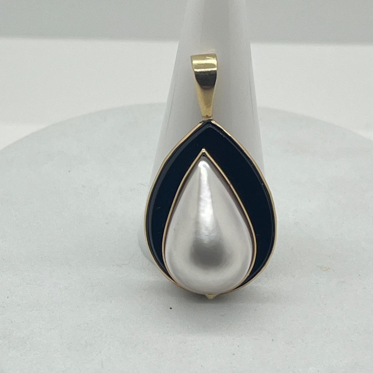 LOT 1: 14K Gold Mabe Pearl and Onyx Pendant - 8.9 gtw