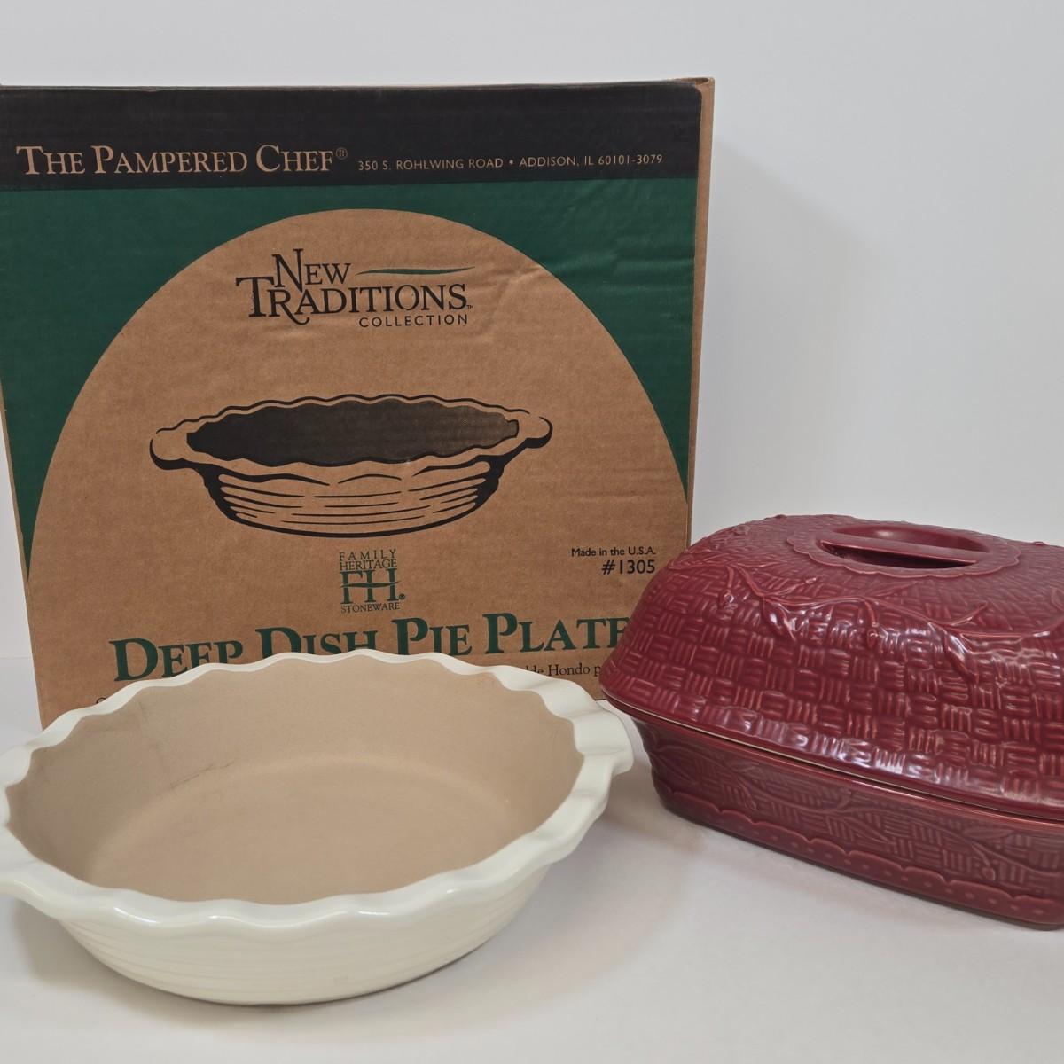 LOT 1: NIB Pampered Chef Deep Dish Pie Plate and Temptations Baking Dish