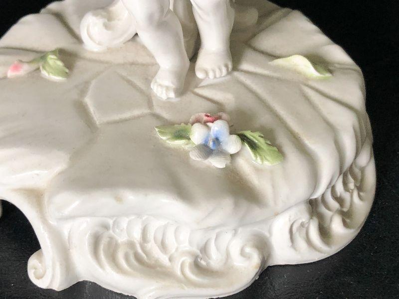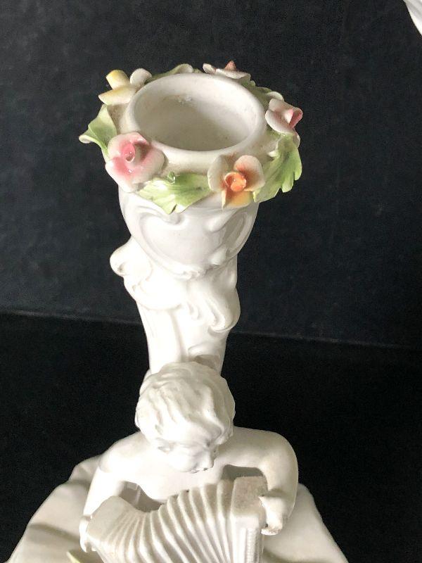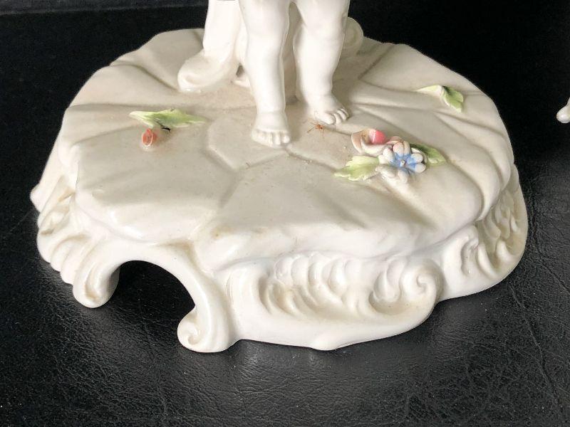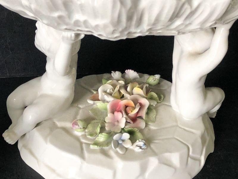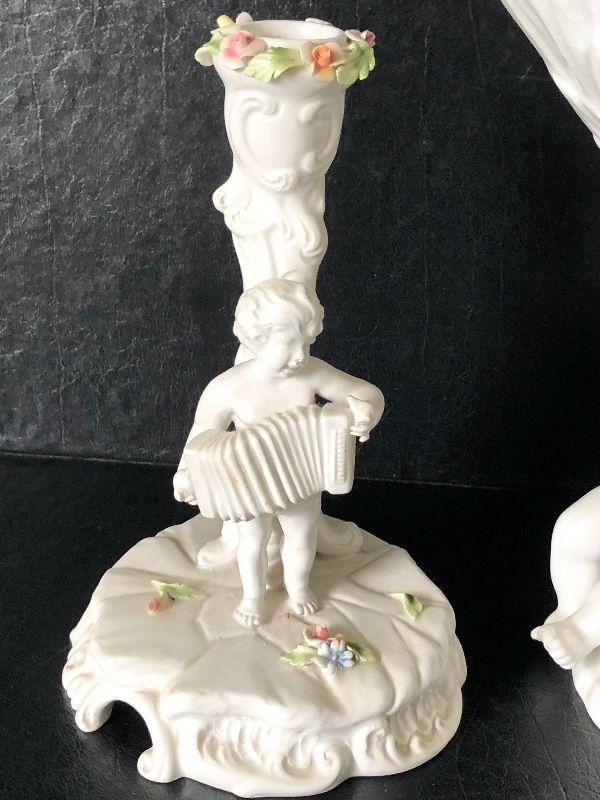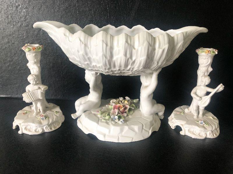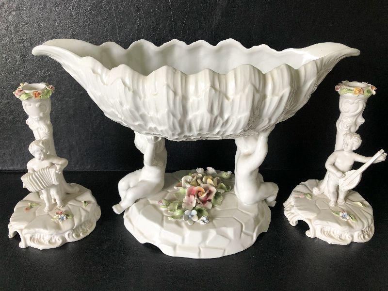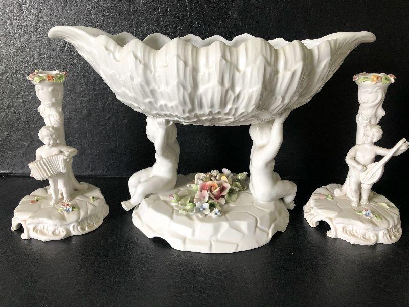 Capodimonte-style Italian Cherub Porcelain Bowl and Candlesticks. No chips detected.