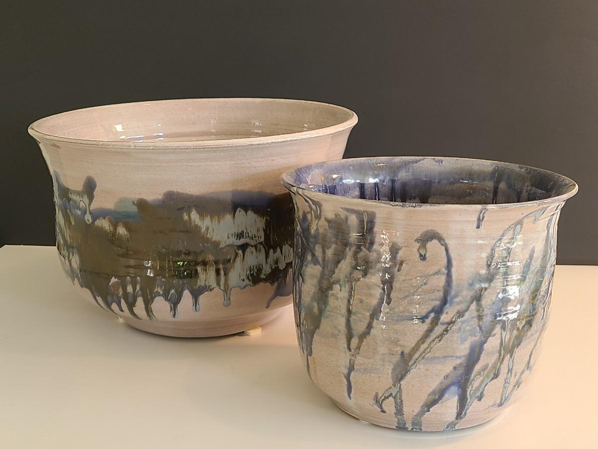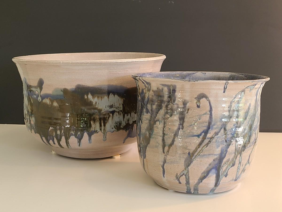 Pottery planters signed by the artists. Gorgeous colors and design. Please see all pictures for content of the lot, condition of the lot, and measurements if taken. Pictures are the best representation of the items listed and items are untested unless indicated in description. Thank you for looking and have fun bidding!