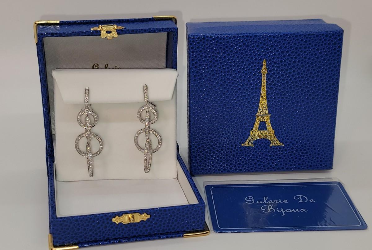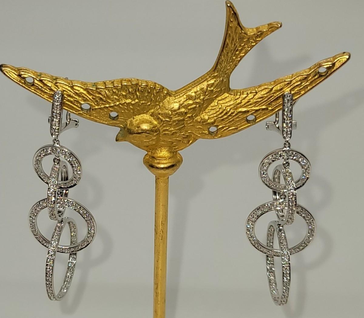 Lot XYZ: Delightful Dangling Diamond Drop Earrings set in 14k white gold stamped SB Designer Sonia Bitton