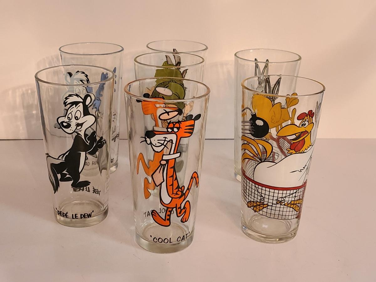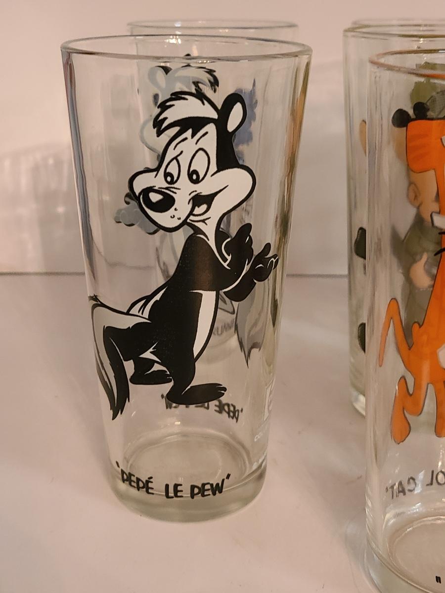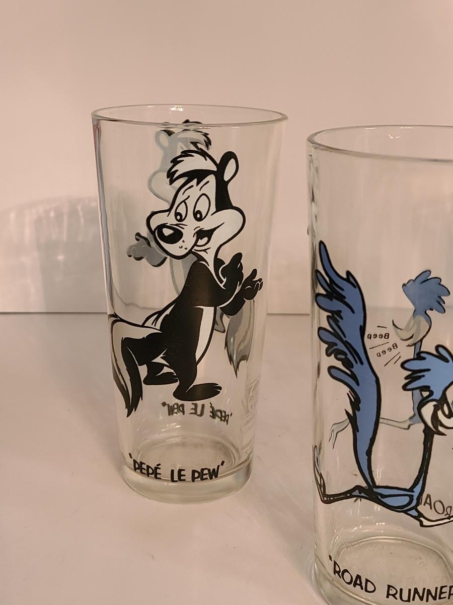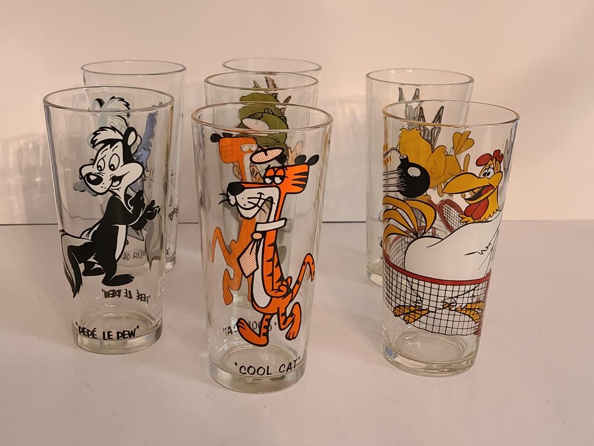 Lot 12: Vintage Drink Glasses: Cool Cat, Pepe Le Pew, Roadrunner and More