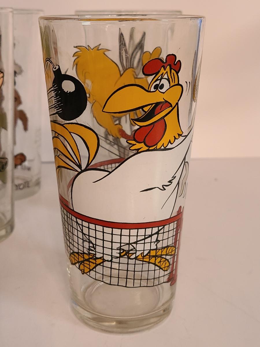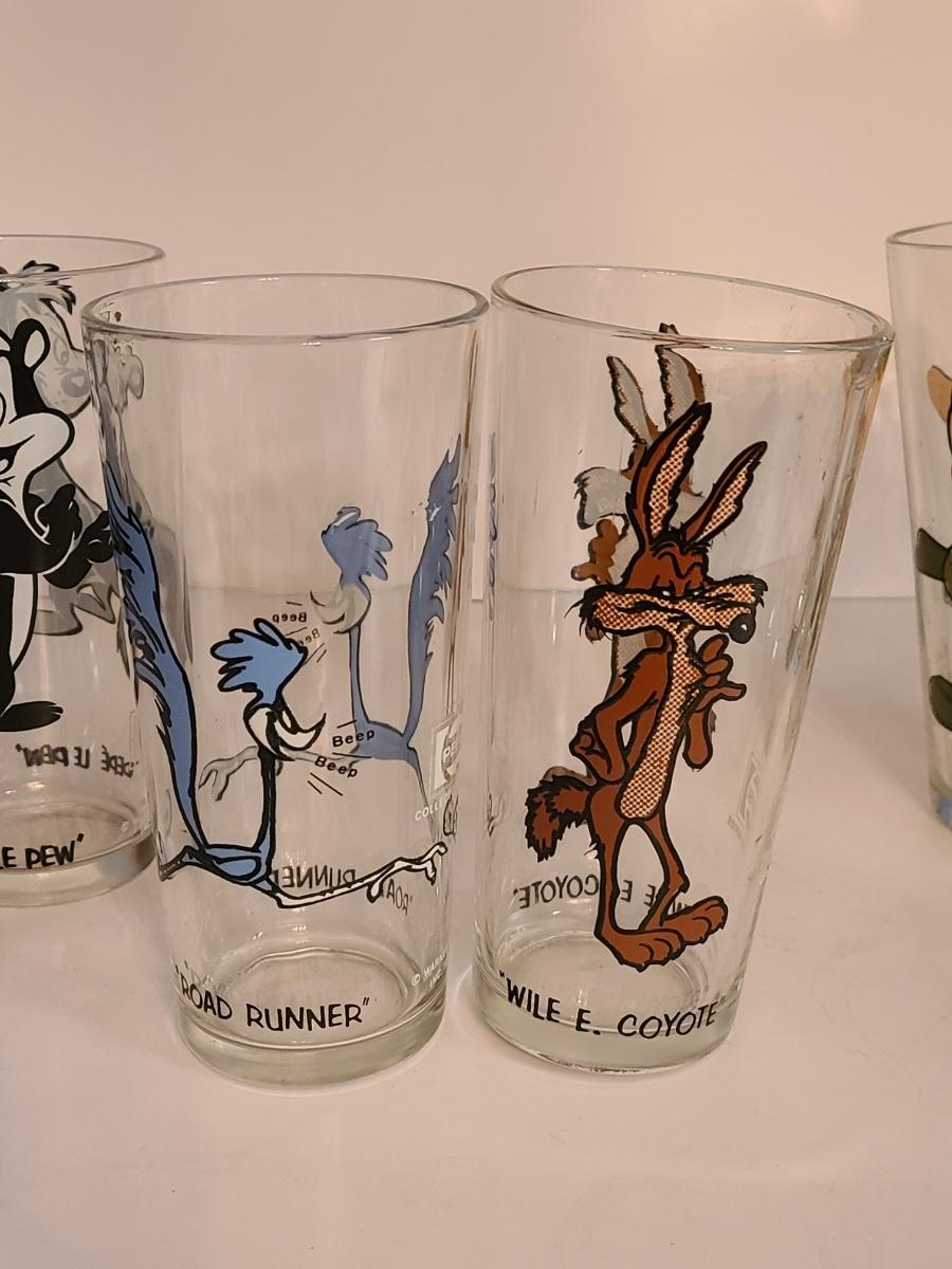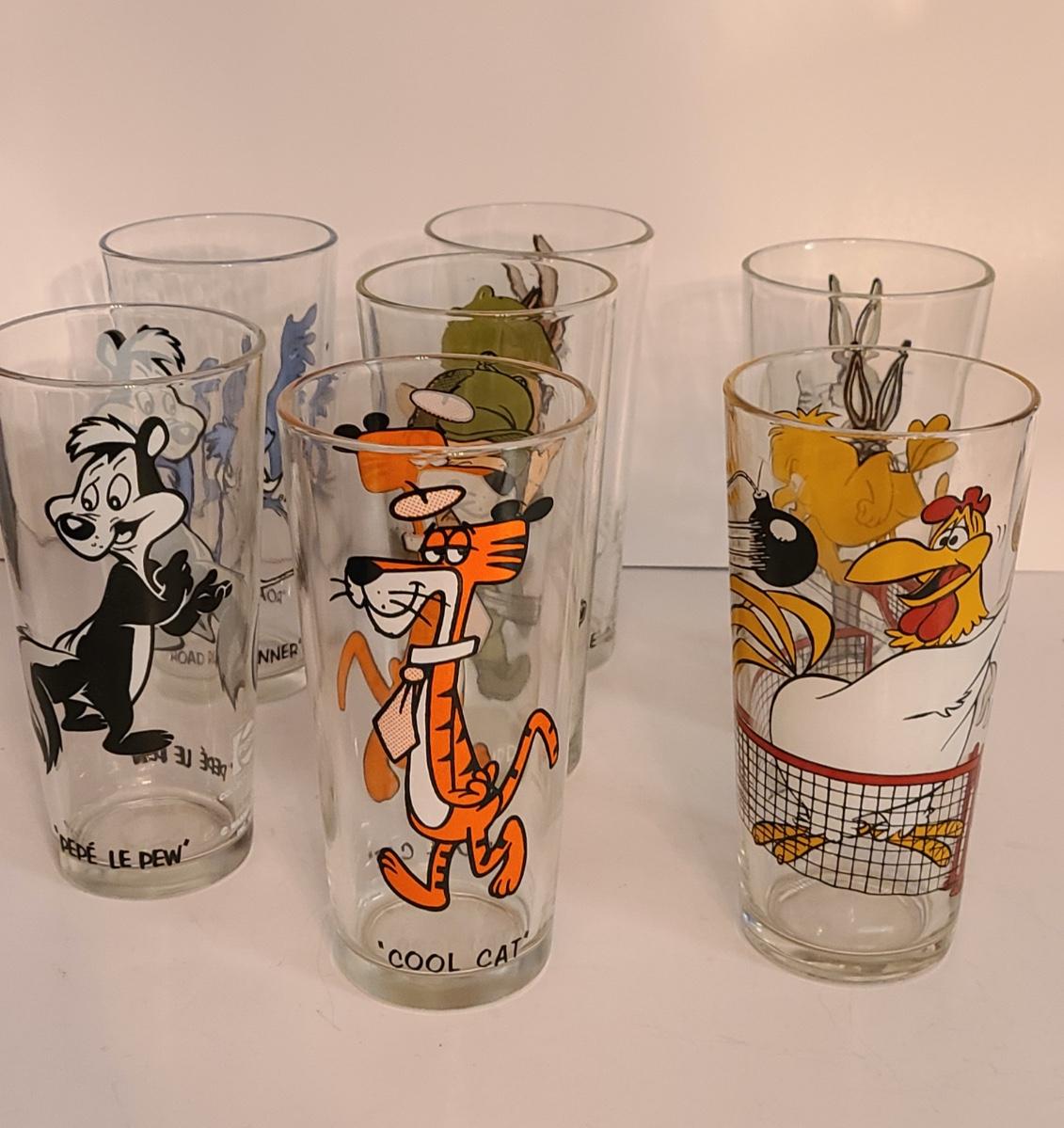 Lot 12: Vintage Drink Glasses: Cool Cat, Pepe Le Pew, Roadrunner and More