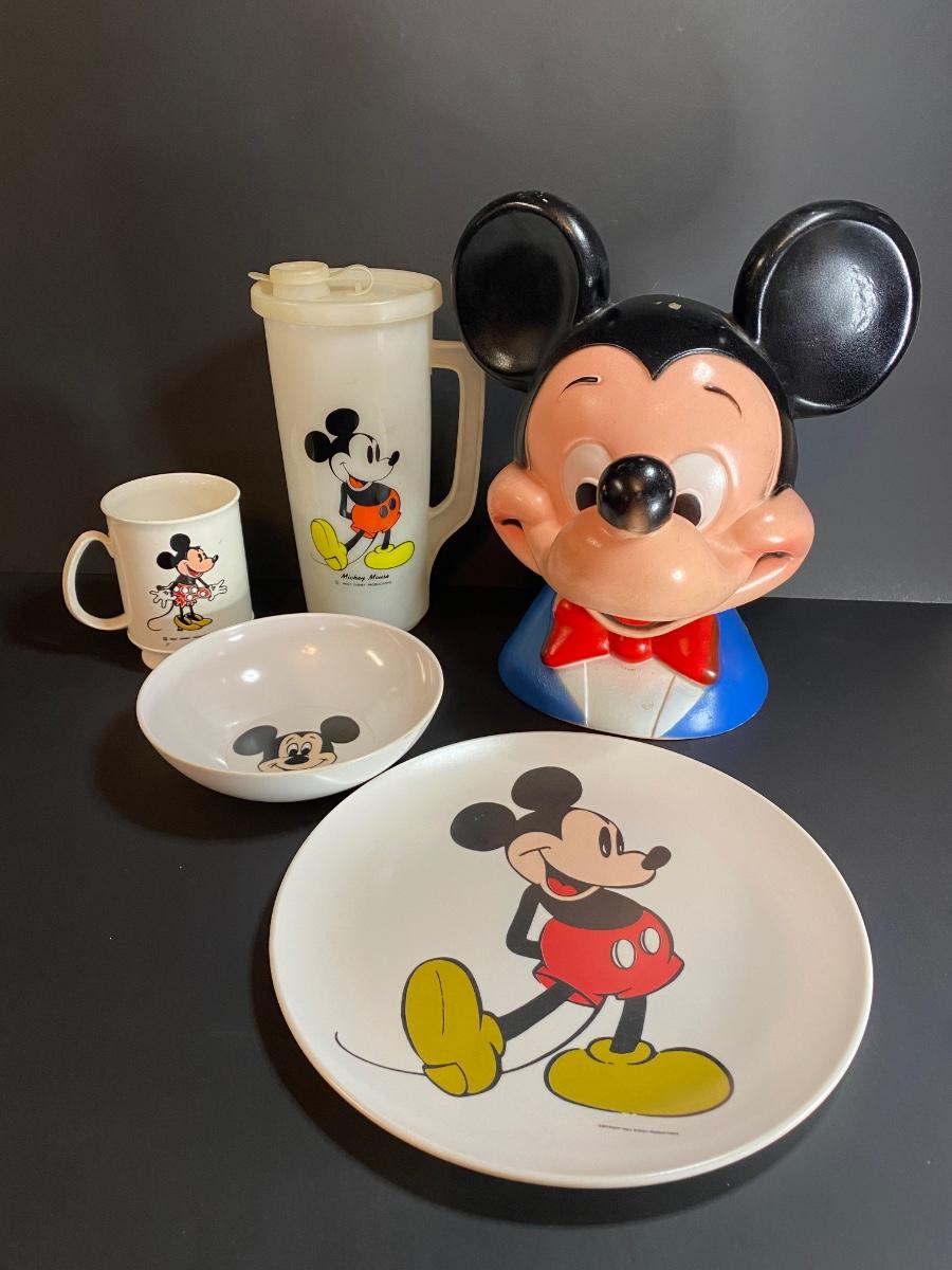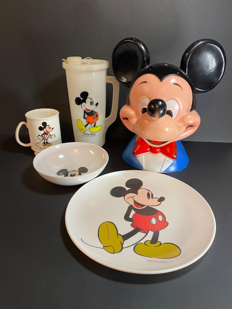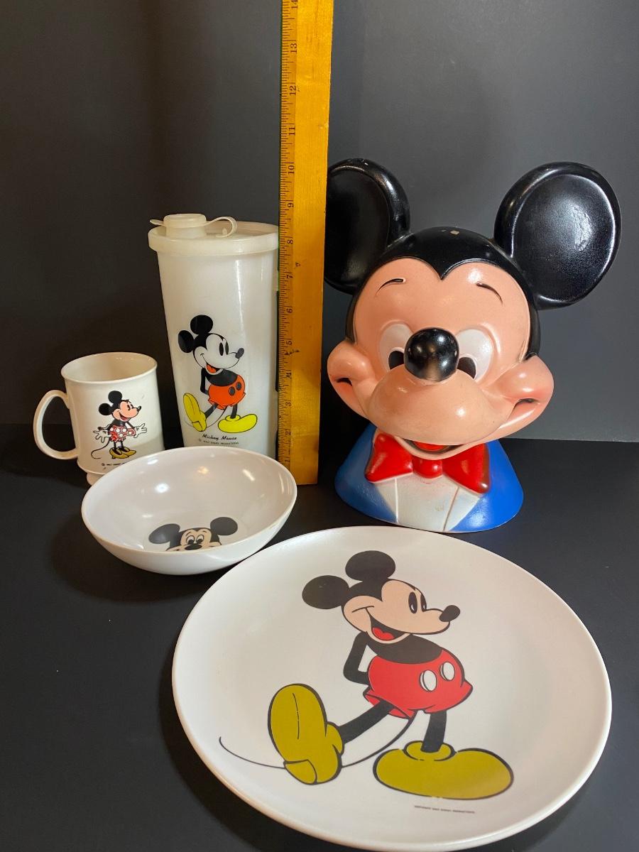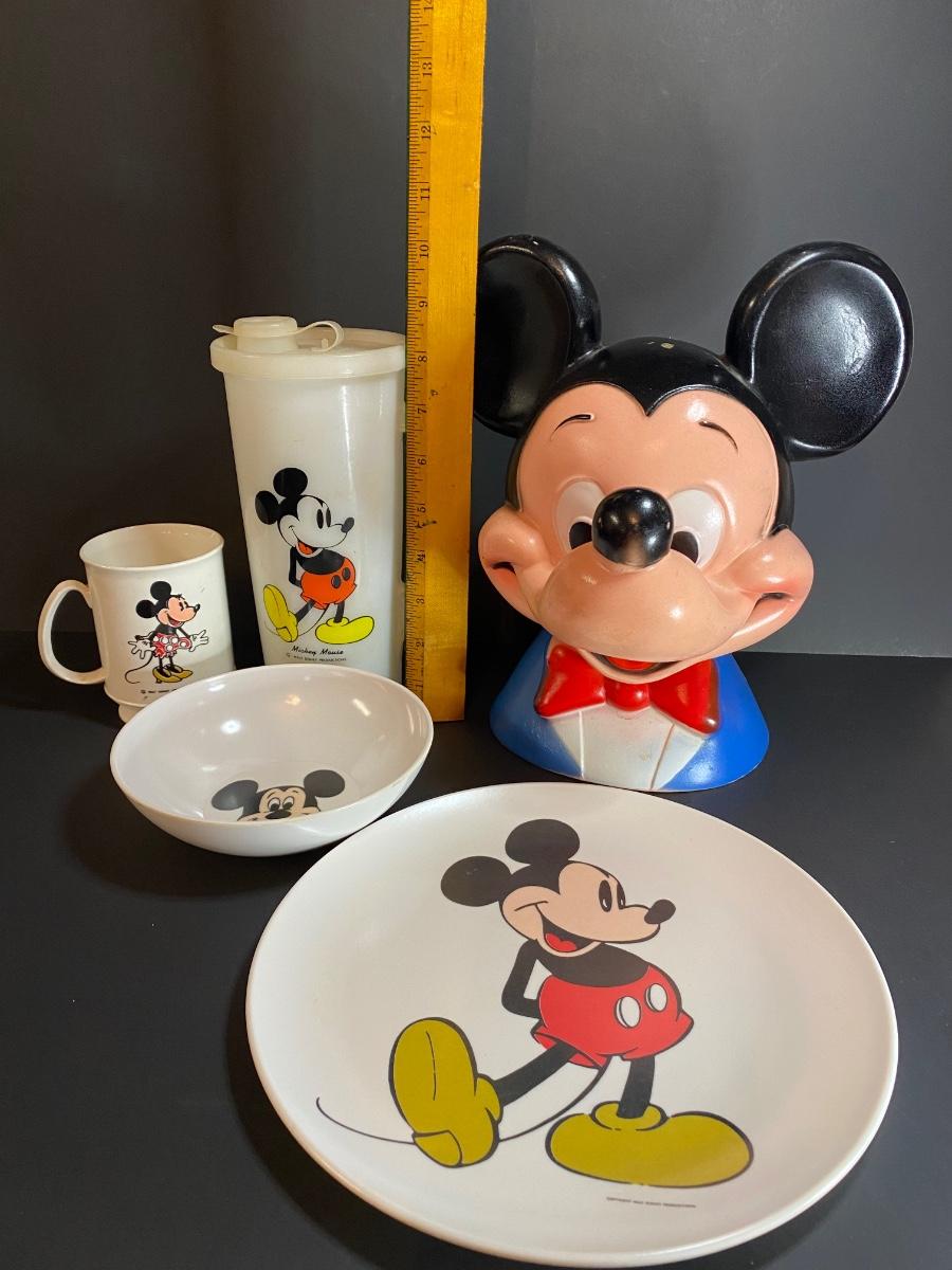 Lot 34G: Vintage Mickey Mouse Collection: Head Bank, Tupperware and More