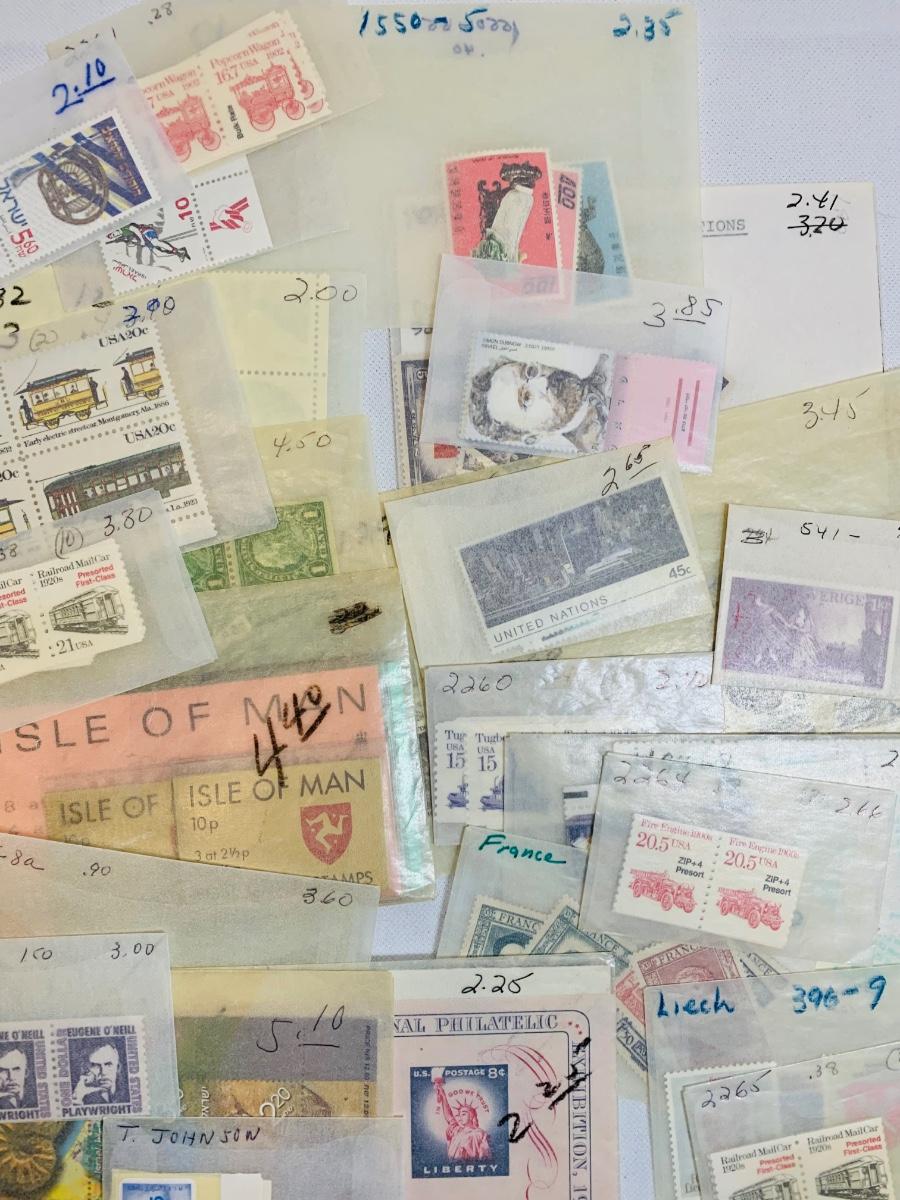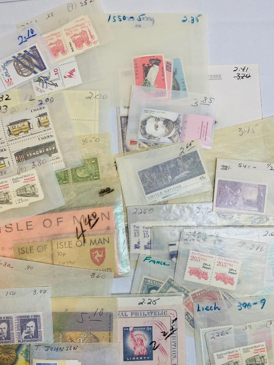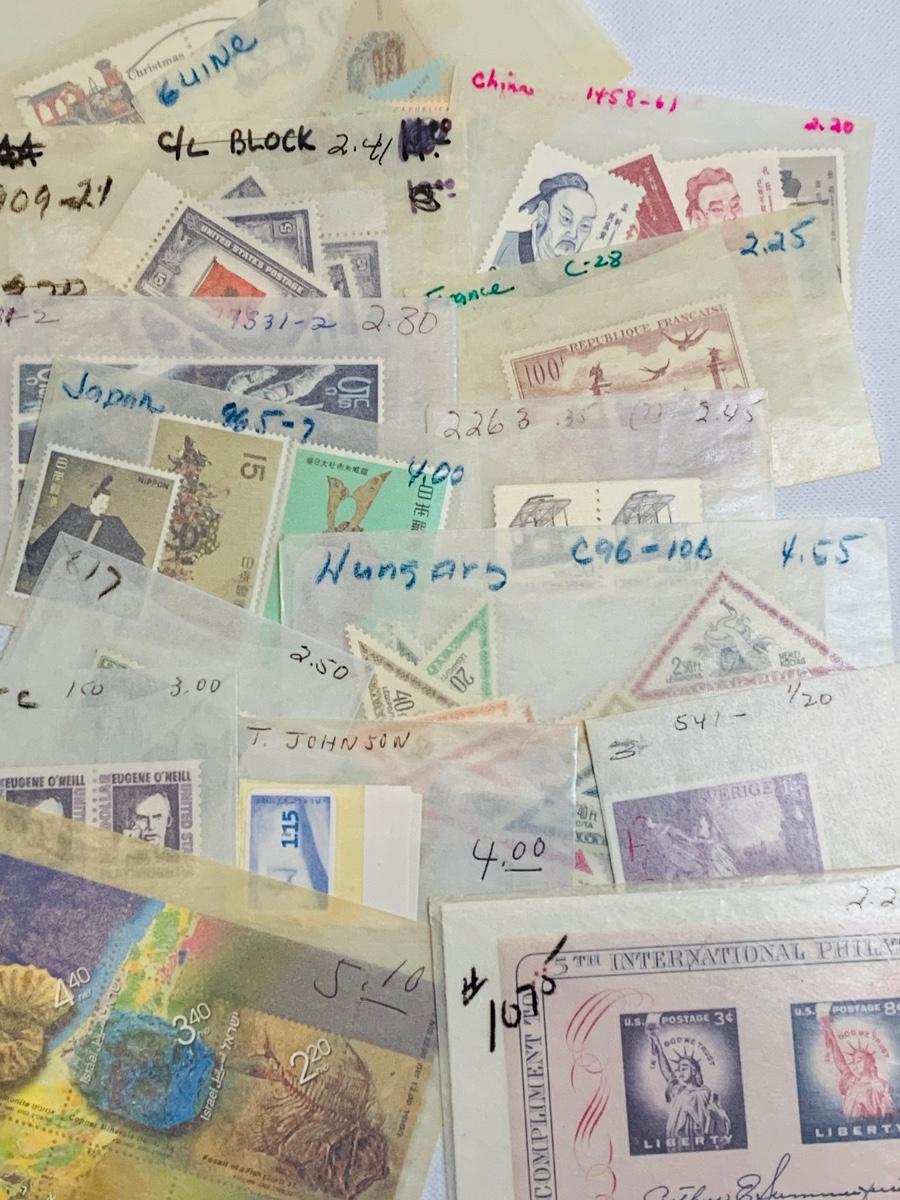 Mixed collection of older & newer stamps with an estimated dollar value noted on each package. This an estimated value & was not researched, there is no way of knowing the true value of the stamps without researching. There is approximately 32 packages in this collection.