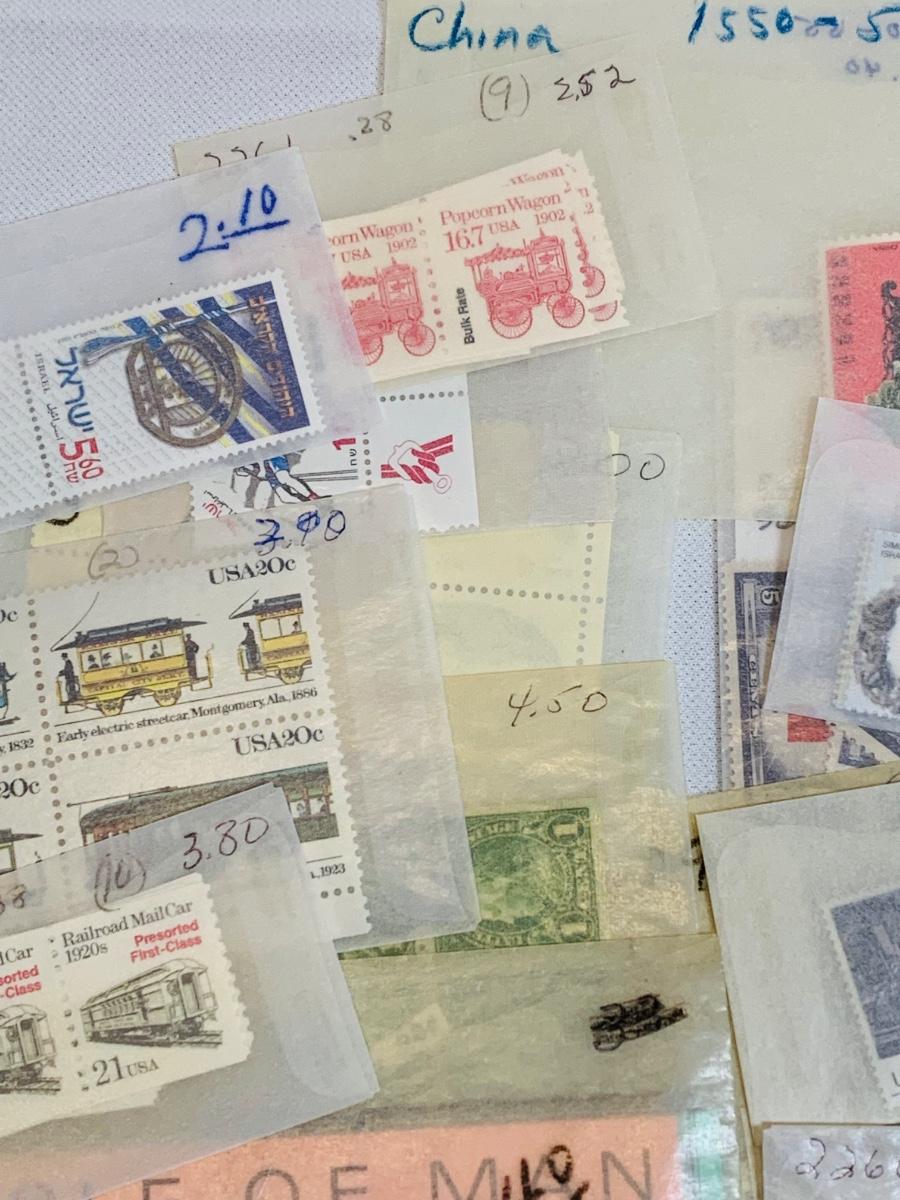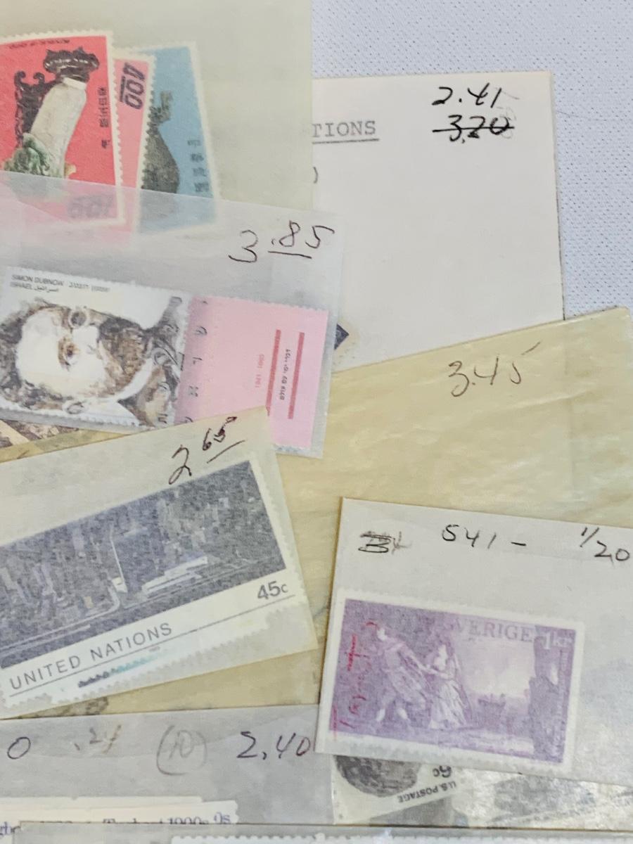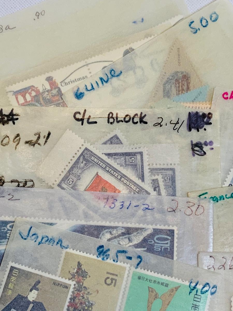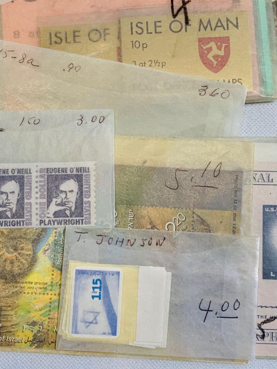 Mixed collection of older & newer stamps with an estimated dollar value noted on each package. This an estimated value & was not researched, there is no way of knowing the true value of the stamps without researching. There is approximately 32 packages in this collection.