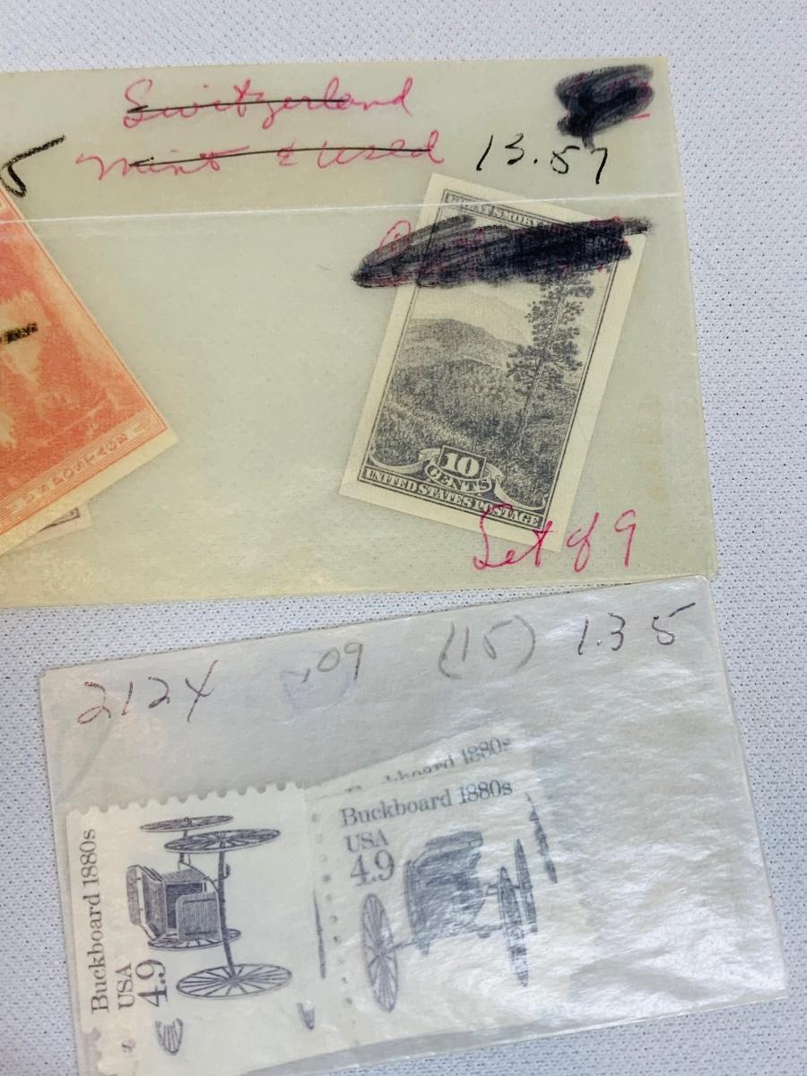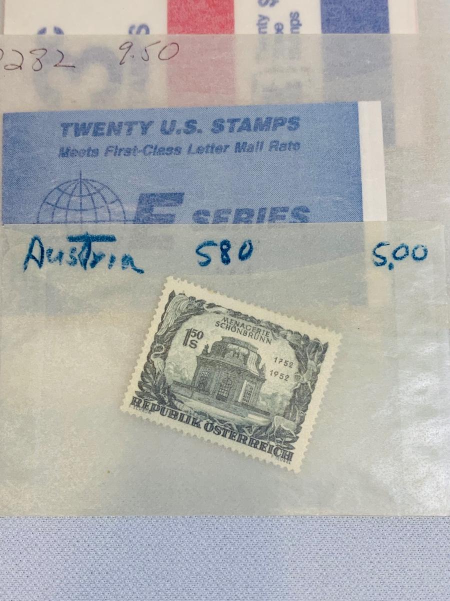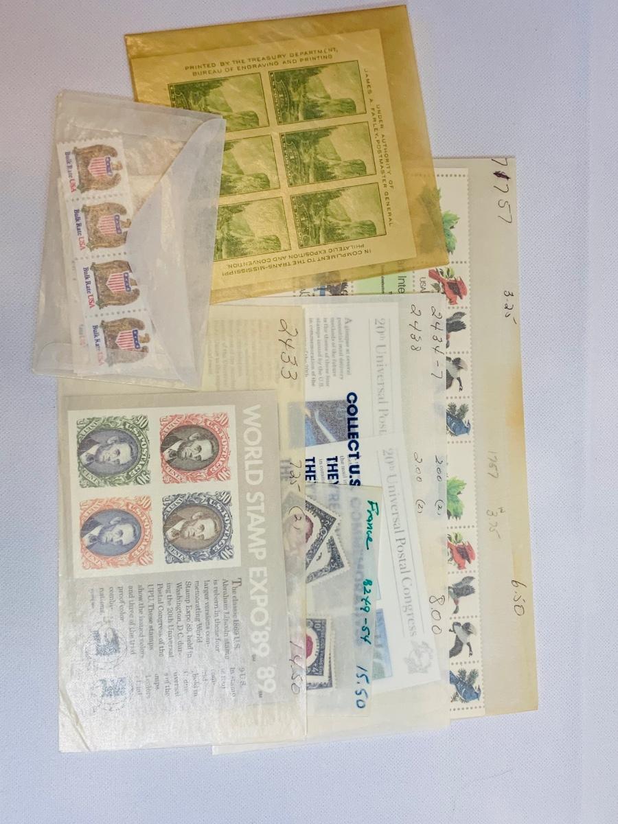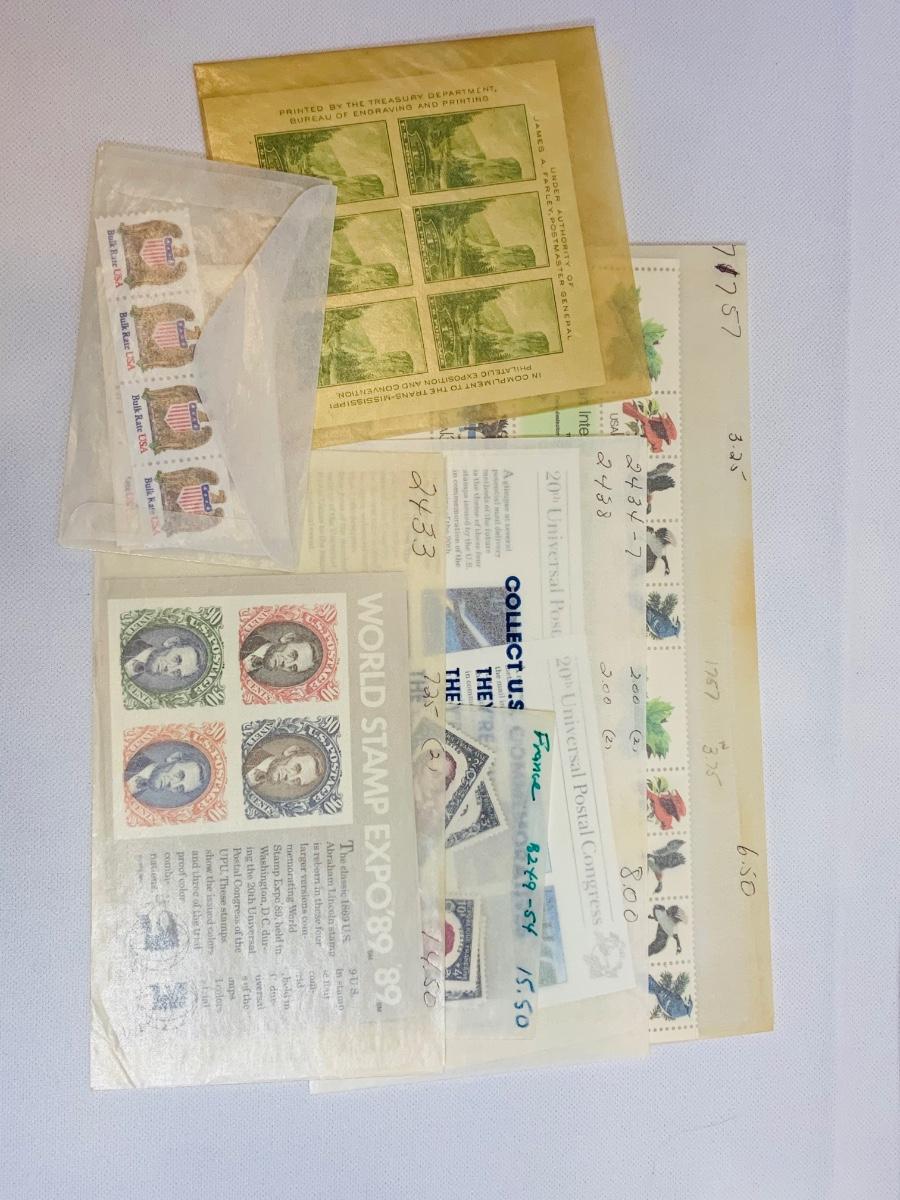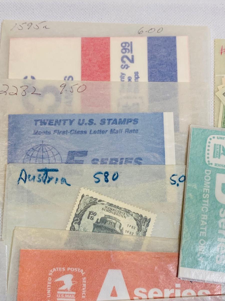 Mixed collection of vintage & newer stamps with an estimated dollar value noted on each package. These are unused, unhinged stamps This an estimated value & was not researched, there is no way of knowing the true value of the stamps without researching.
