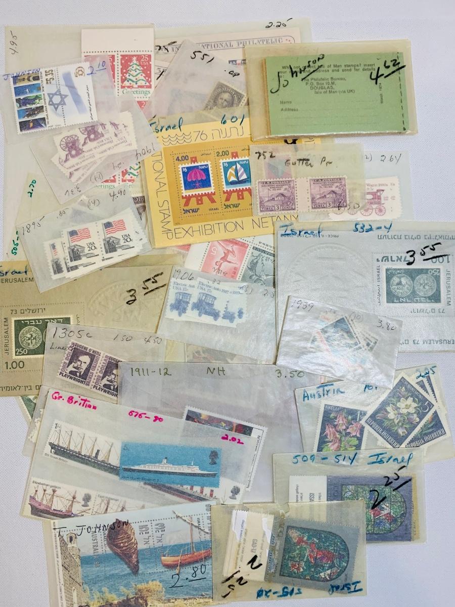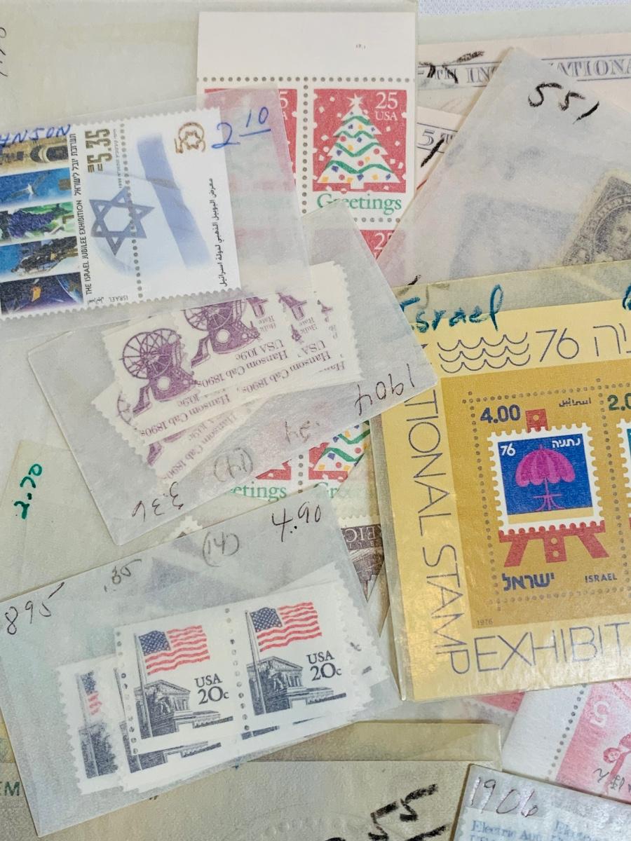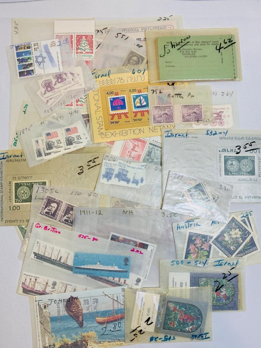 Mixed collection of older & newer stamps with an estimated dollar value noted on each package. This an estimated value & was not researched, there is no way of knowing the true value of the stamps without researching. There is approximately 32 packages in this collection.