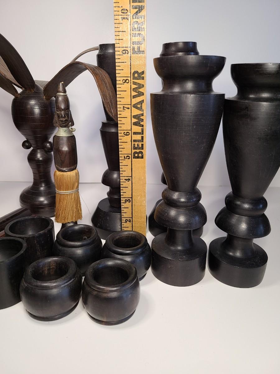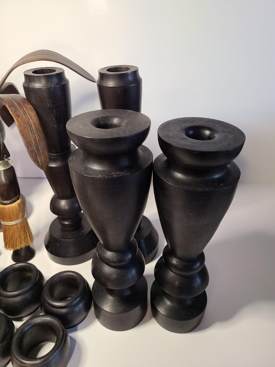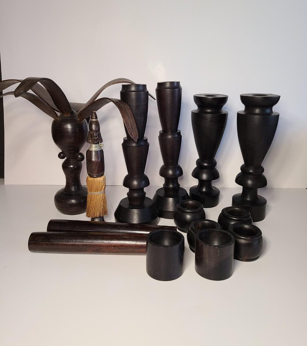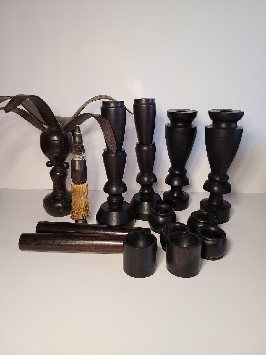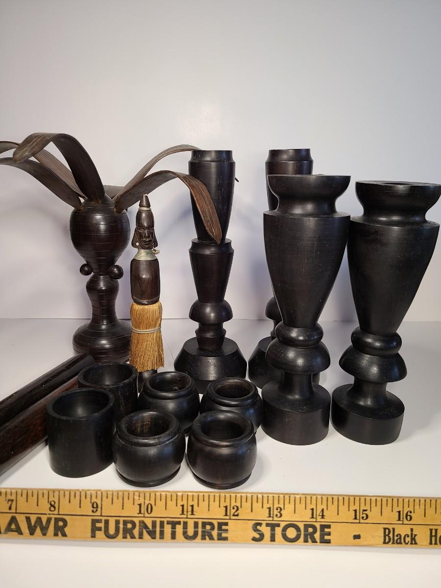 Vintage wooden music sticks, candle holders and more.