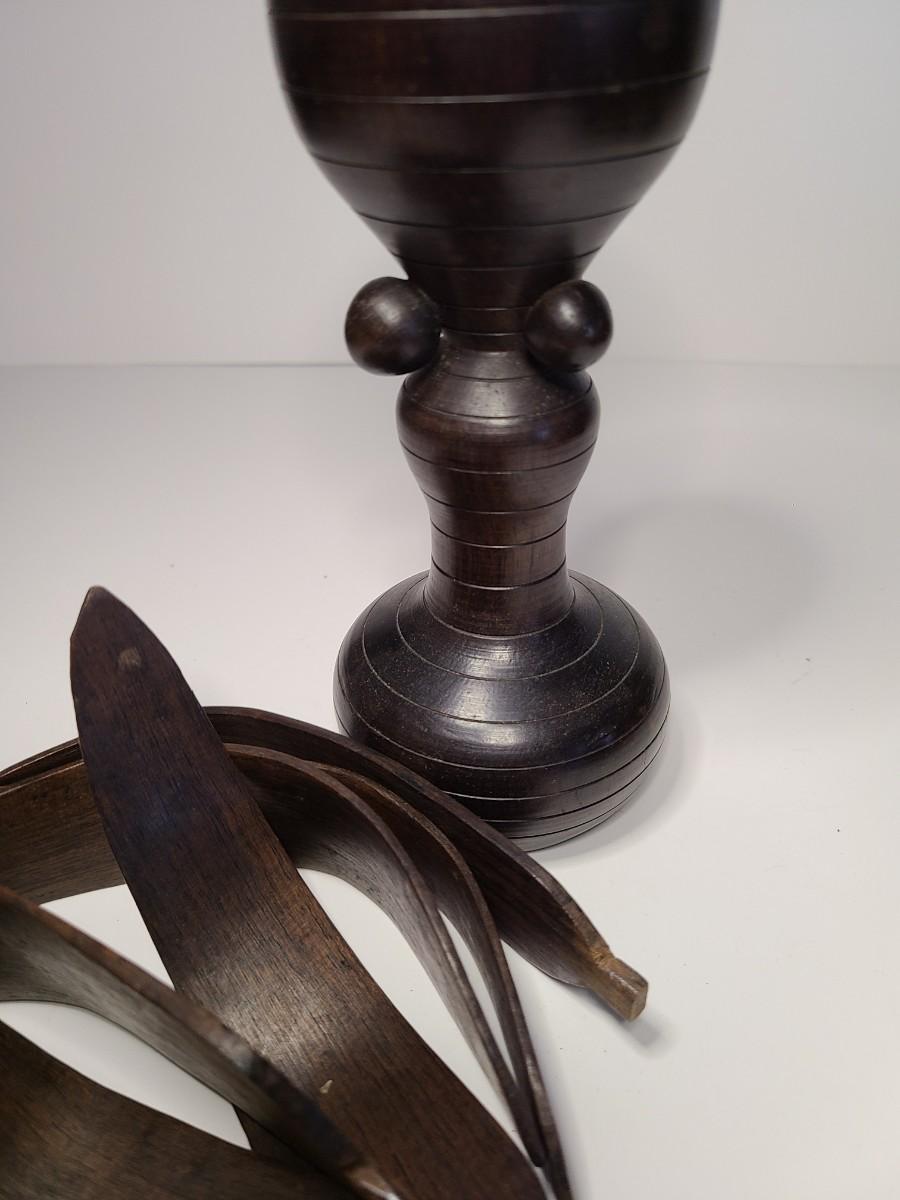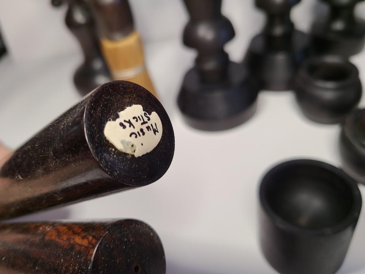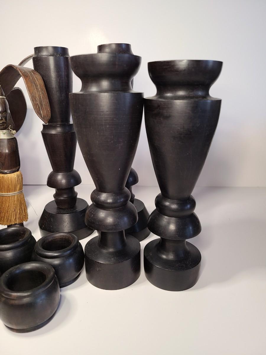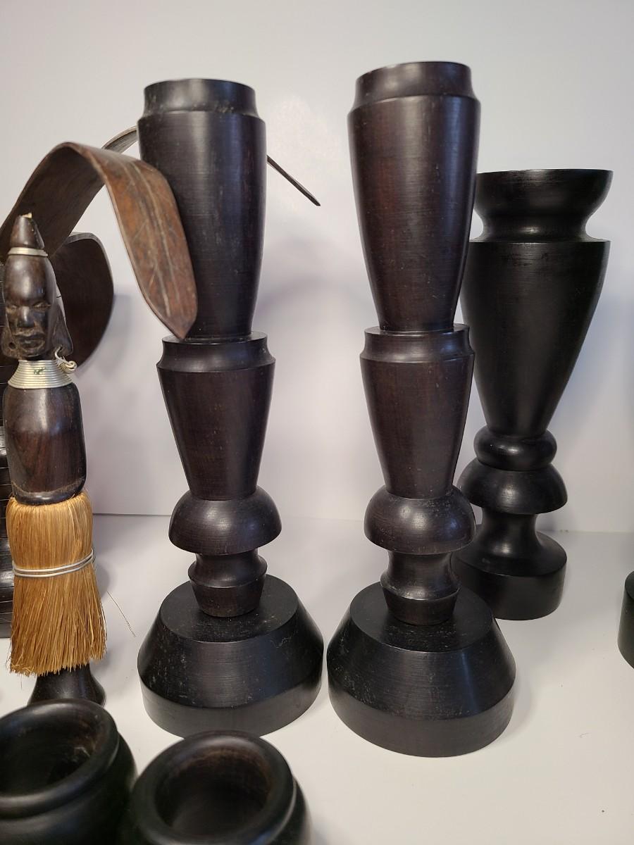 Vintage wooden music sticks, candle holders and more.