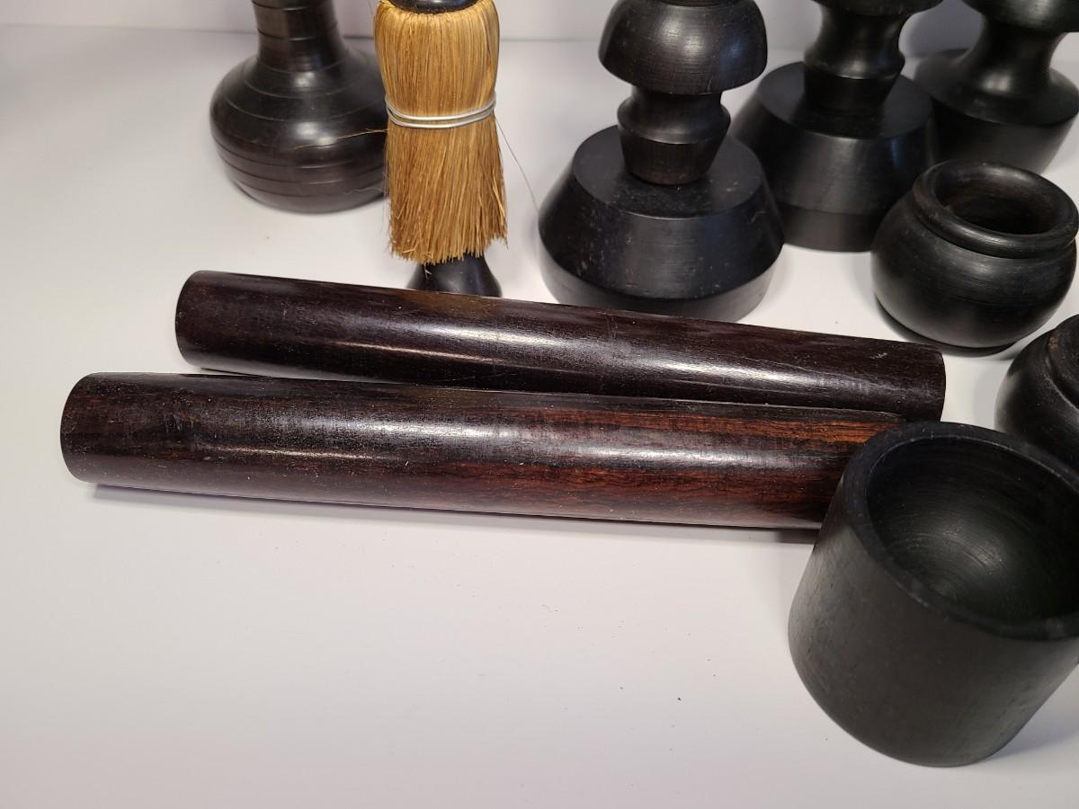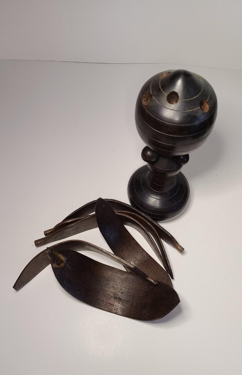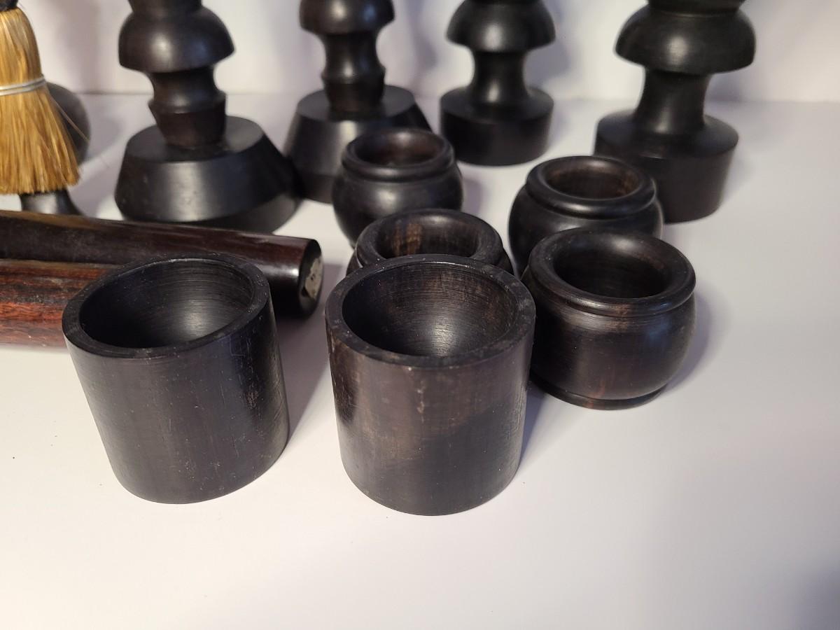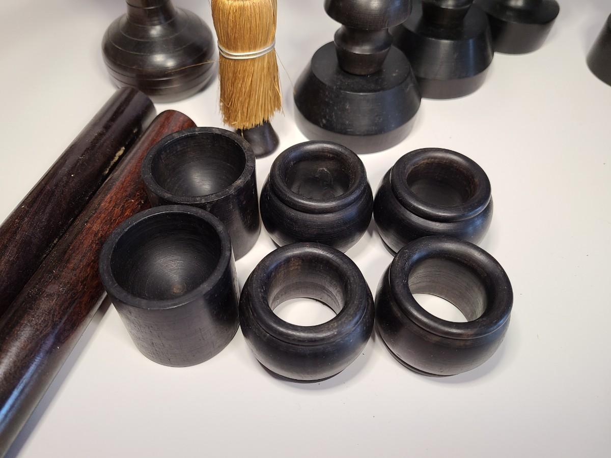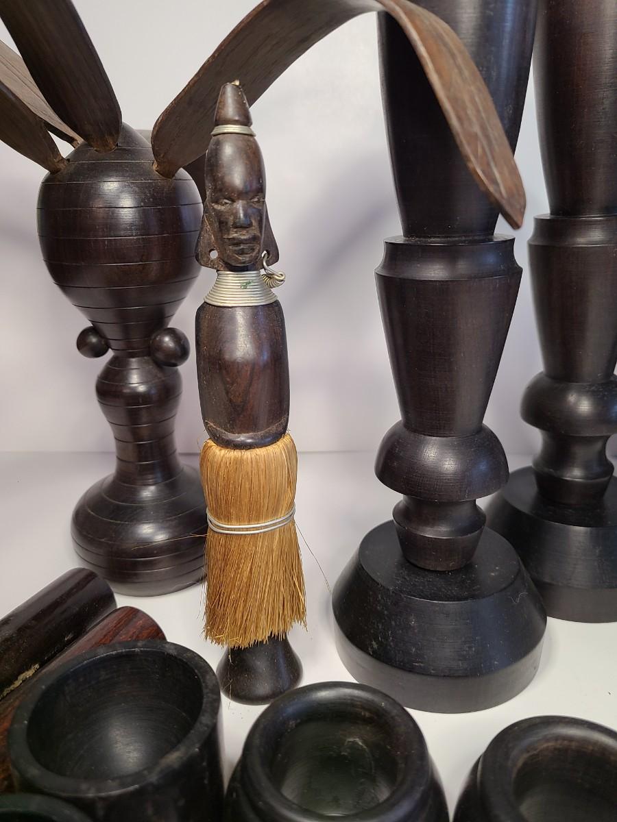 Vintage wooden music sticks, candle holders and more.