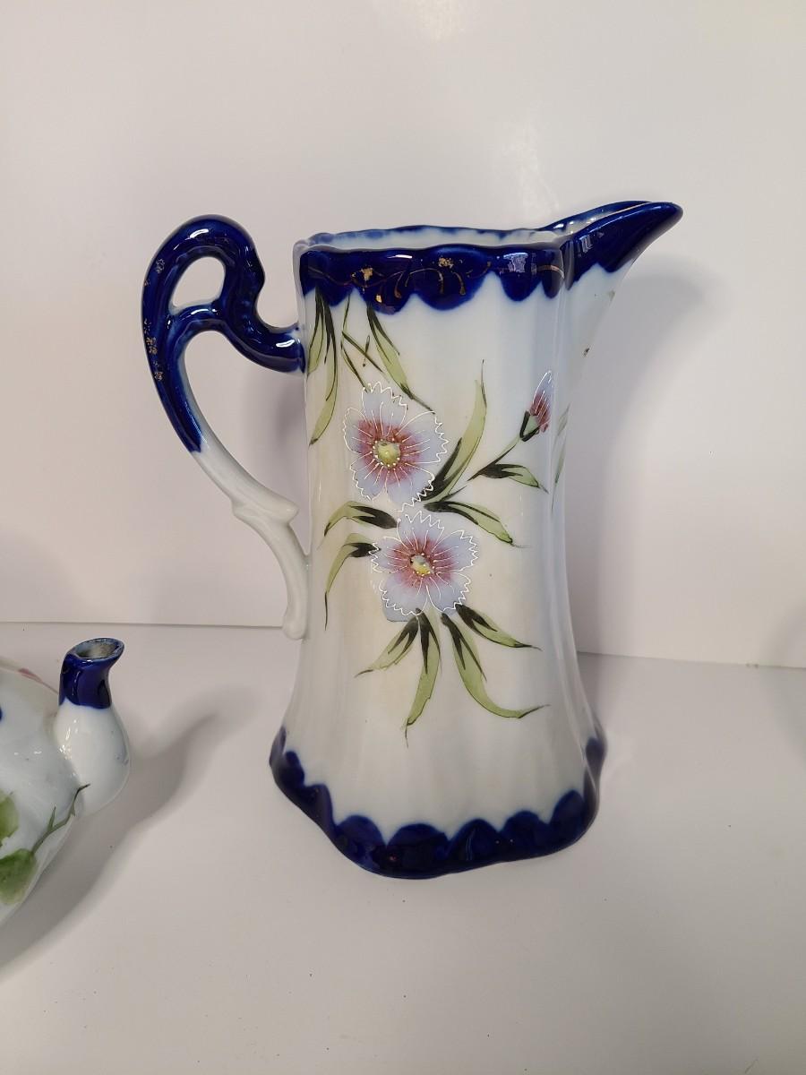 Lovely lot of porcelain pieces. The pitcher is beautiful alone or makes a gorgeous vase! These are pre-owned with minor marks due to age. Could use a light cleaning from storage. Please see all pictures as they are the best representation of the items. The pictures show condition, measurements if taken, and what is included in the lot. Due to the large amount that we photograph and the time frame, we are not always able to take measurements. All items unless noted, are pre-owned and have been used. If you purchased furniture, you must bring help. We do not allow one person to carry large furniture out on their own. Bring help, tools and a truck for the safety of our client’s homes, and your personal safety. Any damages that result to the property including walls, and floors due to moving of the furniture will be charged to the buyer. Company policy. Thank you.