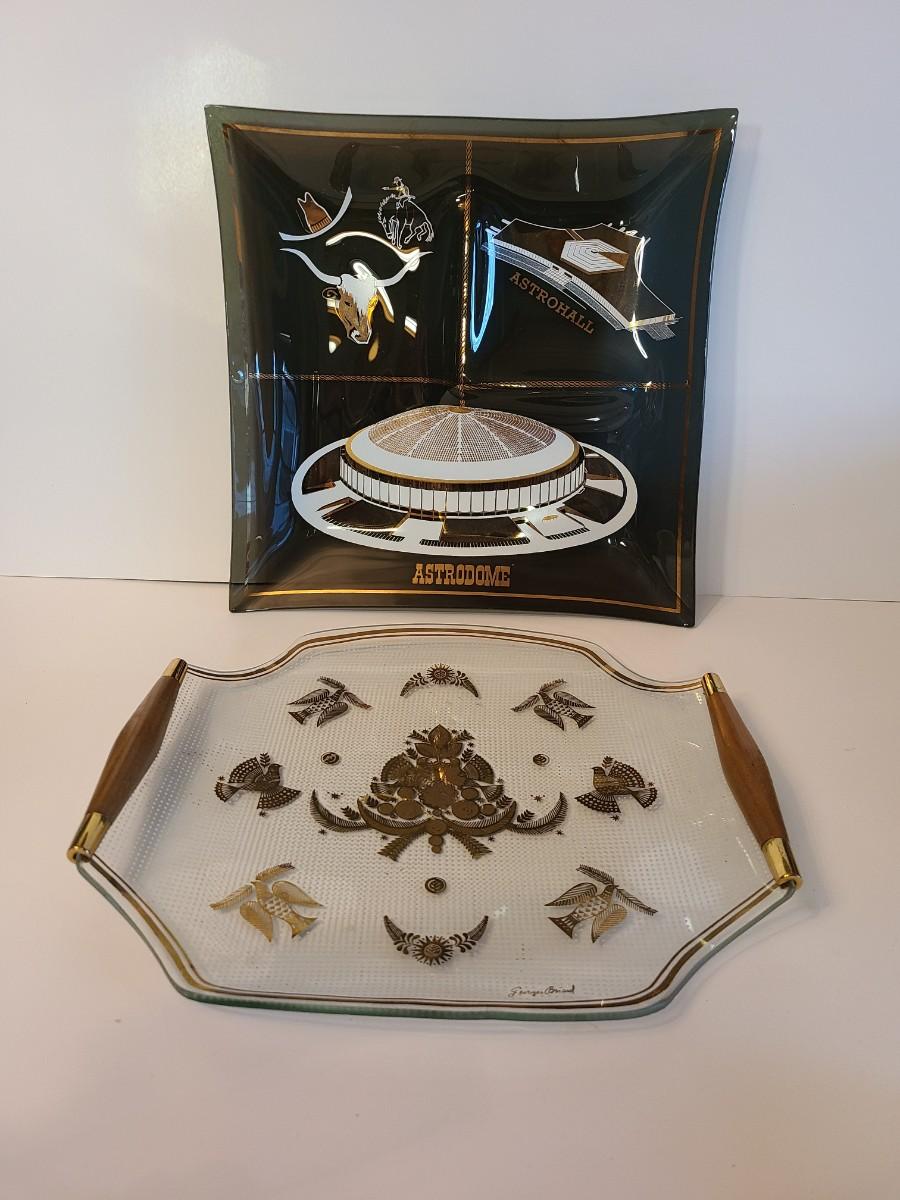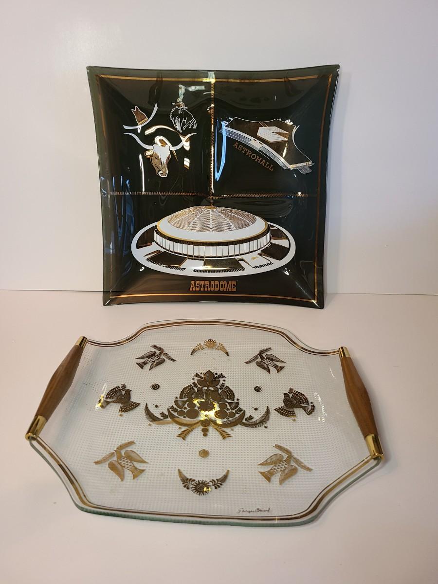 Lot 75: MCM Georges Briard Glass Tray and Vintage Astrodome Snack Tray