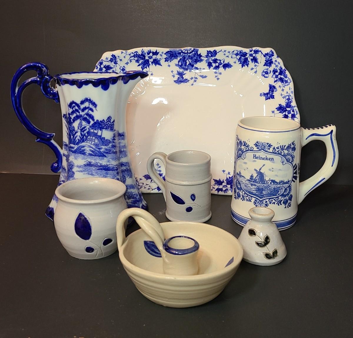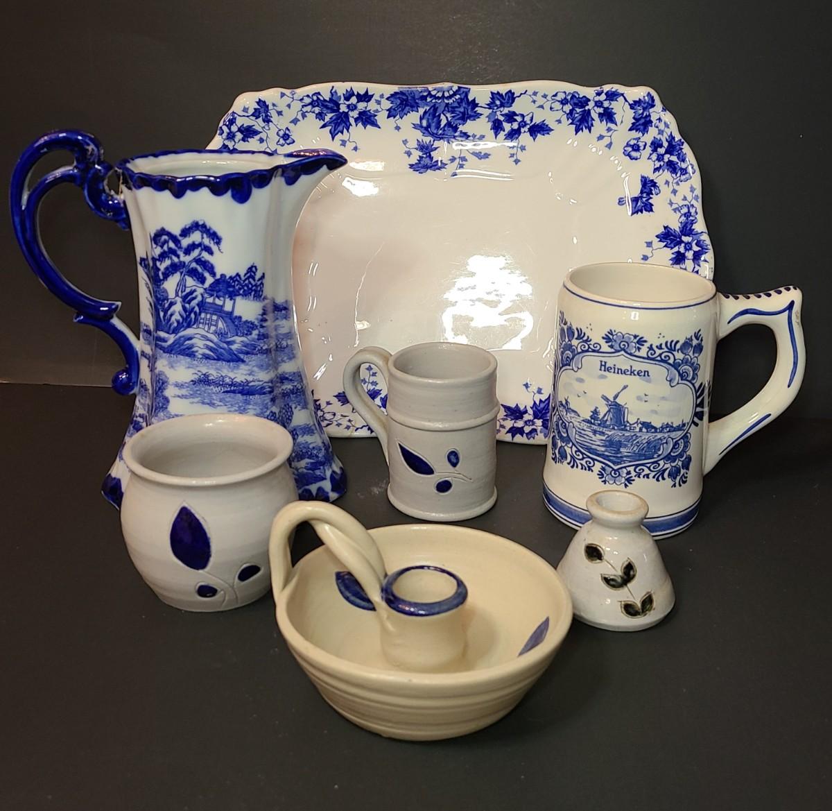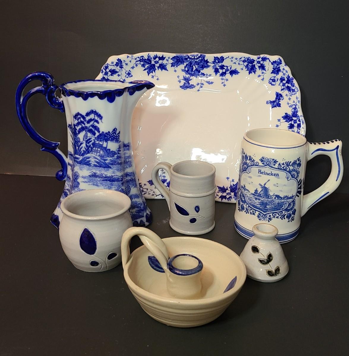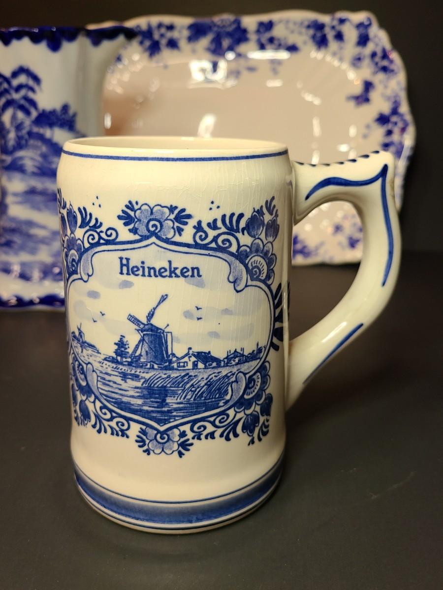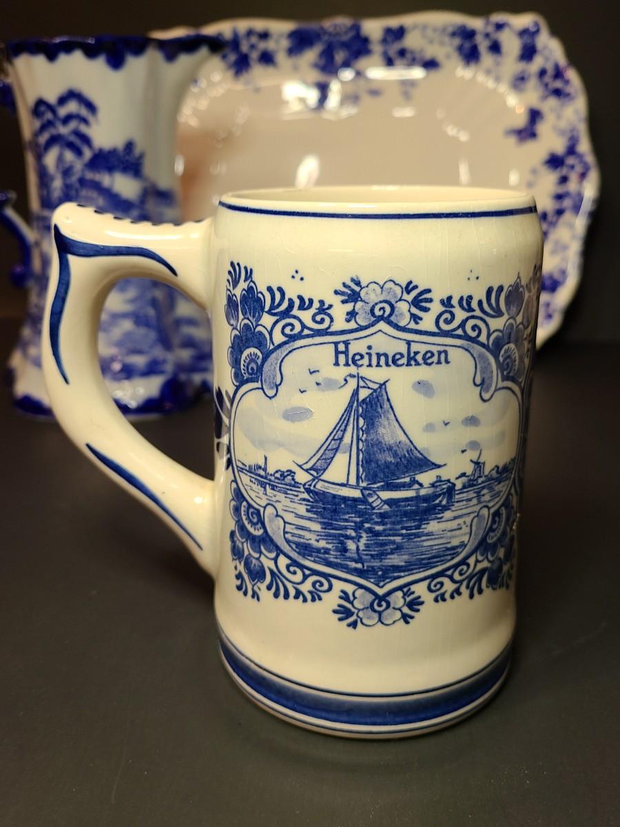 Lot 84: Blue Delft Heineken Mug, Blue Pottery, John Maddocks Royal Vitreous and More