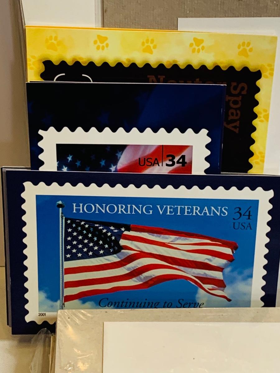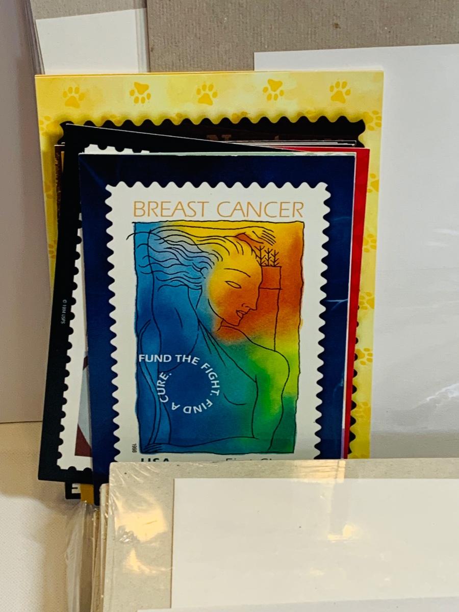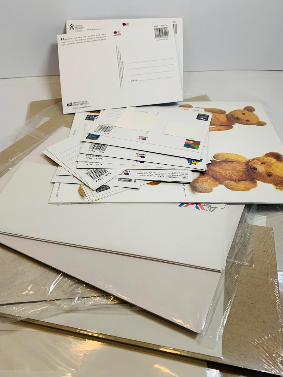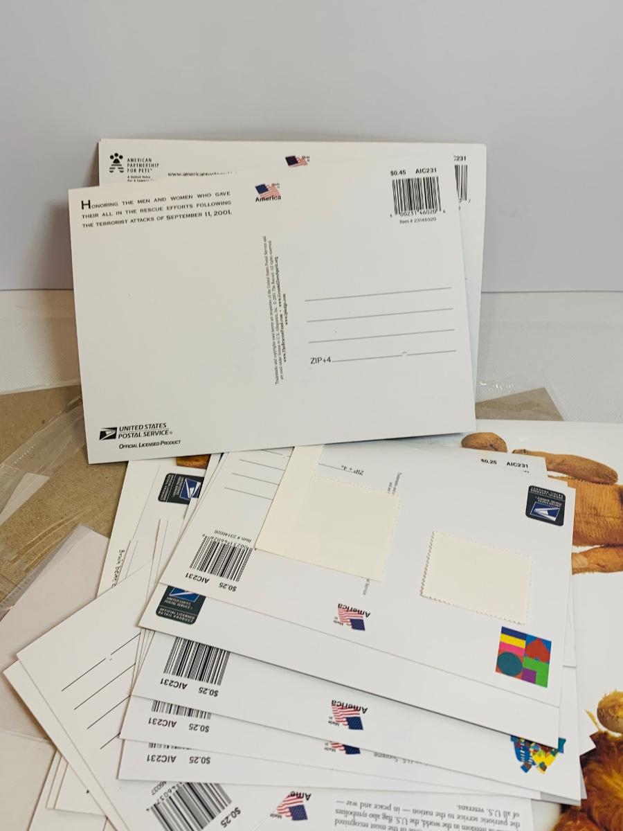 Large collection of pre paid envelopes & postcards including Hero's USA postcard and & stamp.