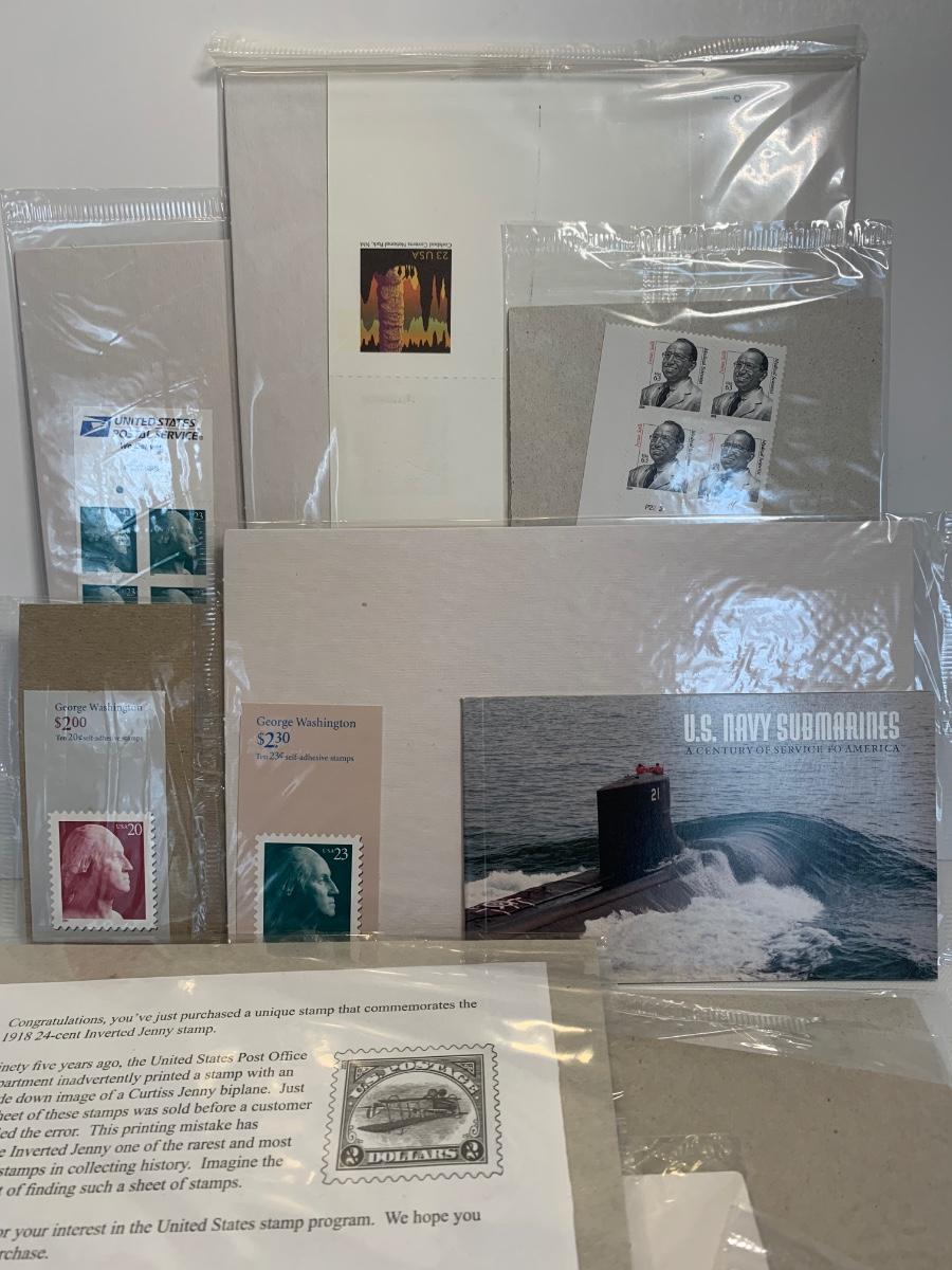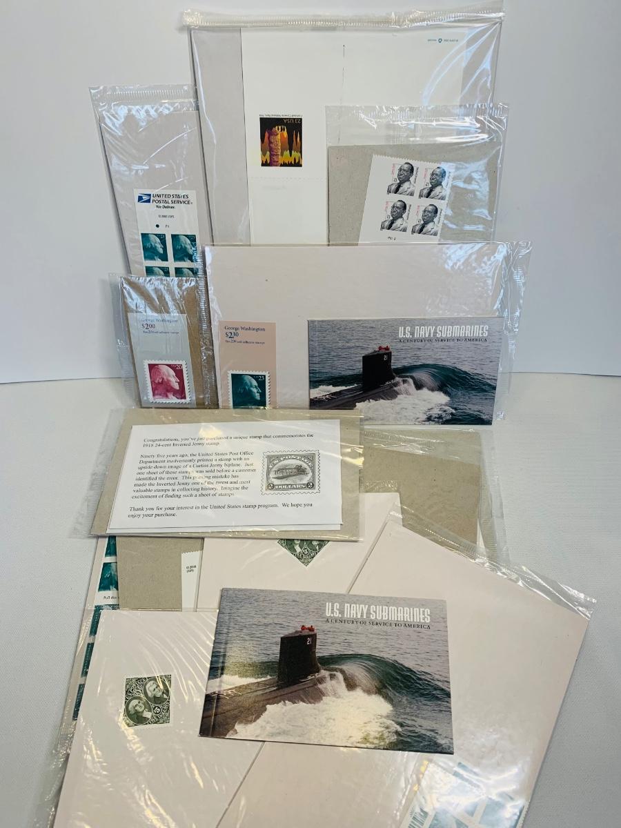 Lot S38R Stamp Collection: US Navy Submarines, Inverted Jenny Jump, George Washington & More