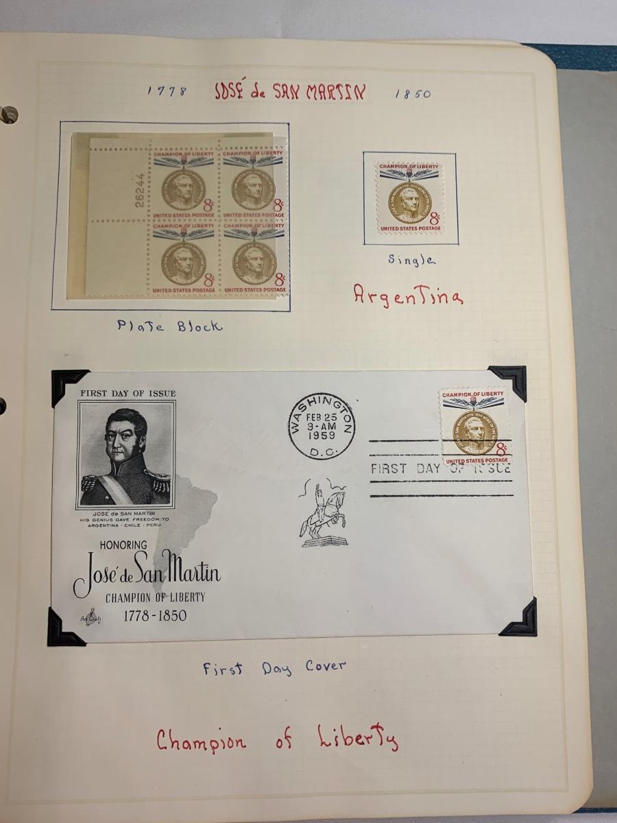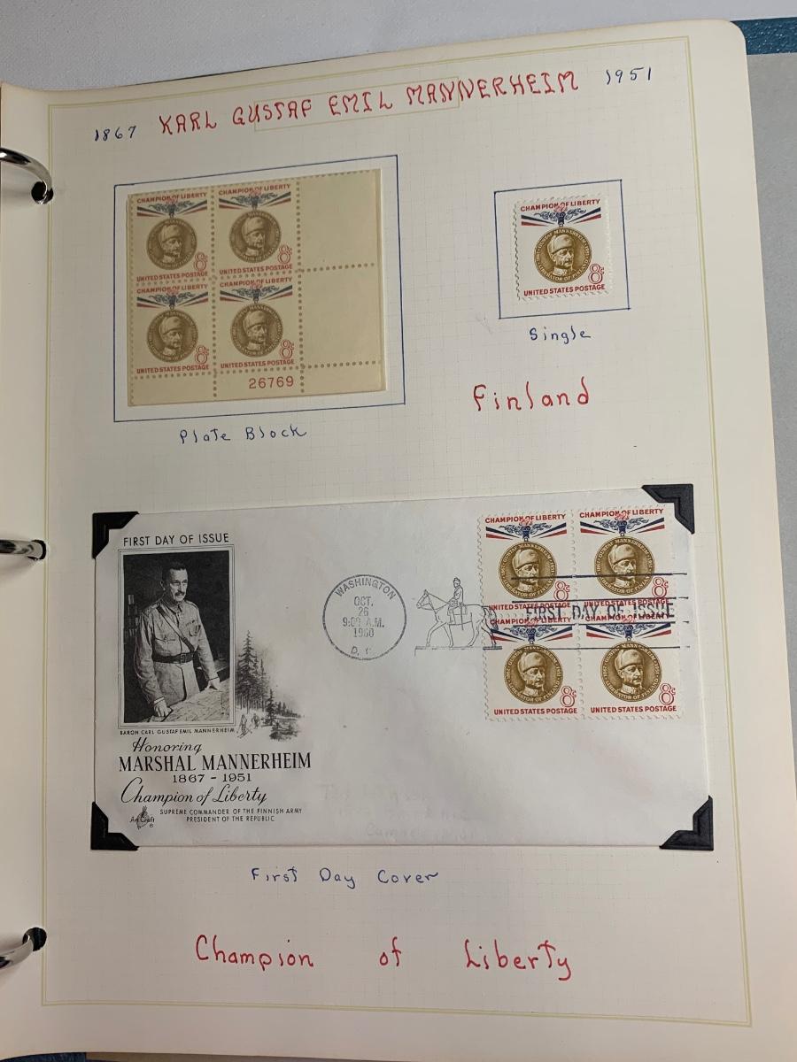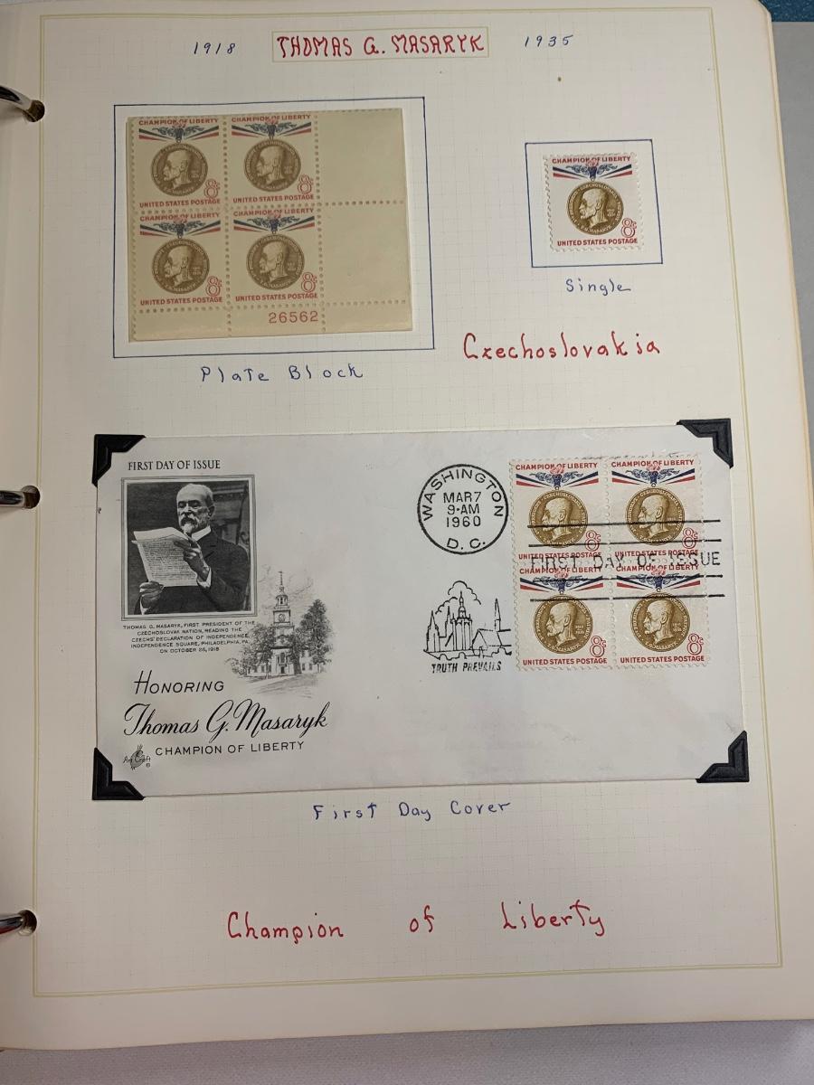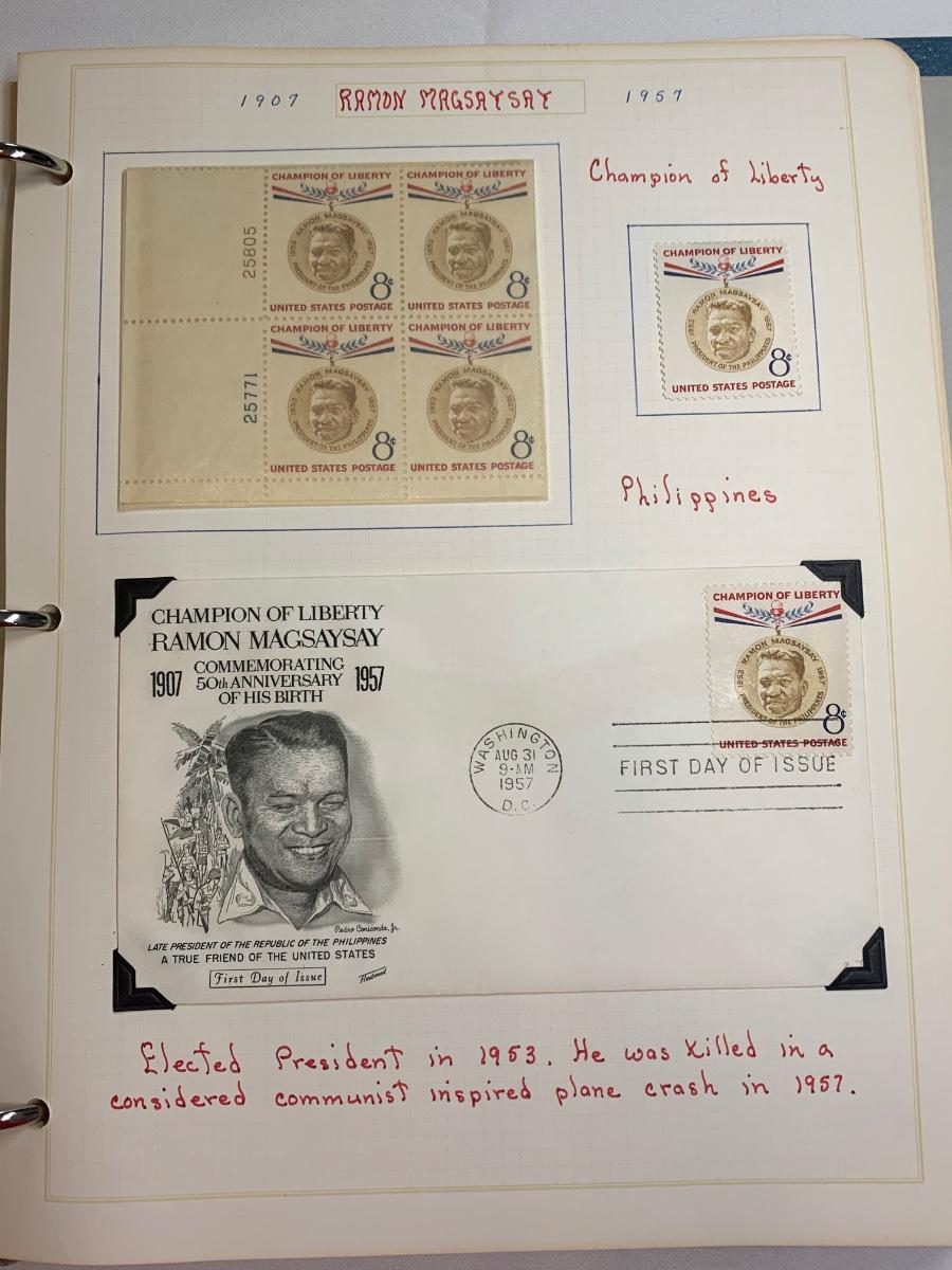 Collection consist of hinged, unhinged, envelopes, plate block, and some with information regarding the stamp