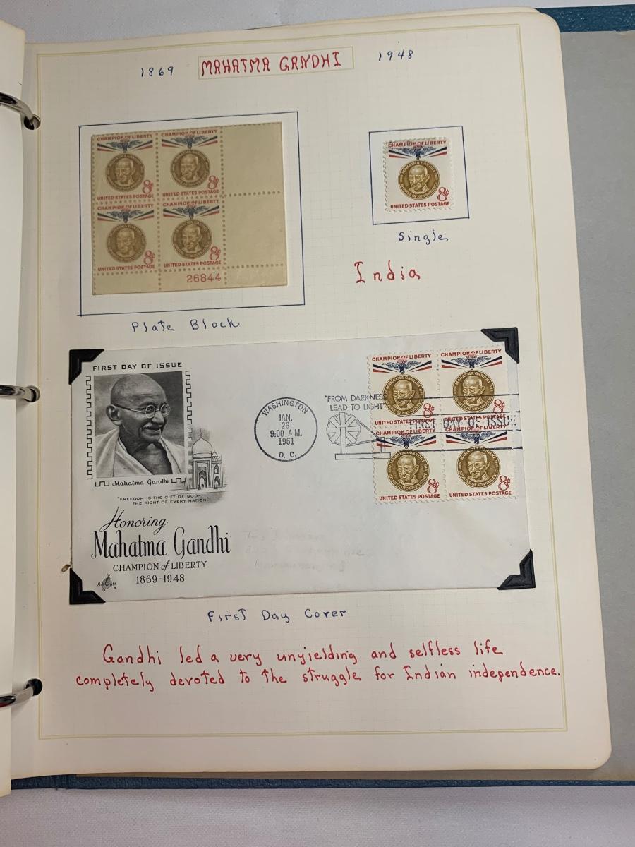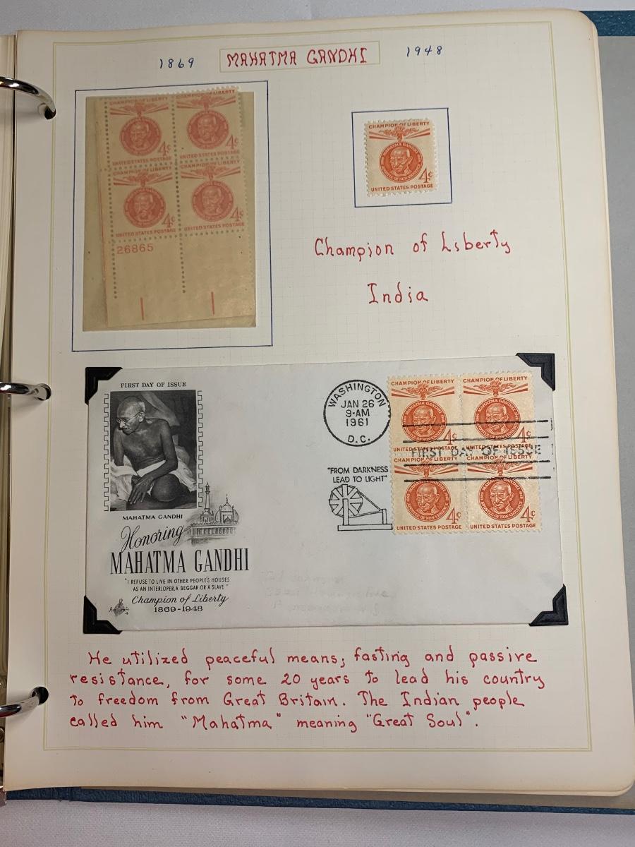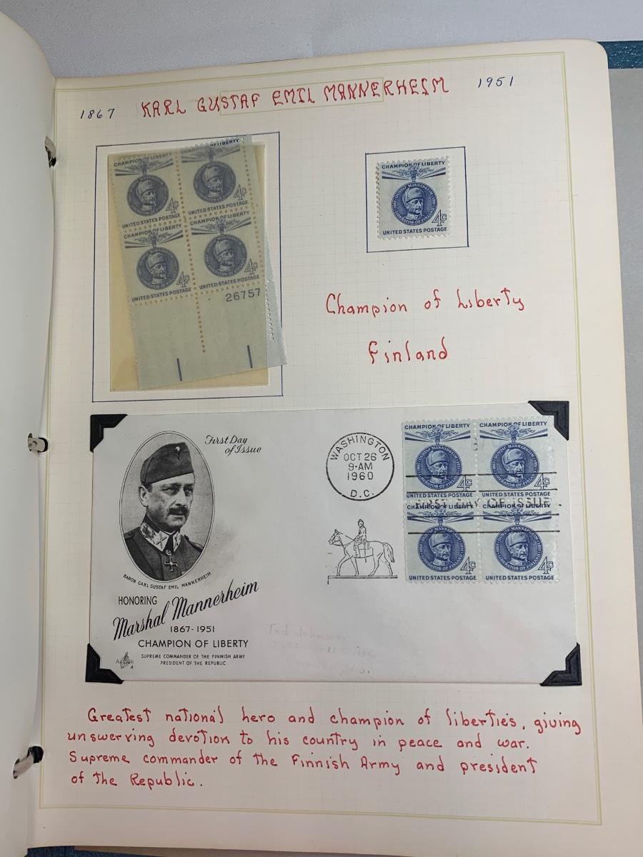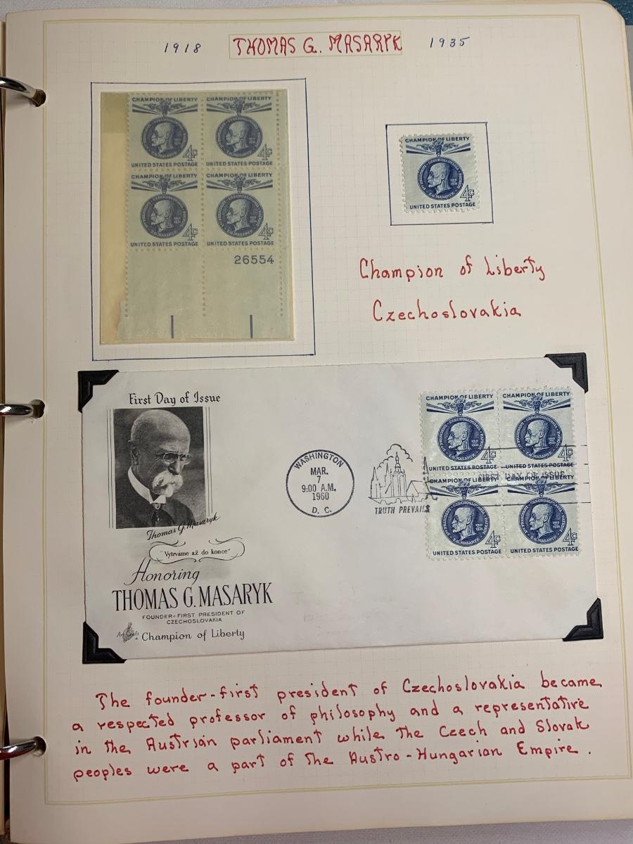 Collection consist of hinged, unhinged, envelopes, plate block, and some with information regarding the stamp