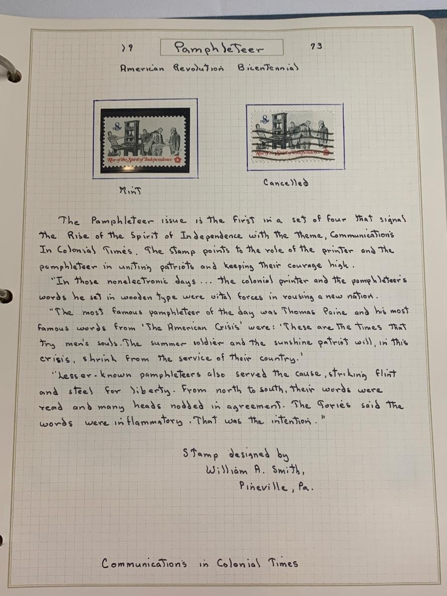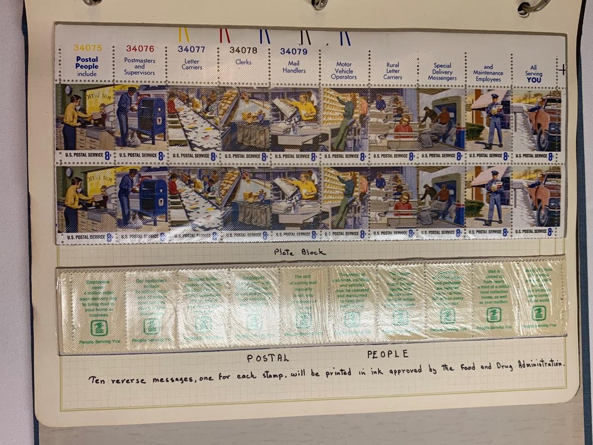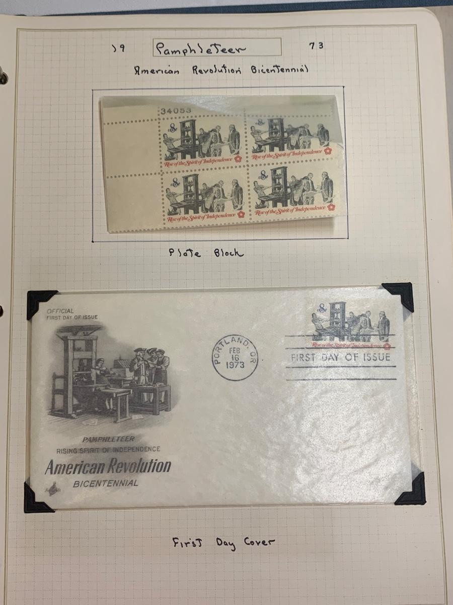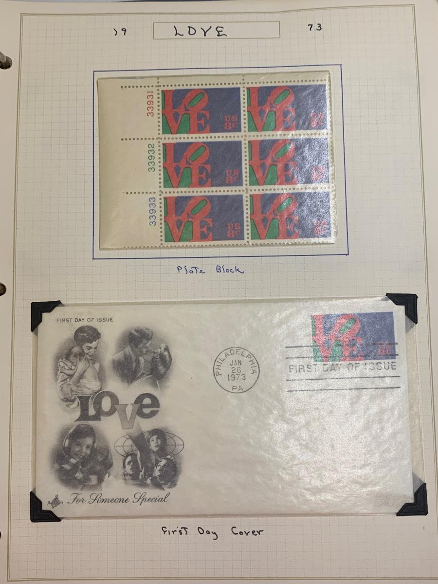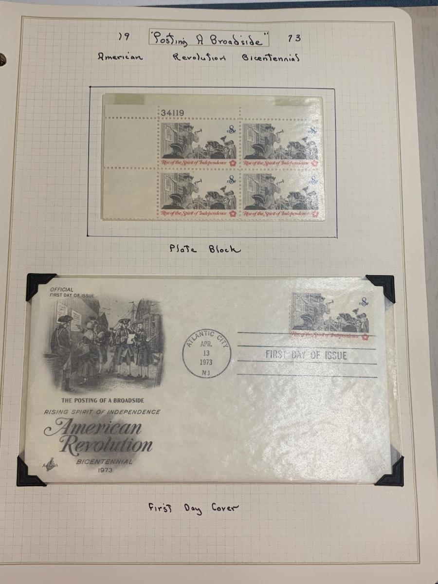 Collection is from 1973-1979 covering first day cover stamps, plate block hinged, unhinged. and is approximately 18 pages. The stamps were not counted. Truly a fascinating collection.