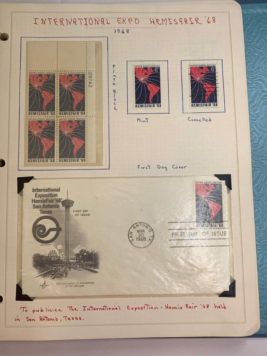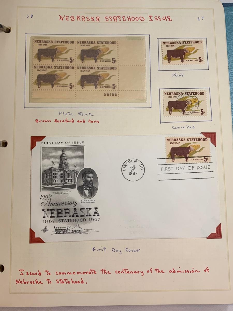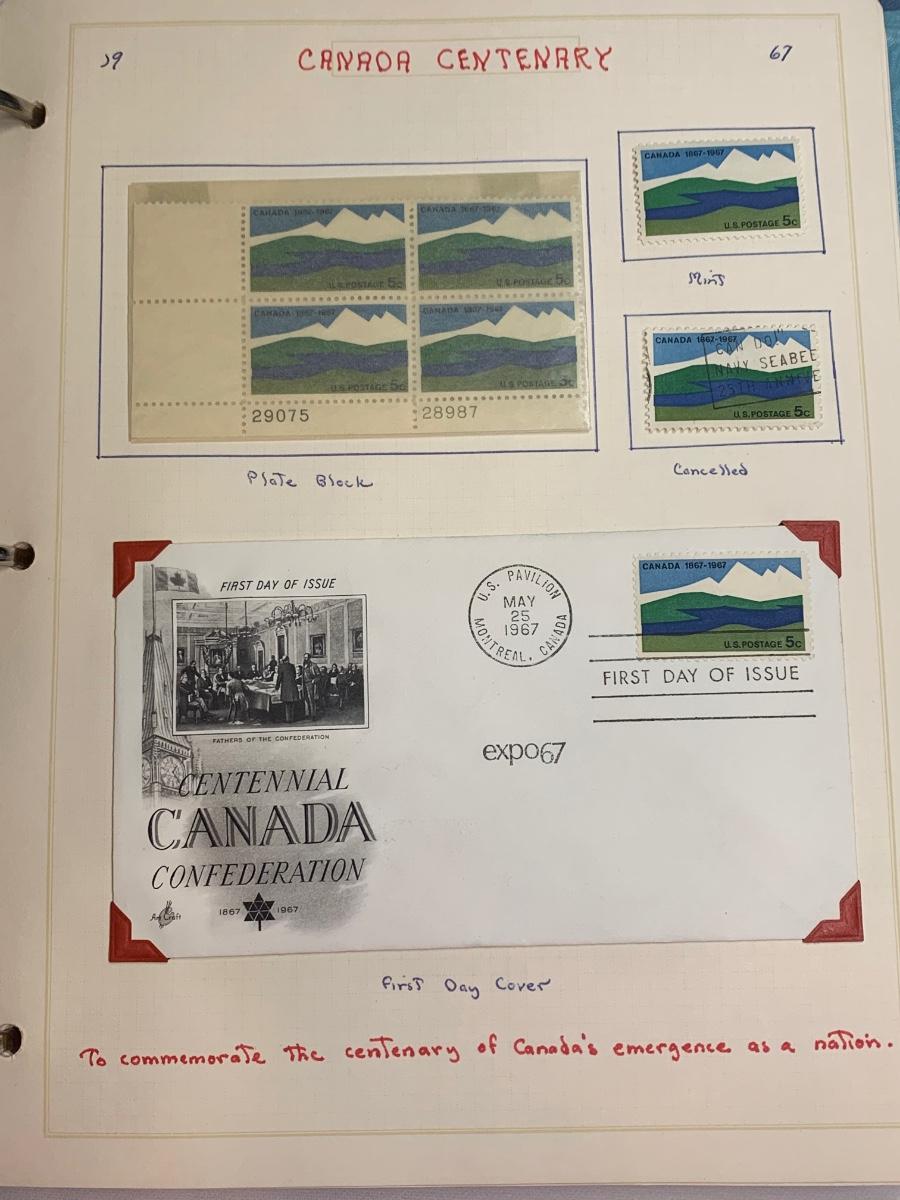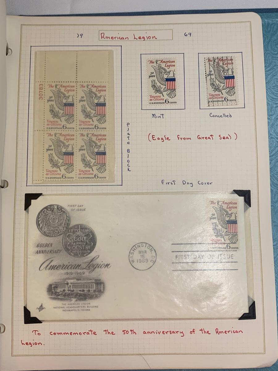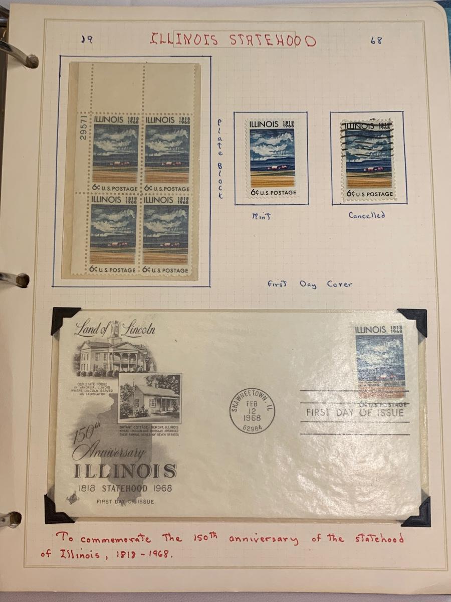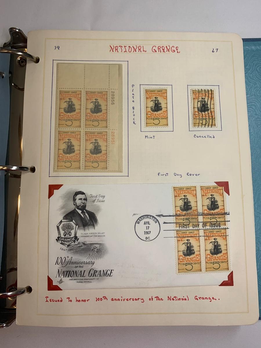 1967, 1968, 1969 in this binder full of collectible stamps with First Day Cover, hinges/unhinged, plate block and more.