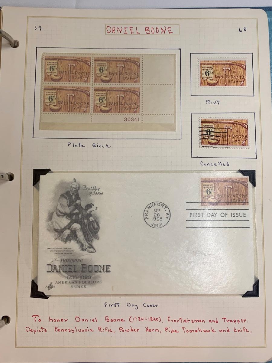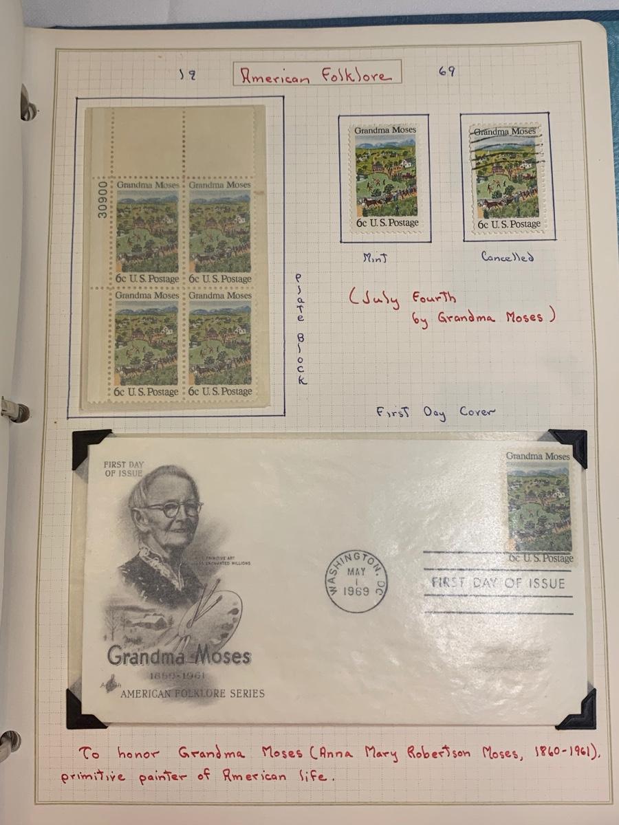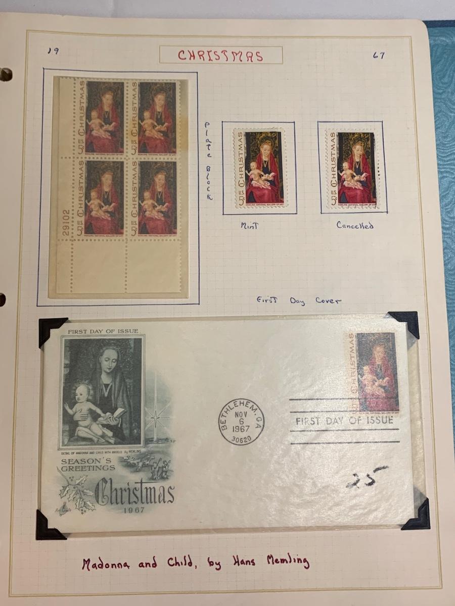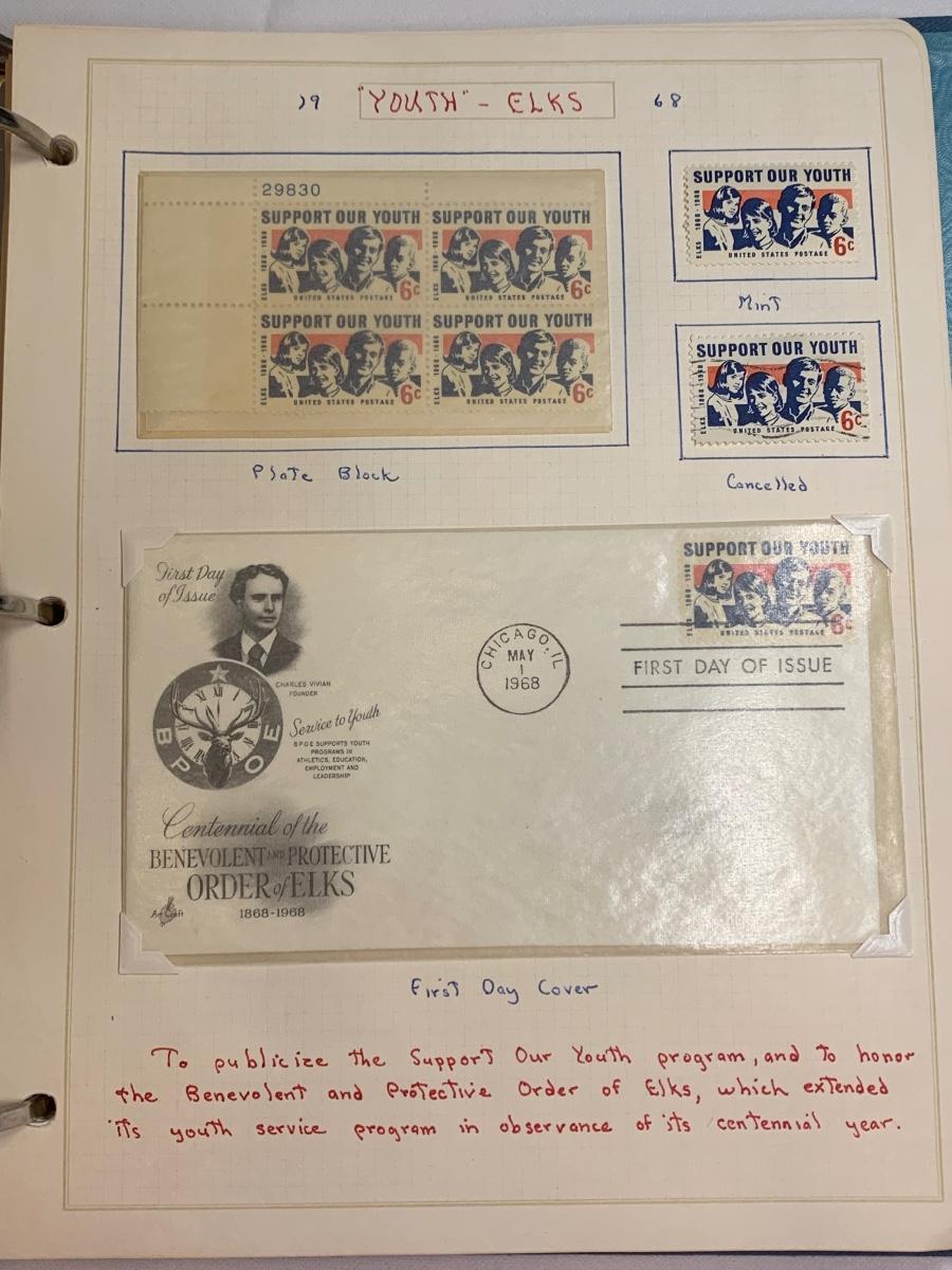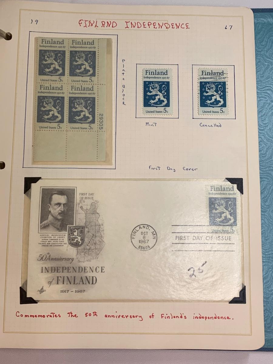 1967, 1968, 1969 in this binder full of collectible stamps with First Day Cover, hinges/unhinged, plate block and more.