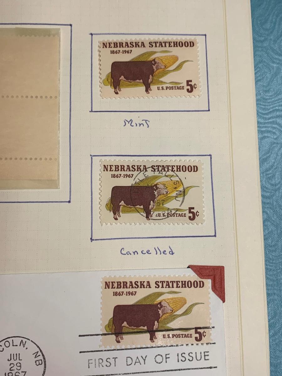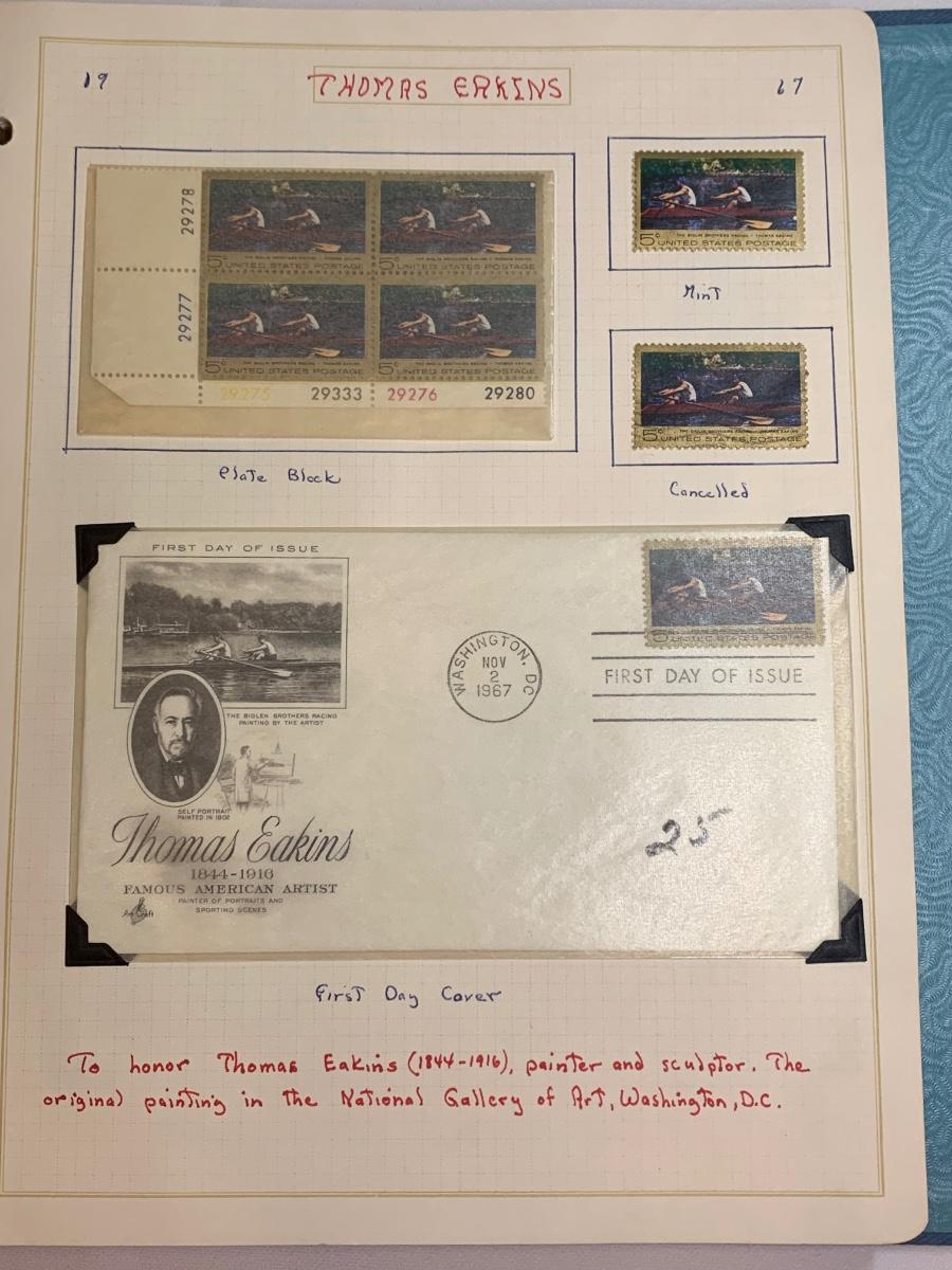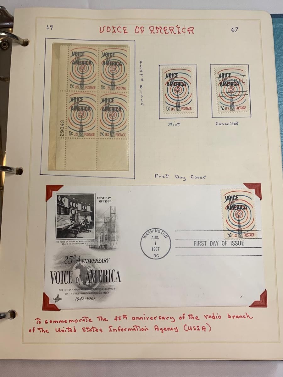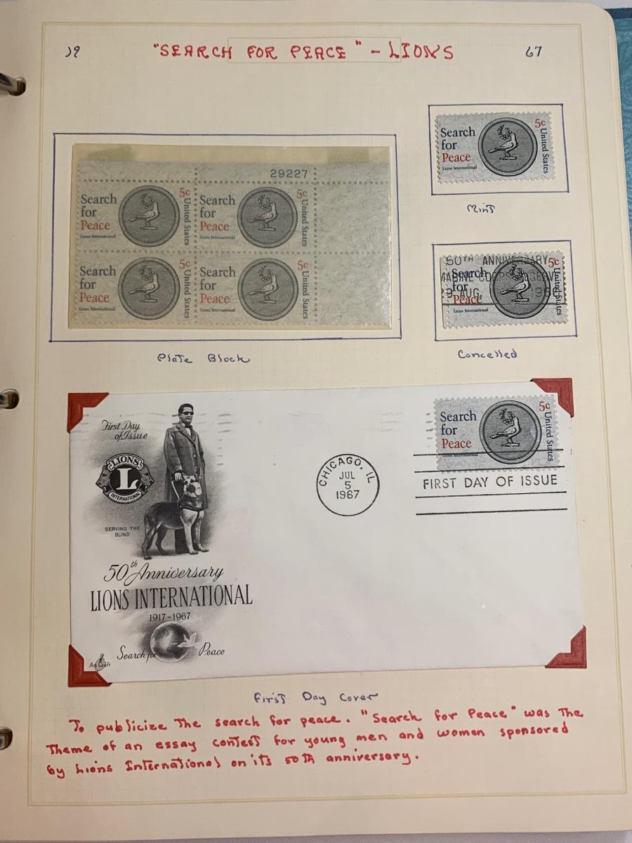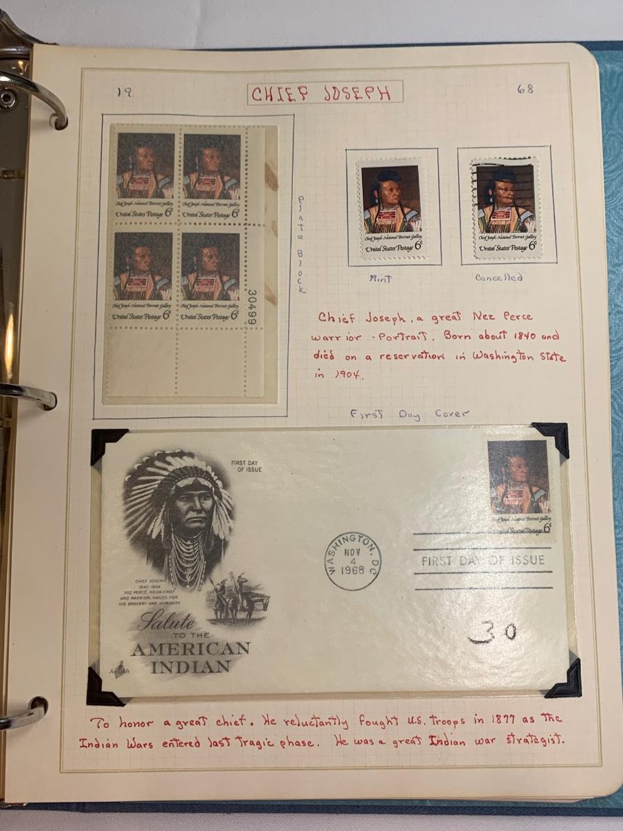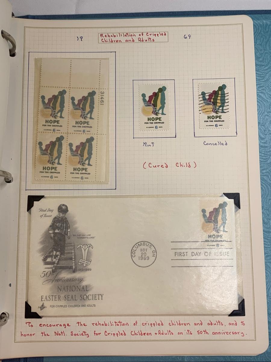 1967, 1968, 1969 in this binder full of collectible stamps with First Day Cover, hinges/unhinged, plate block and more.