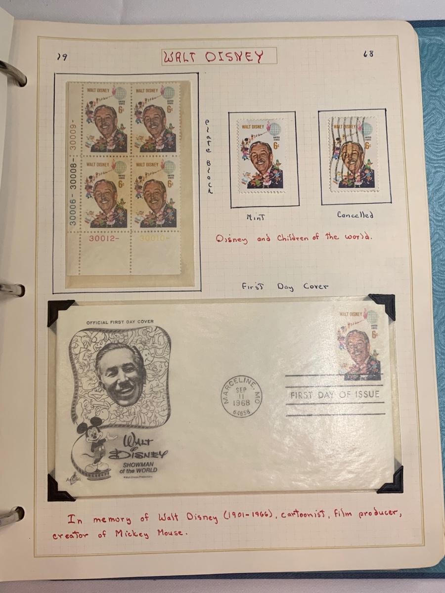Lot S10R: Collectible Stamps w/Binder: Walt Disney, Inter Colligate Football & More