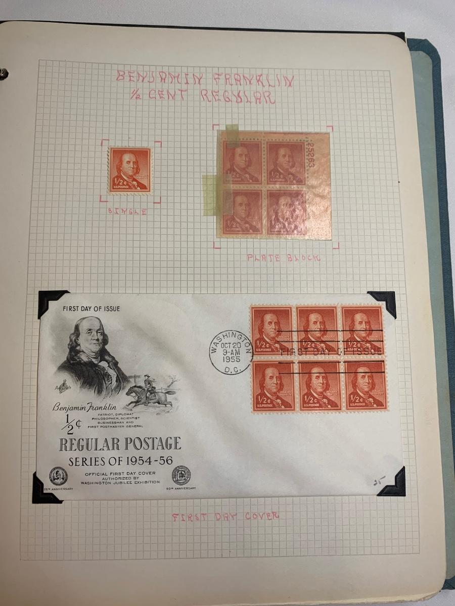 Lot S13R: Collection of Vintage Stamps in Binder: Ben Franklin 1/2 Cent Stamp