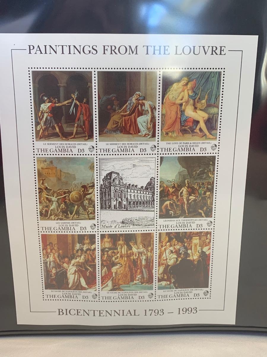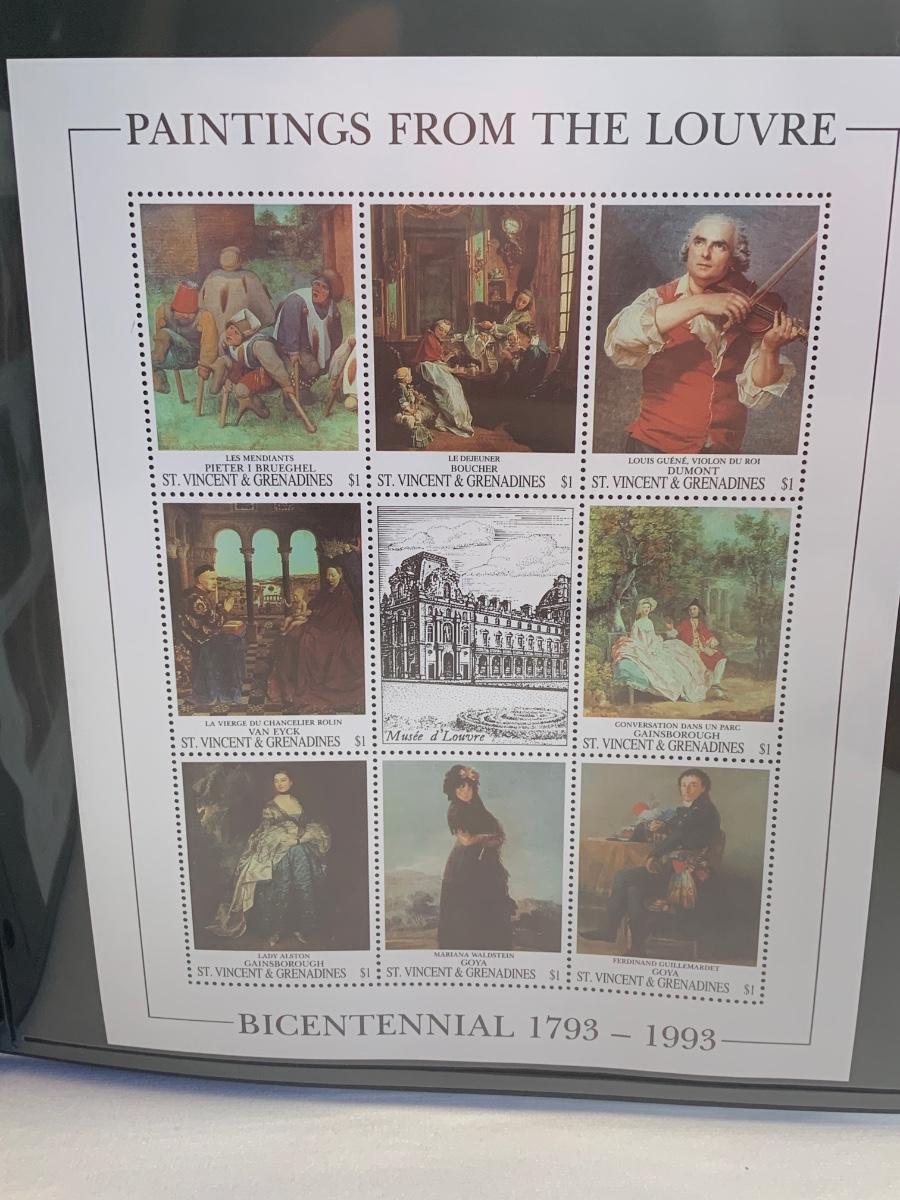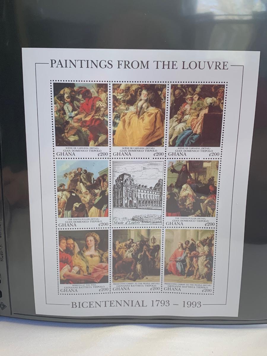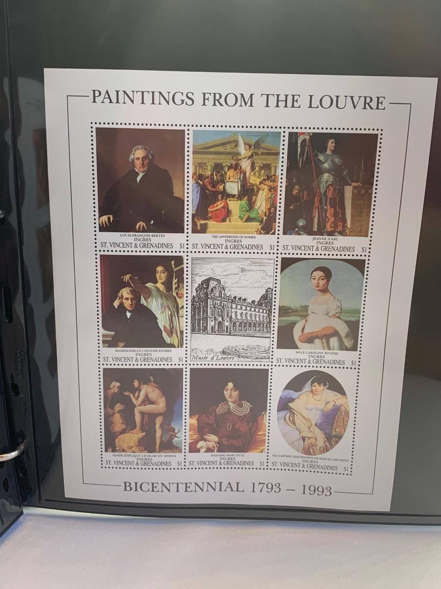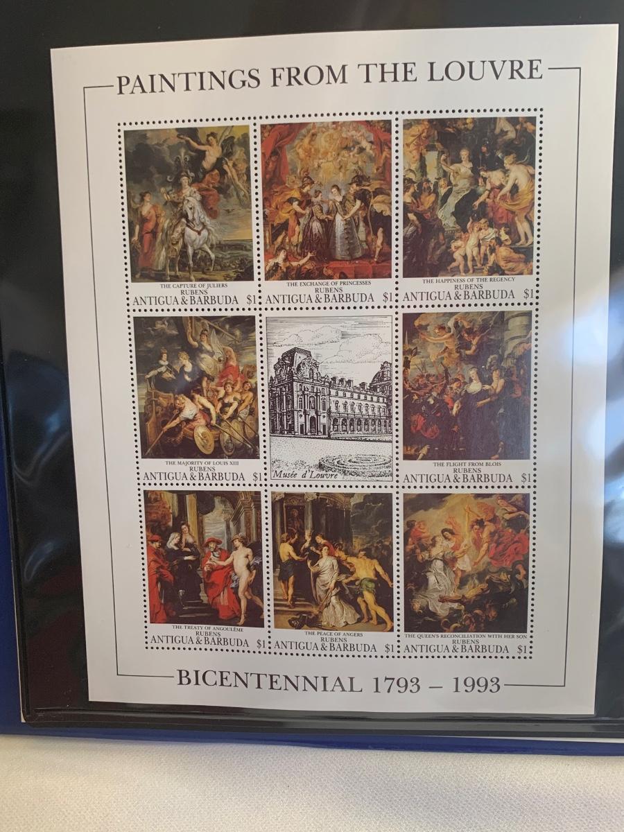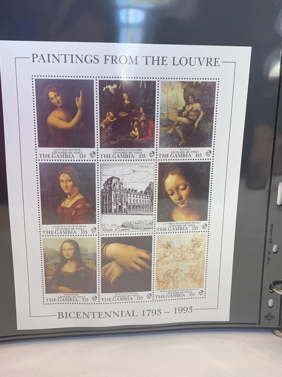 Beautiful collection of stamps honoring the Louvre Museum's Bicentenary in a binder. This collection include hinged and unhinged stamps.