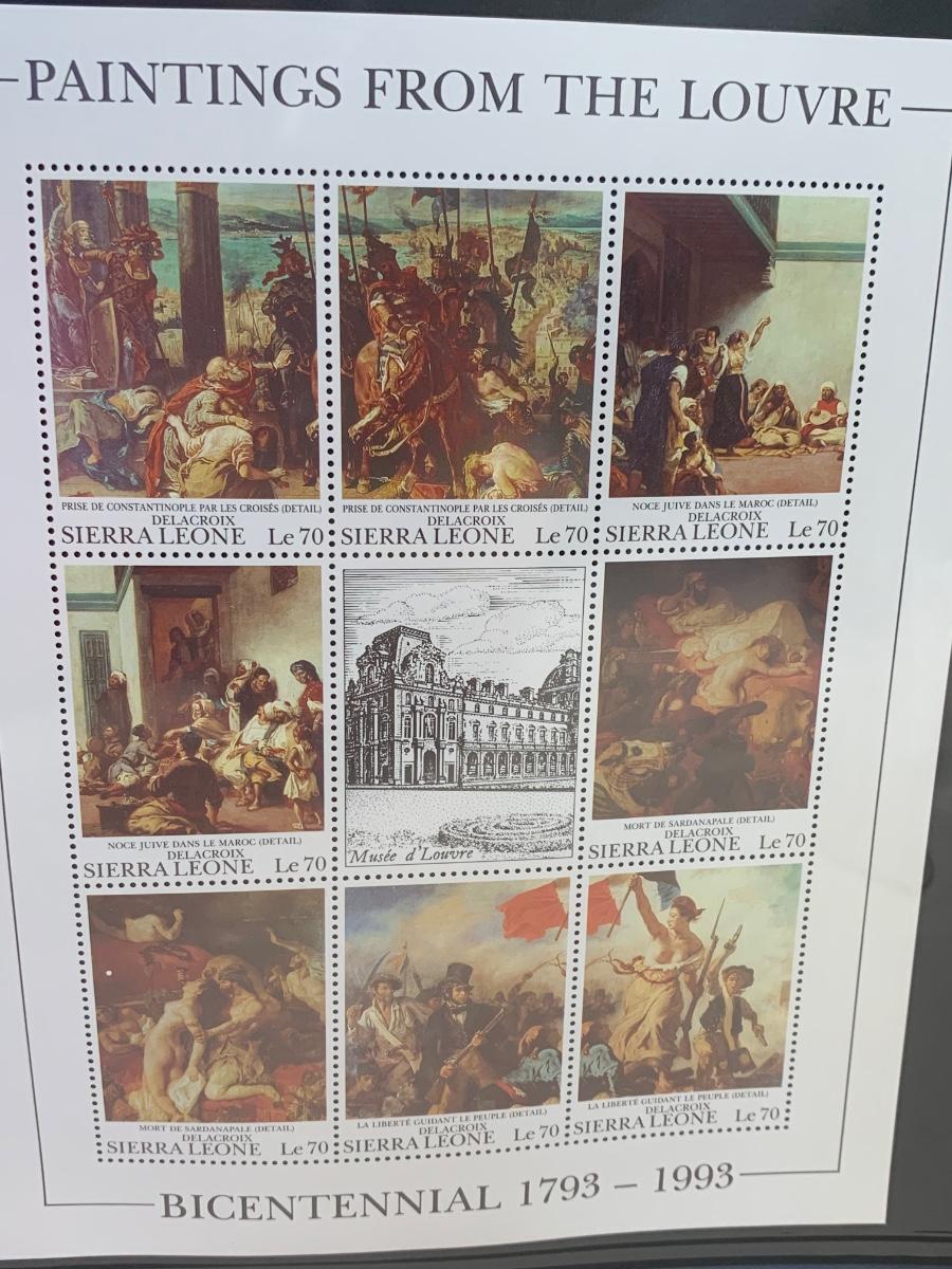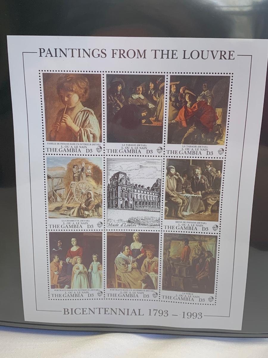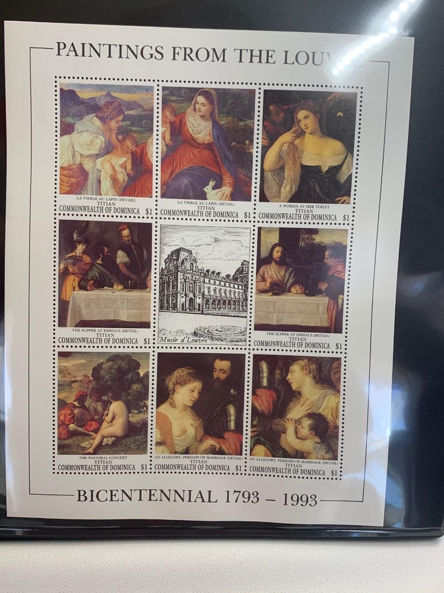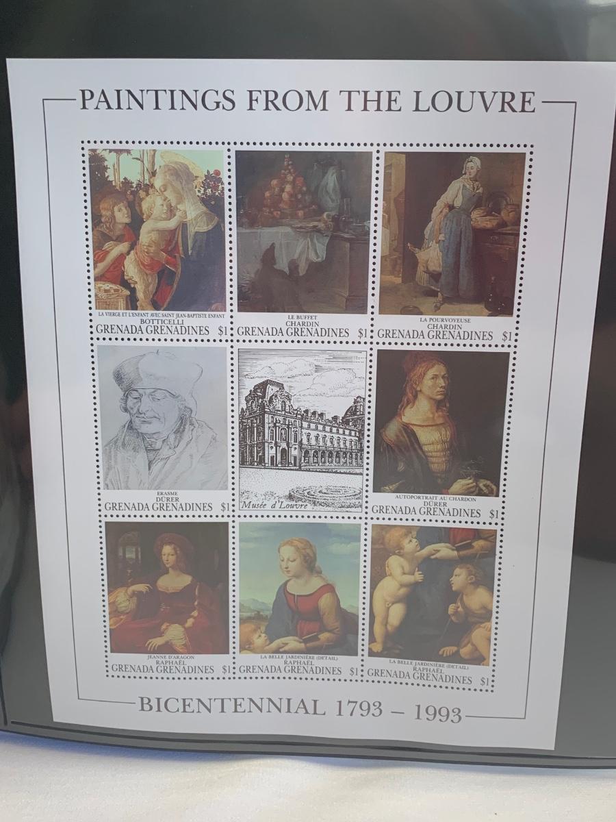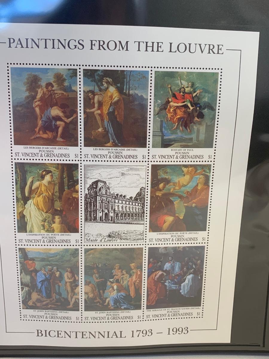 Beautiful collection of stamps honoring the Louvre Museum's Bicentenary in a binder. This collection include hinged and unhinged stamps.