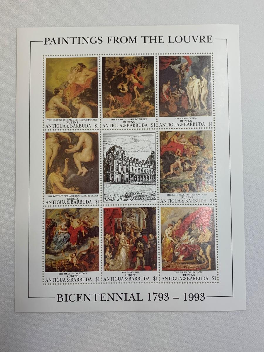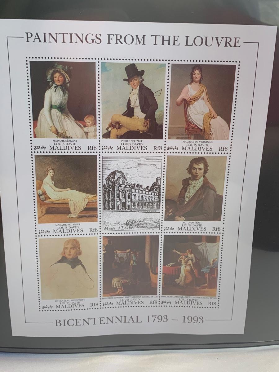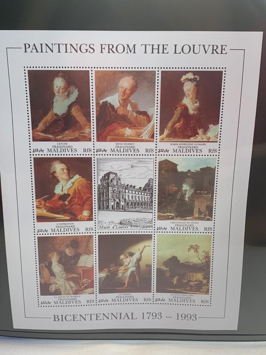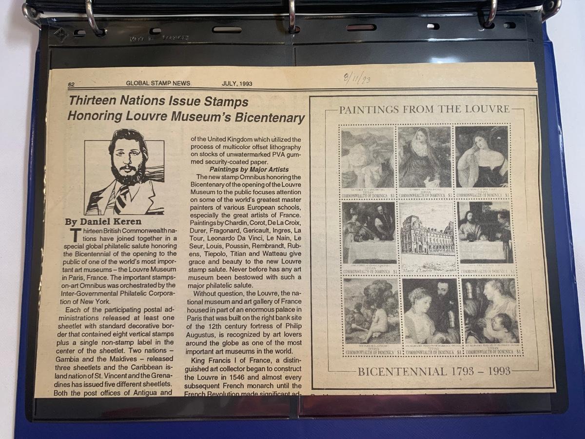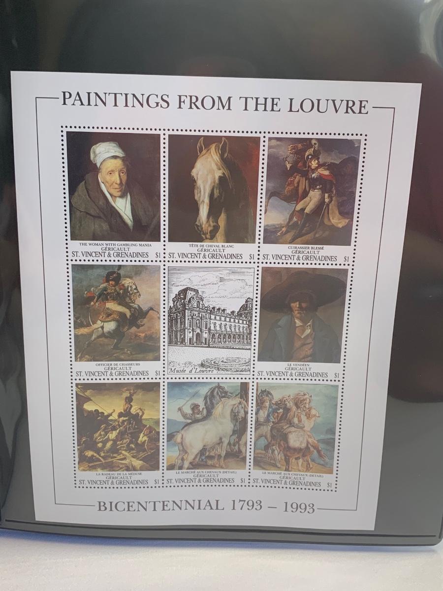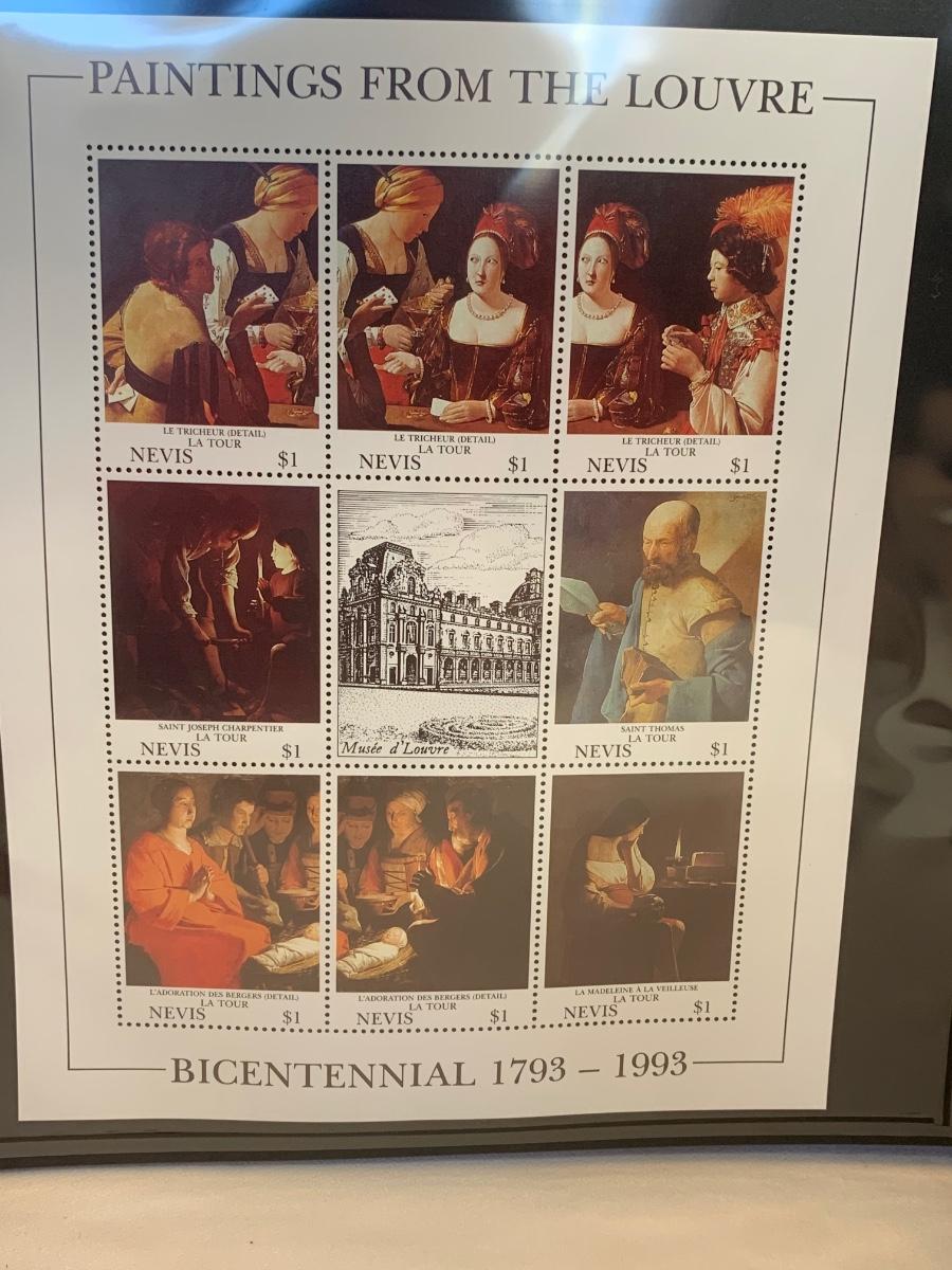 Beautiful collection of stamps honoring the Louvre Museum's Bicentenary in a binder. This collection include hinged and unhinged stamps.