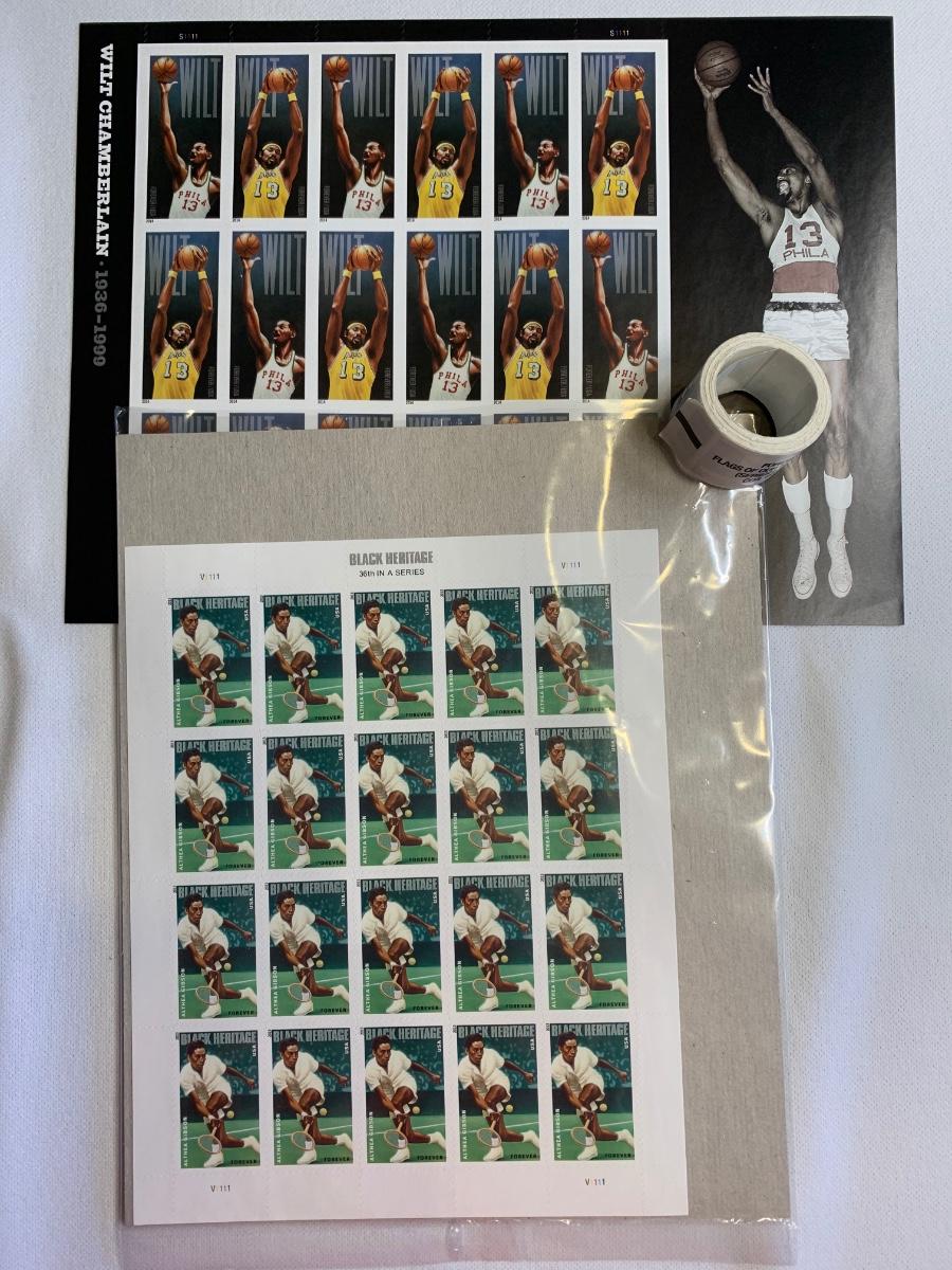 Lot S23R: Wilt Chamberlain, Black Heritage/ Tennis &  Flag Forever Stamp