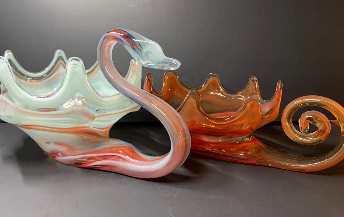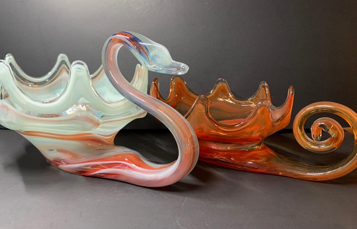 Lot 227R: Vintage Art Glass Swan & Cornucopia