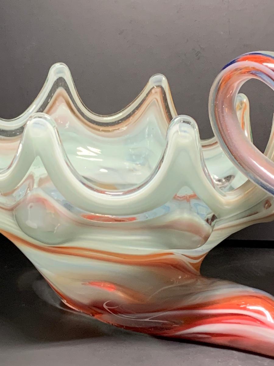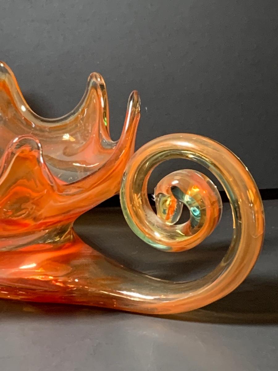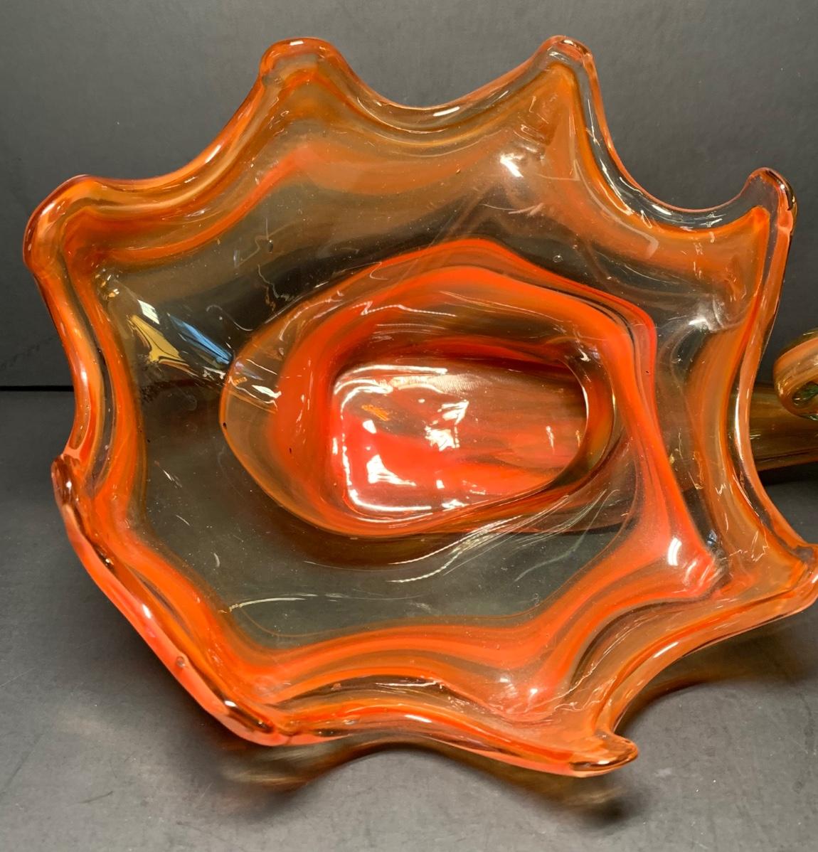Collection of 2 beautiful pieces of art glass. A vintage art glass swan in white & orange along with a cornucopia shaped art glass in clear and orange. Please see all pictures as they are the best representation of the items. The pictures show condition, measurements if taken, and what is included in the lot. Due to the large amount that we photograph and the time frame, we are not always able to take measurements. All items unless noted, are pre-owned and have been used. If you purchased furniture, you must bring help. We do not allow one person to carry large furniture out on their own. Bring help, tools and a truck for the safety of our client’s homes, and your personal safety. Any damages that result to the property including walls, and floors due to moving of the furniture will be charged to the buyer. Company policy. Thank you.